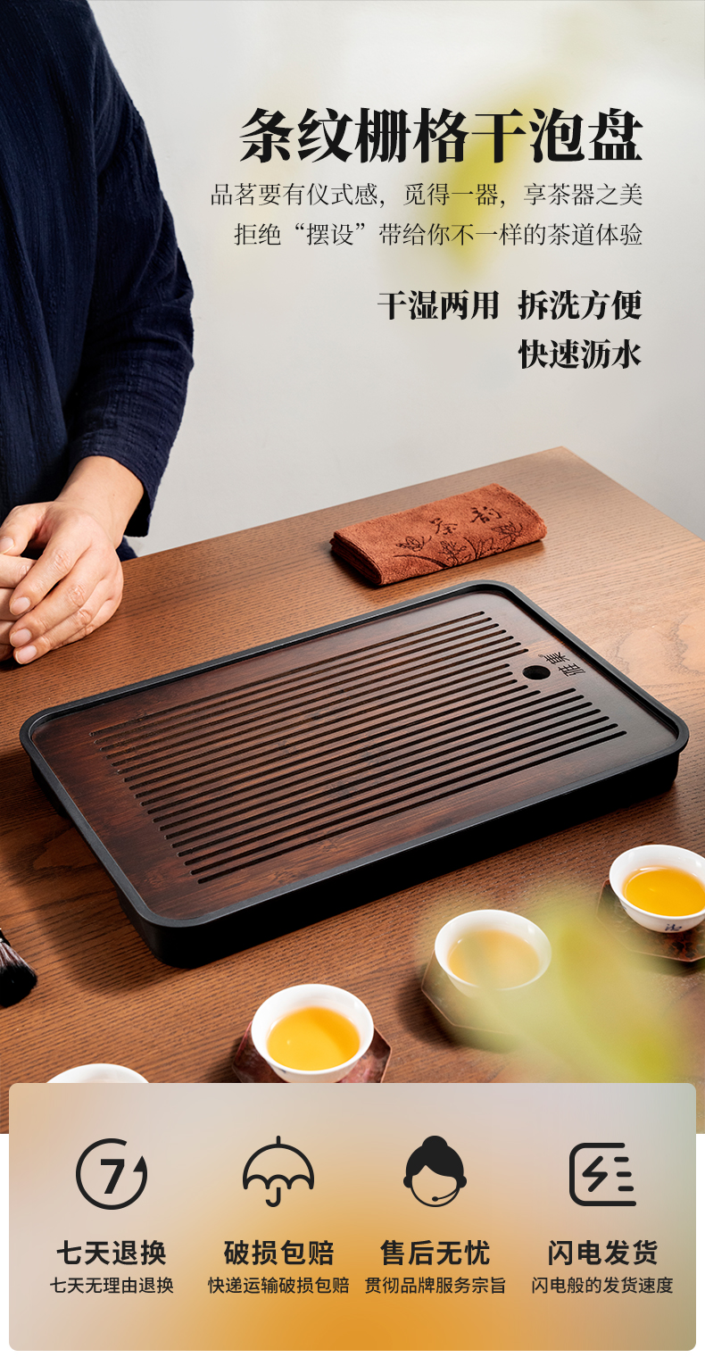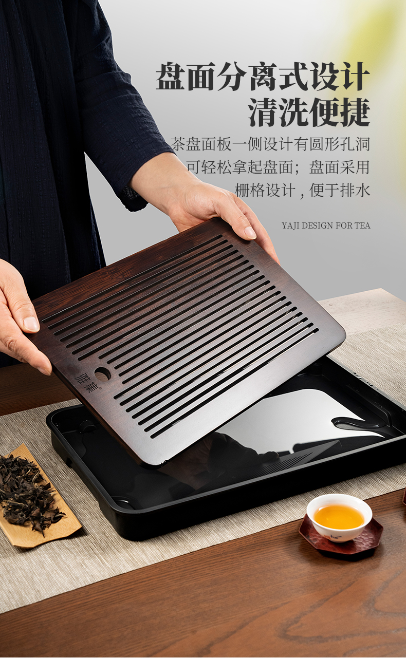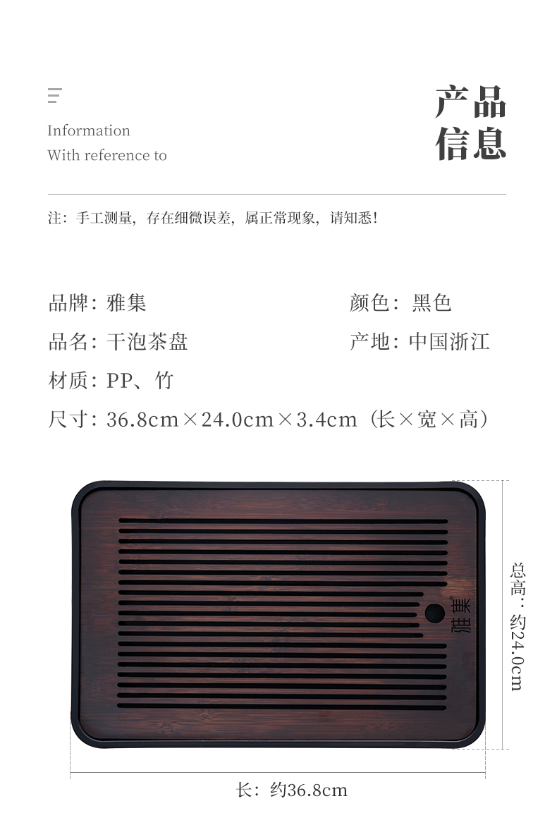雅集PP干泡茶盘24*36cm(长方-黑色)