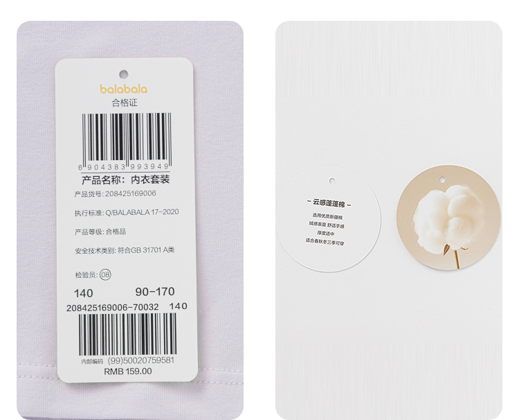 巴拉巴拉balaOne女童内衣套装儿童2件套新款童装2025秋冬舒适柔软