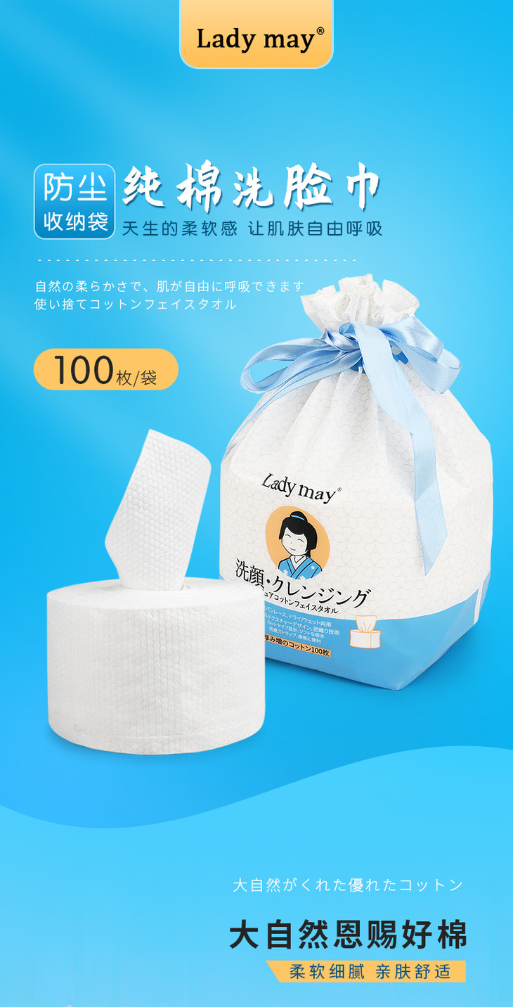 【Ladymay抽取式&卷筒式洗脸巾】纯棉加厚洗脸巾 4卷组合 100抽/卷 无荧光剂无刺激 0118返团
