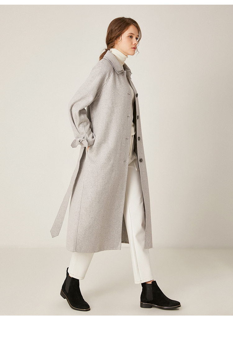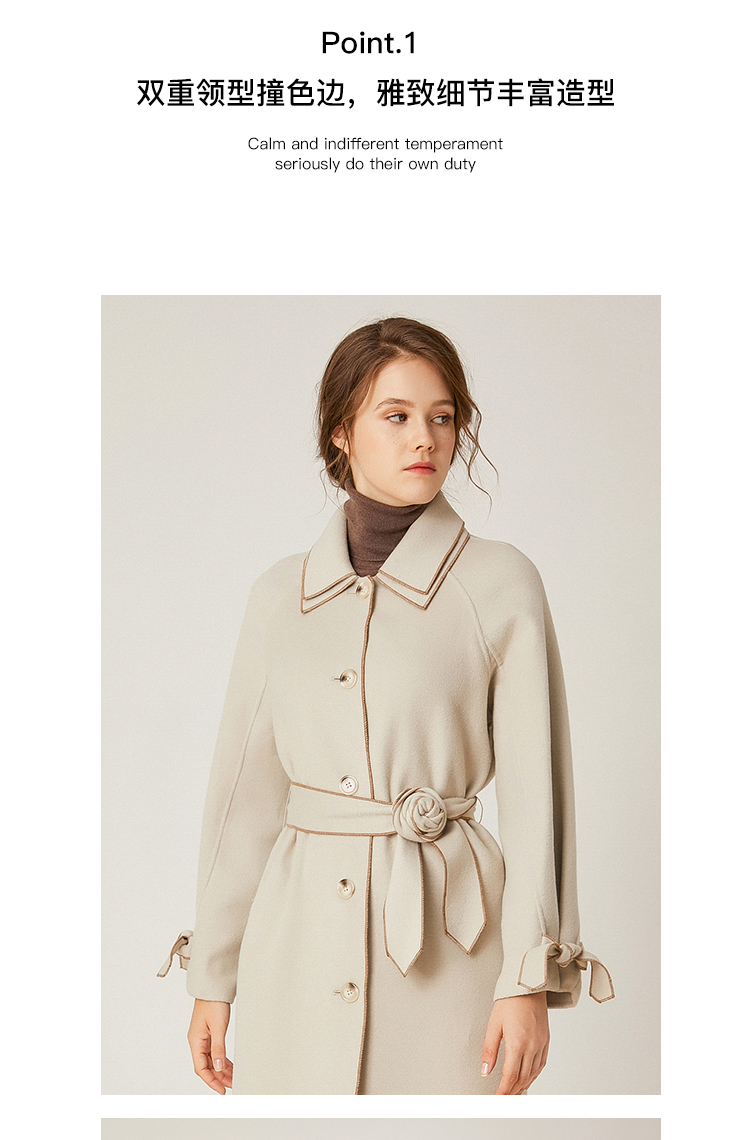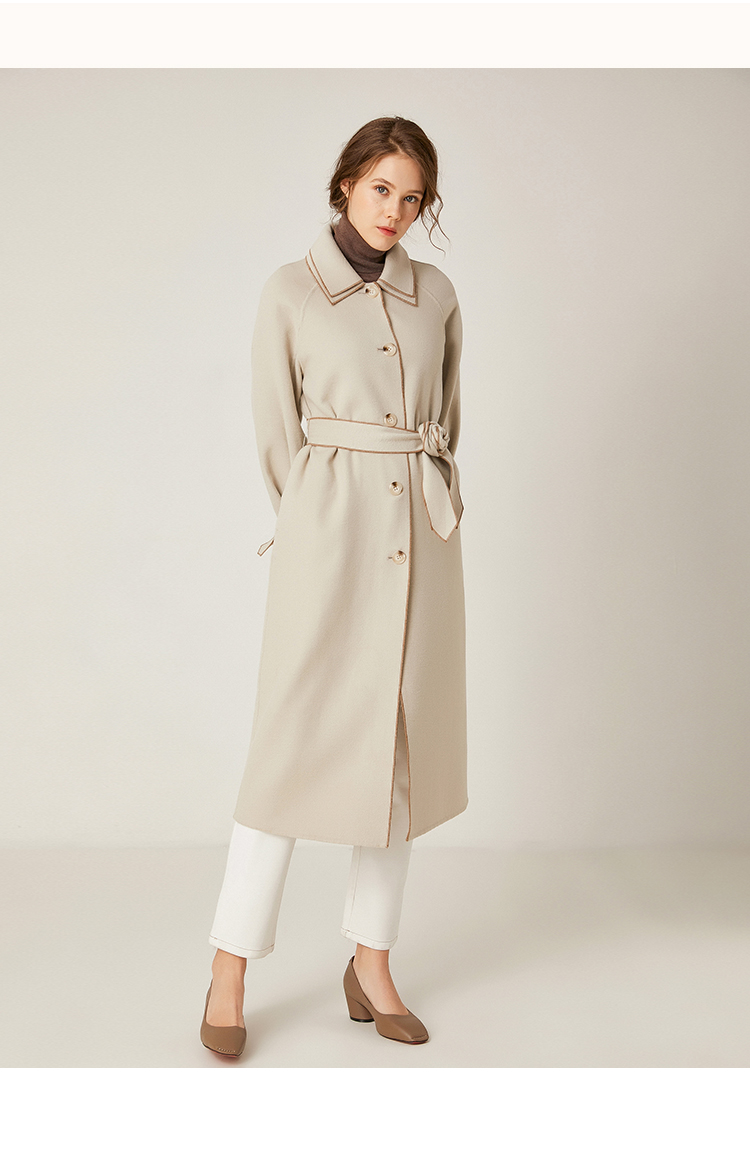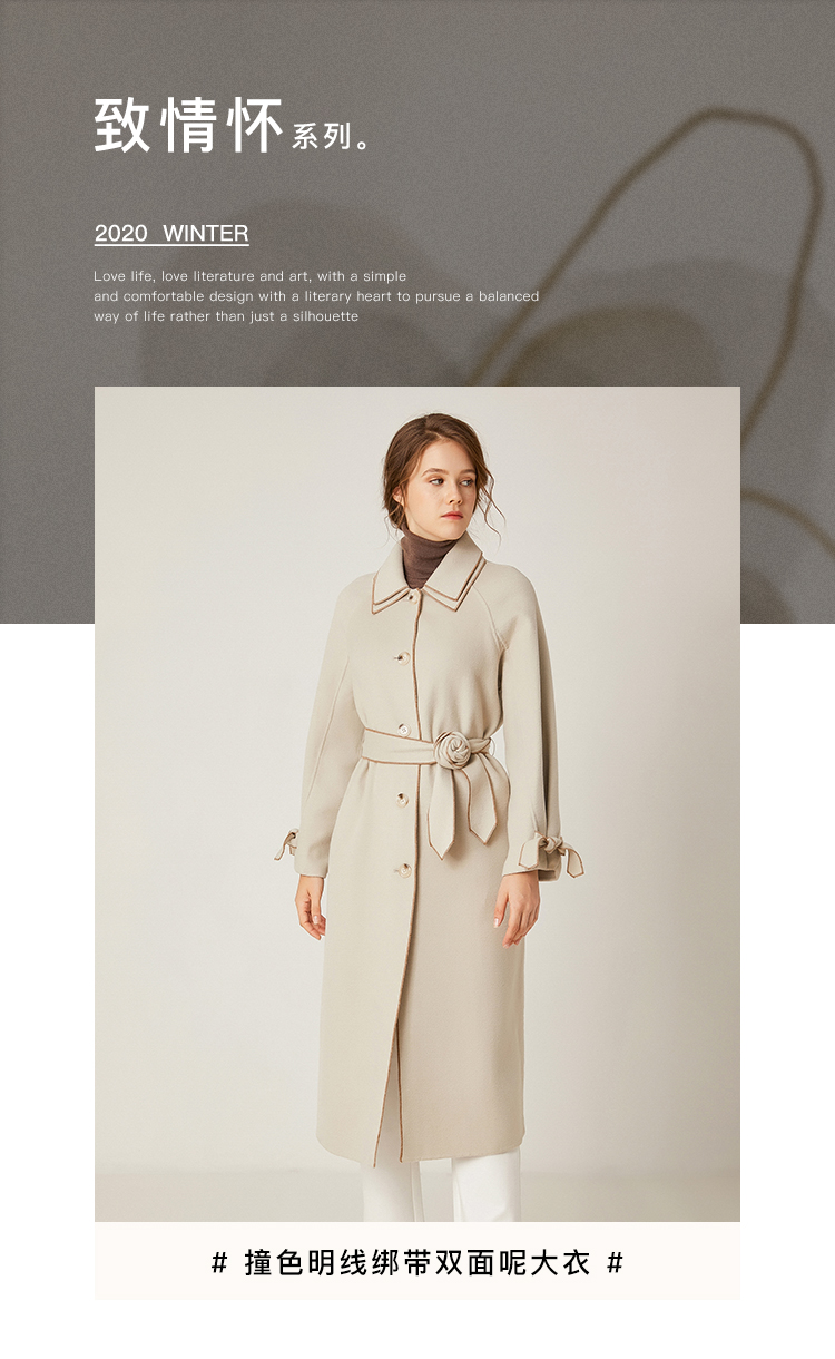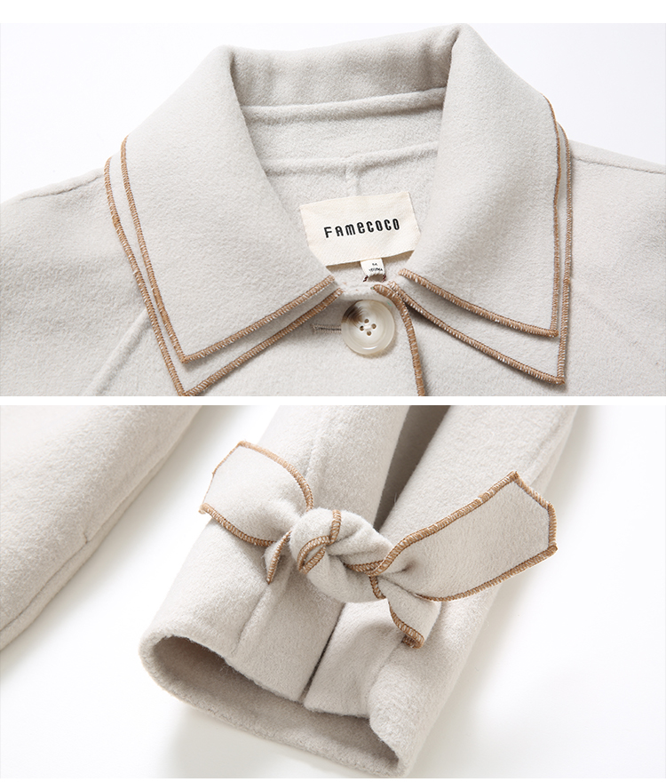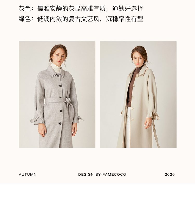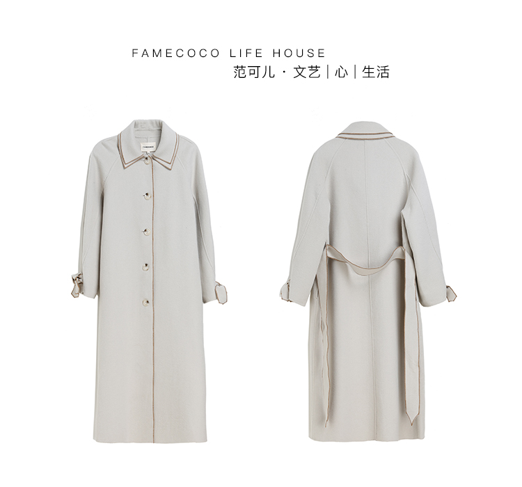 Famecoco范可儿绵羊毛呢中长款毛呢大衣收腰外套F198AC016