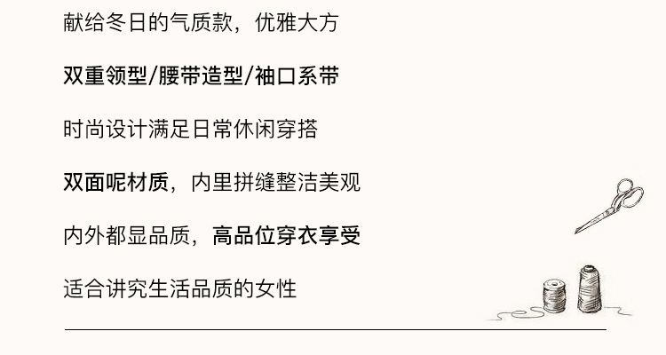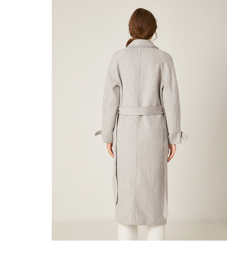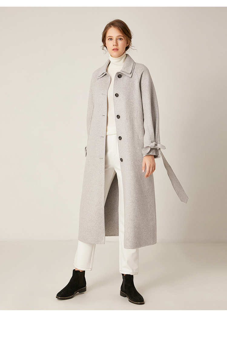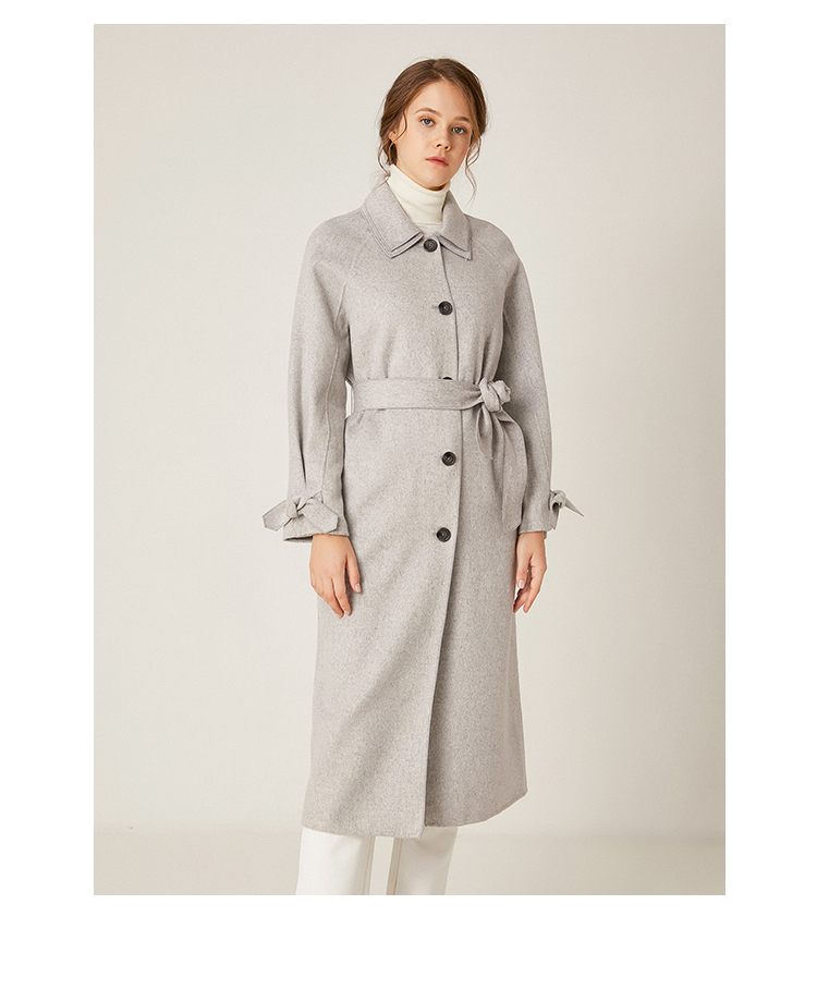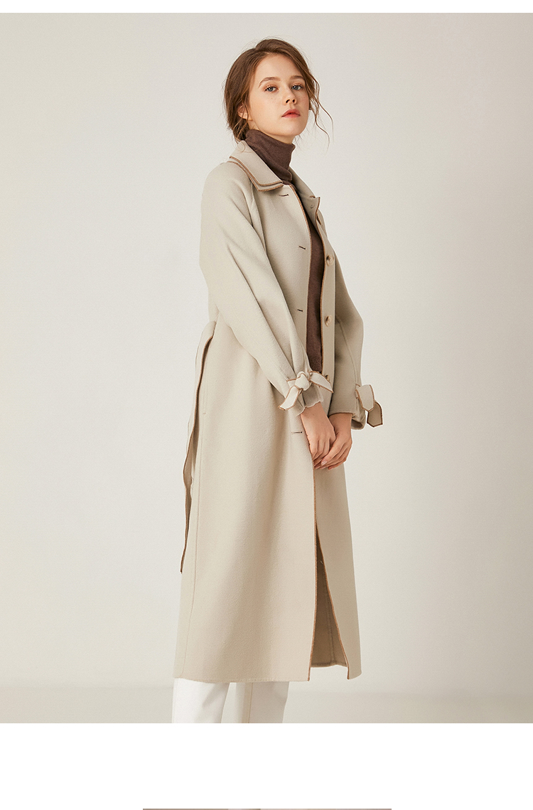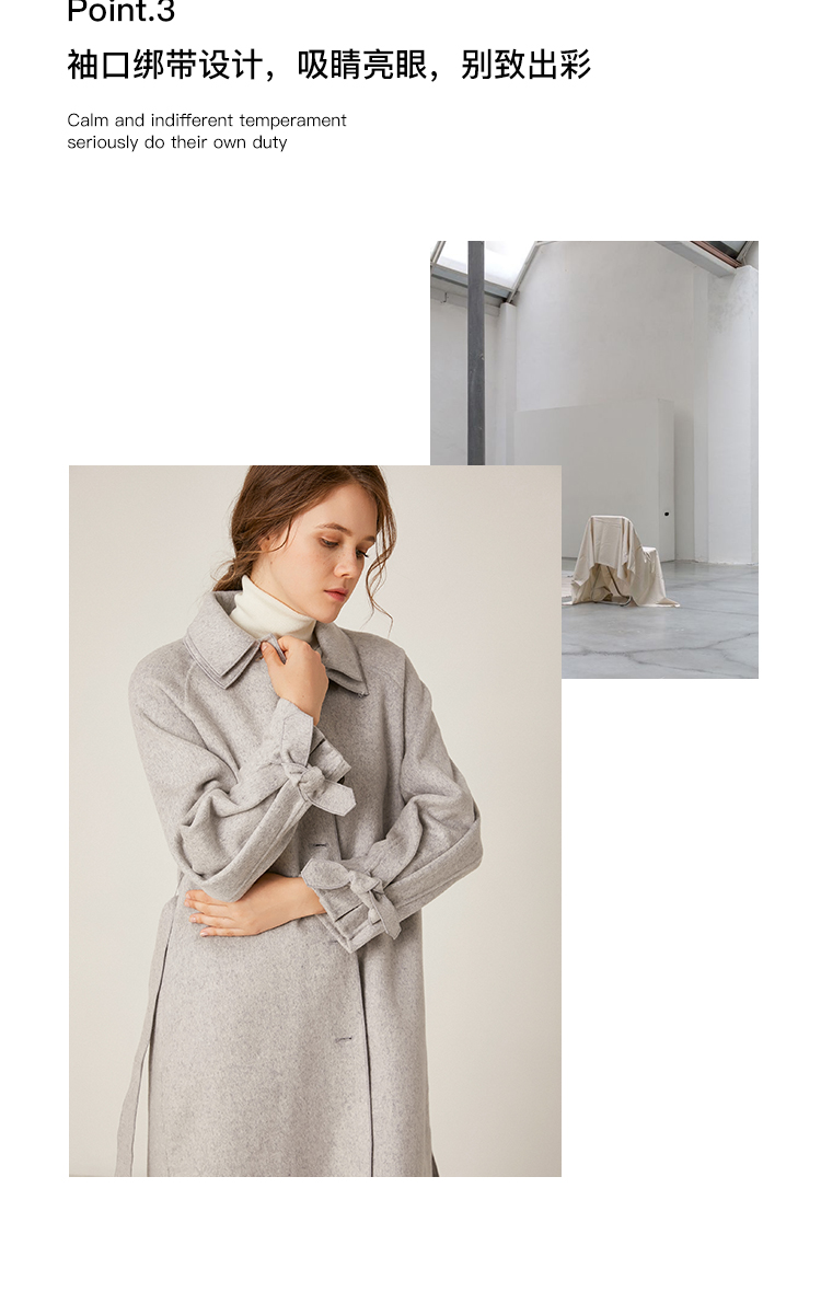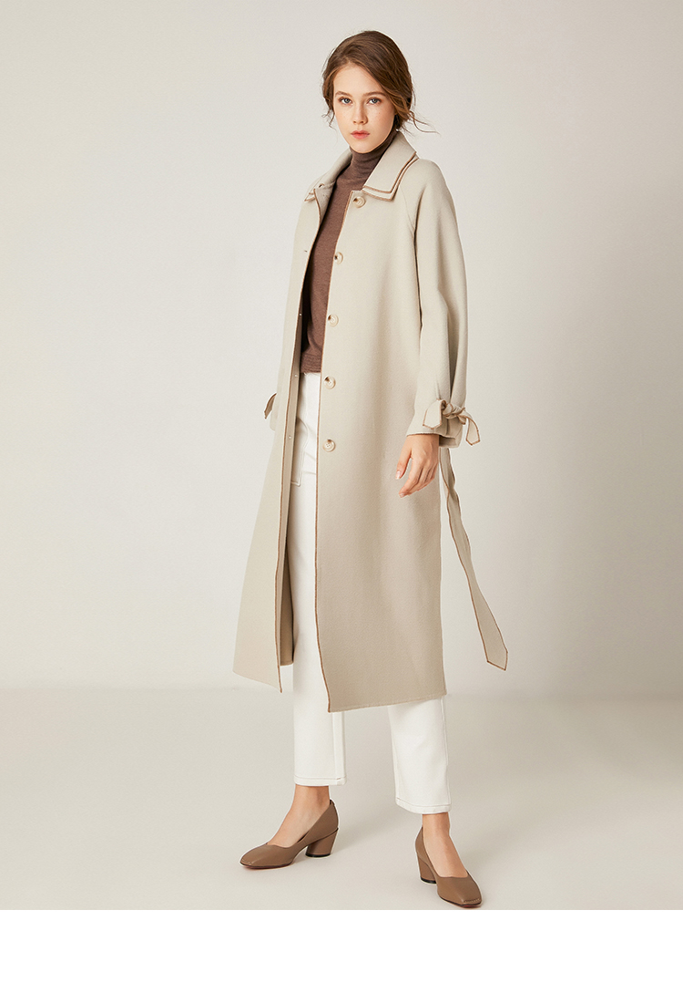 Famecoco范可儿绵羊毛呢中长款毛呢大衣收腰外套F198AC016