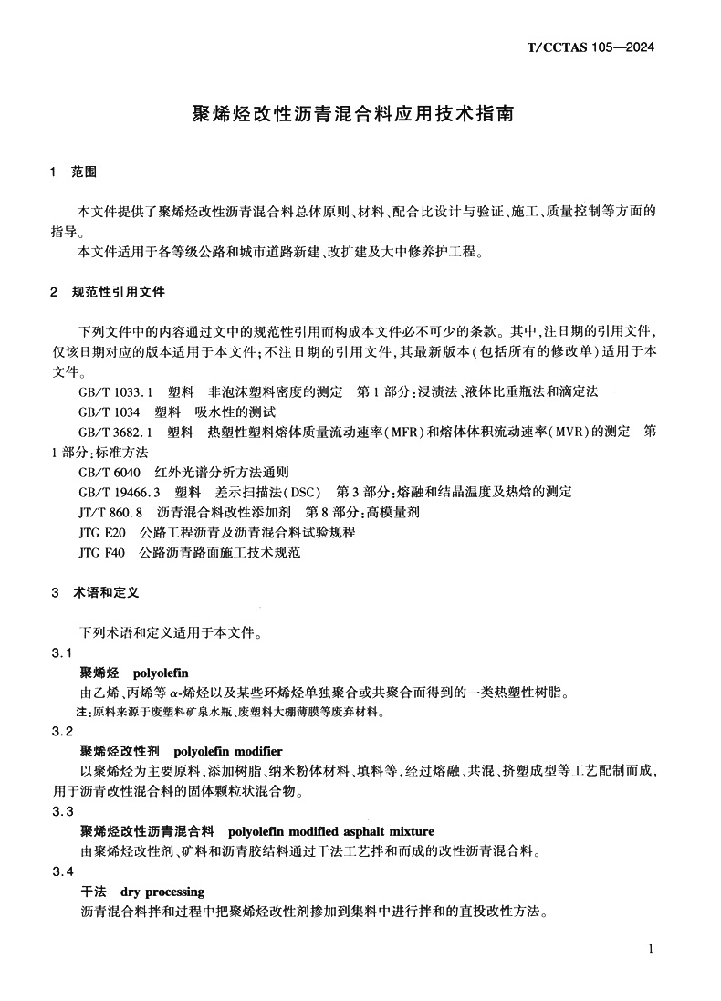 书名:聚烯烃改性沥青混合料应用技术指南T/CCTAS 105—2024