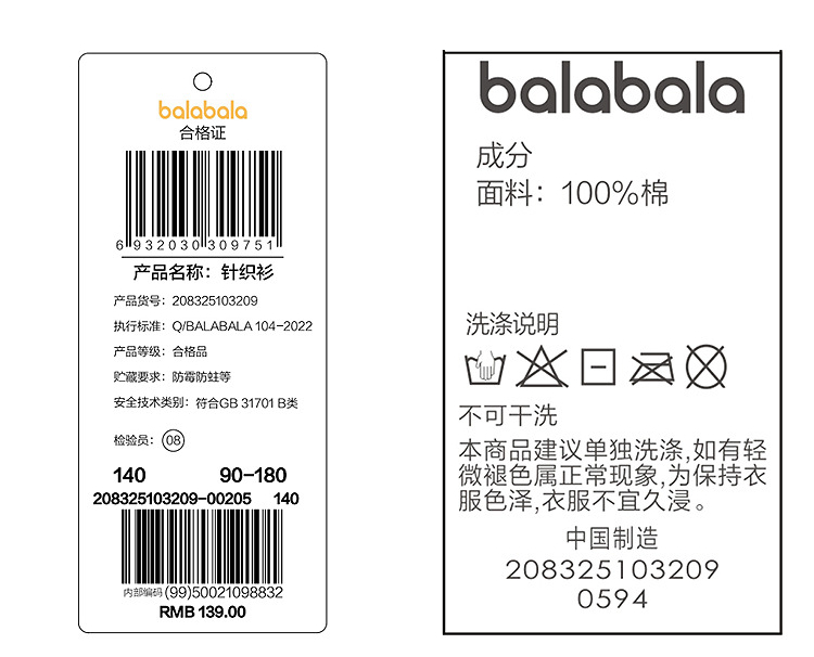 巴拉巴拉balaOne童装儿童毛衣男女童2025新款春秋打底衫毛衫亲子