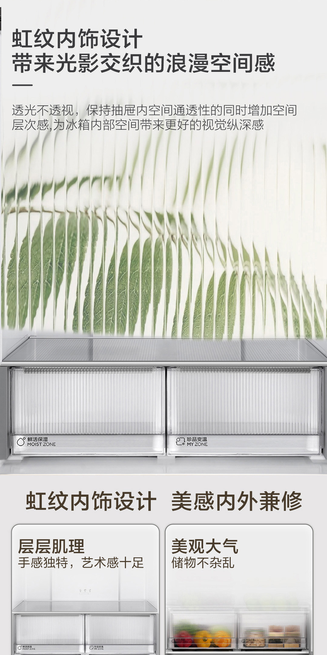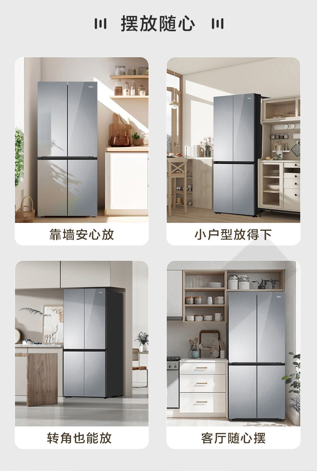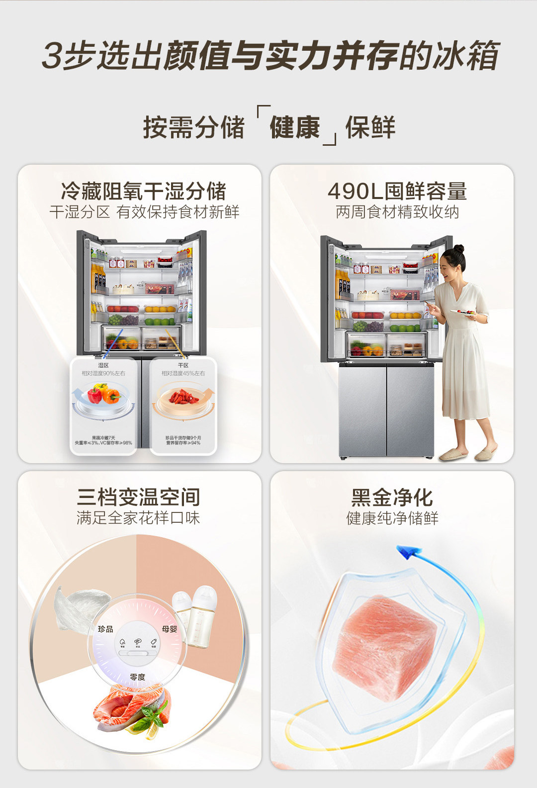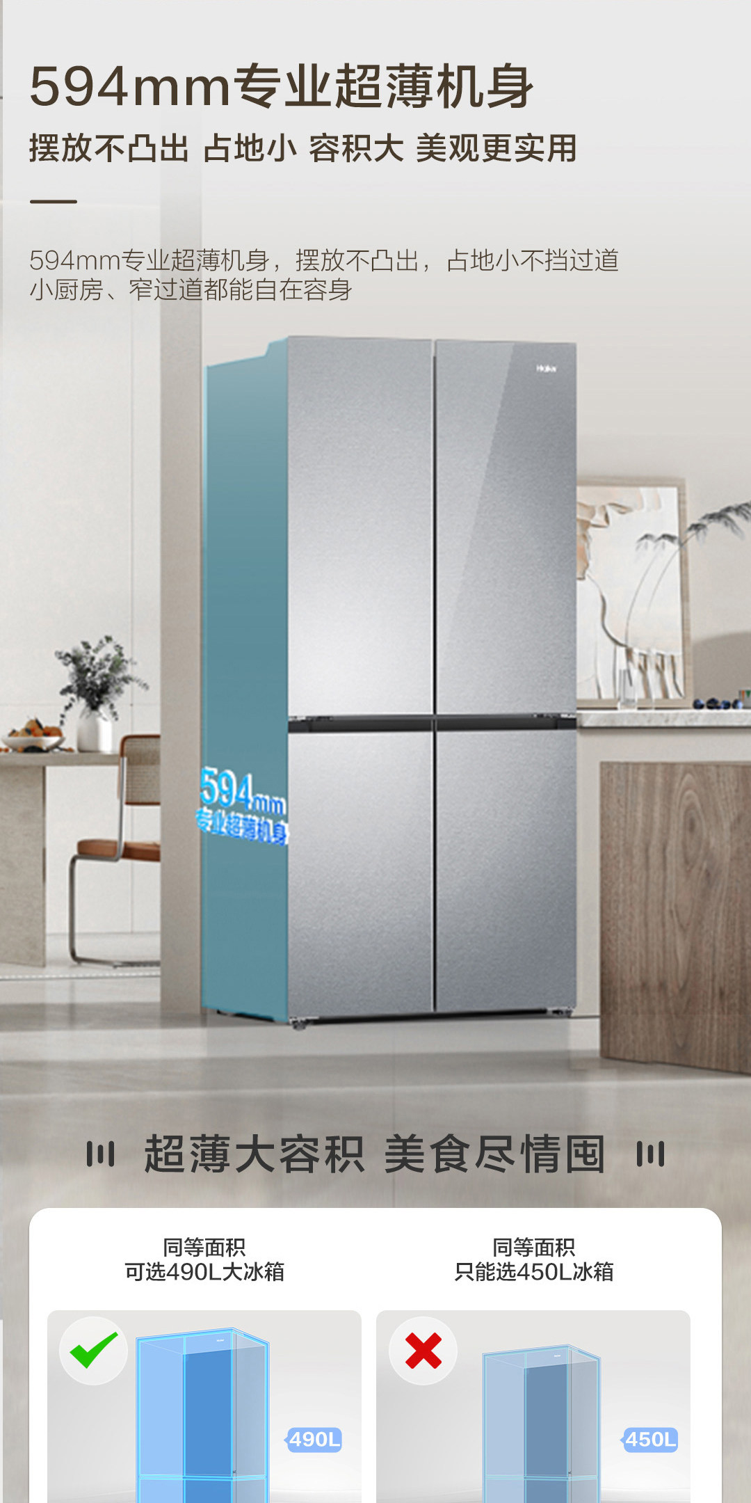 海尔小红花490升超薄钢化玻璃面板一级双变频风冷大容量家用冰箱 BCD-490WGHTDE5GDU1十字门 丝缎灰·云影纱
