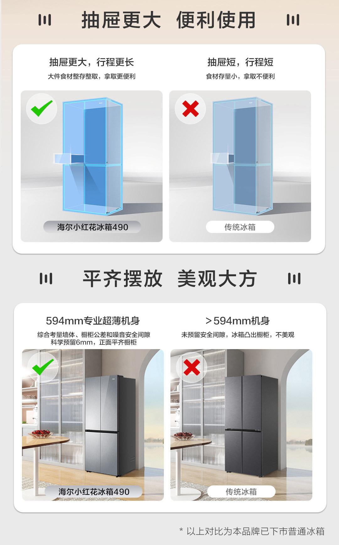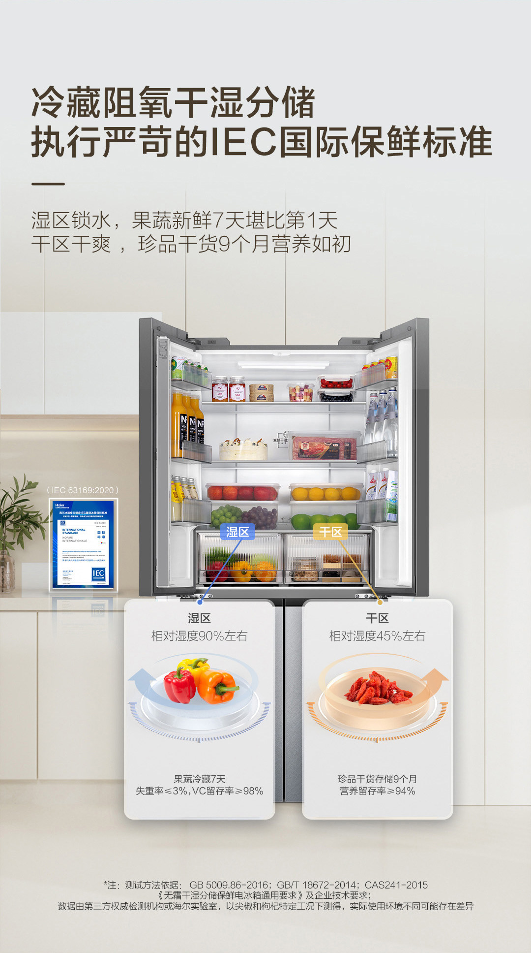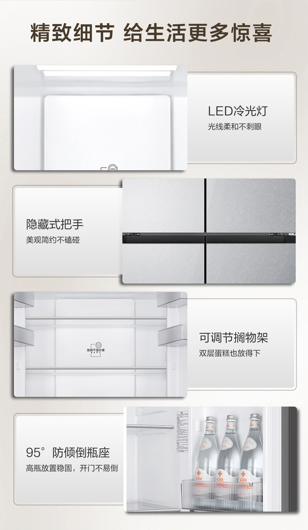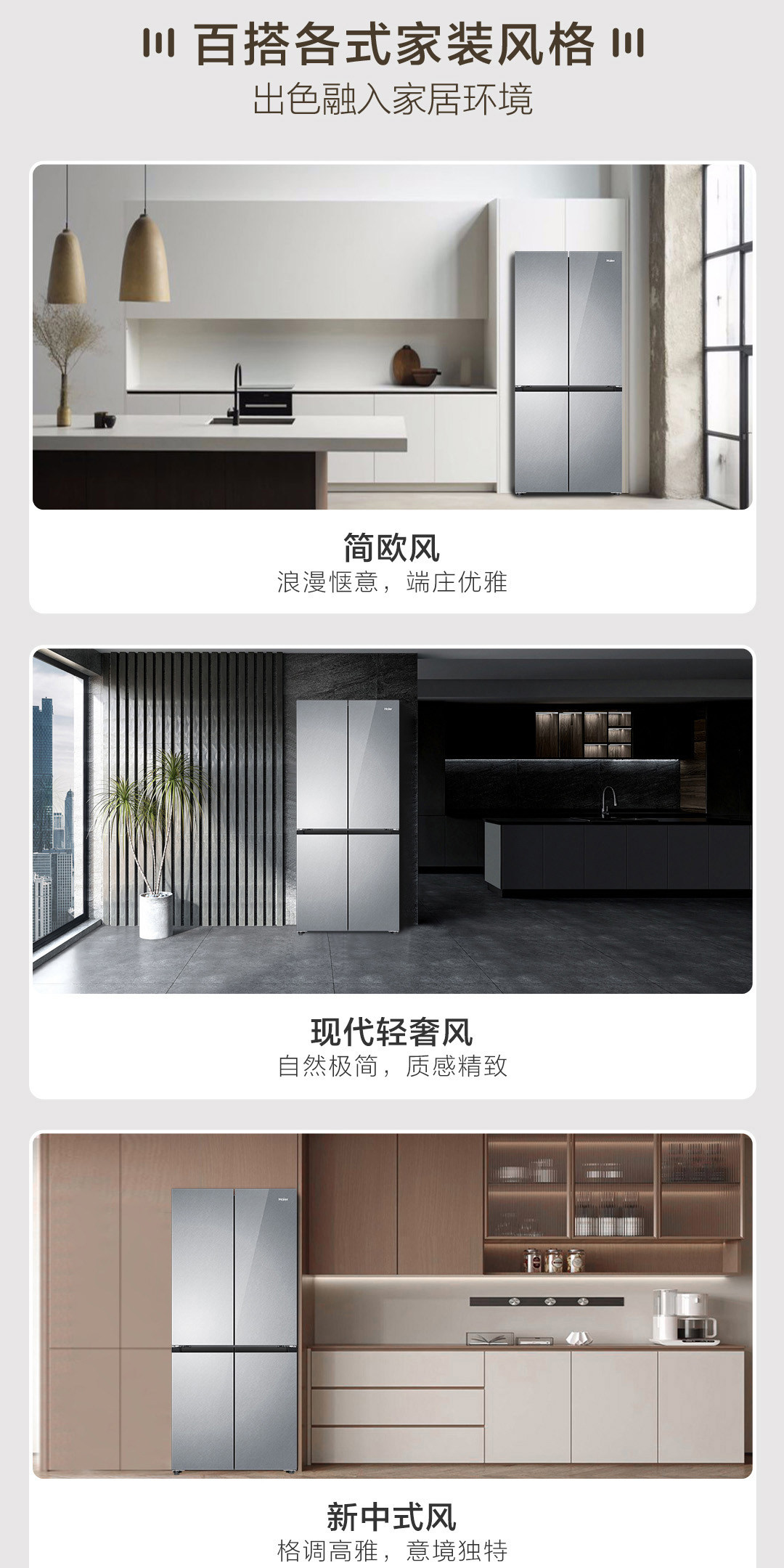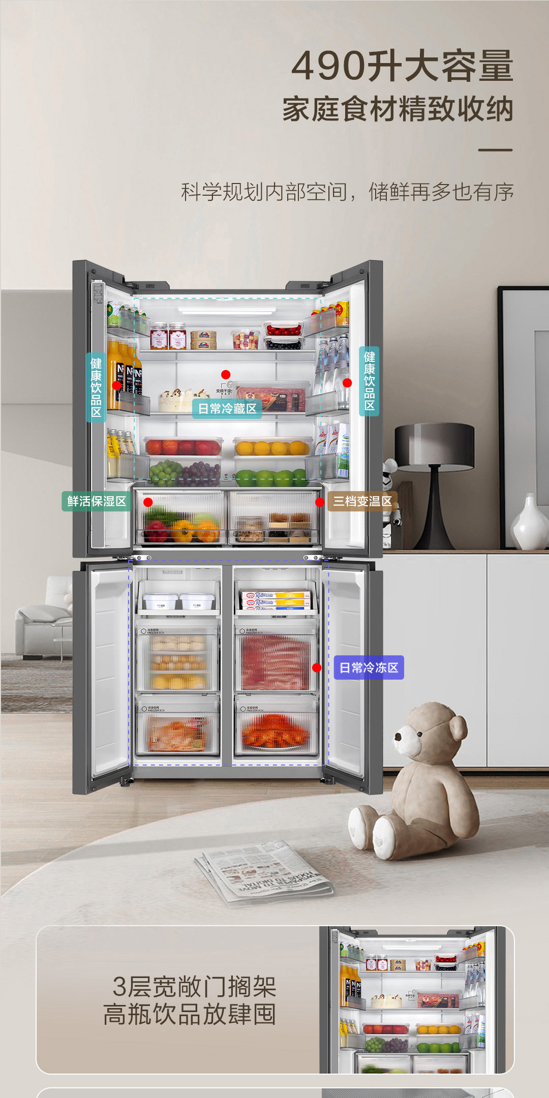 海尔小红花490升超薄钢化玻璃面板一级双变频风冷大容量家用冰箱 BCD-490WGHTDE5GDU1十字门 丝缎灰·云影纱