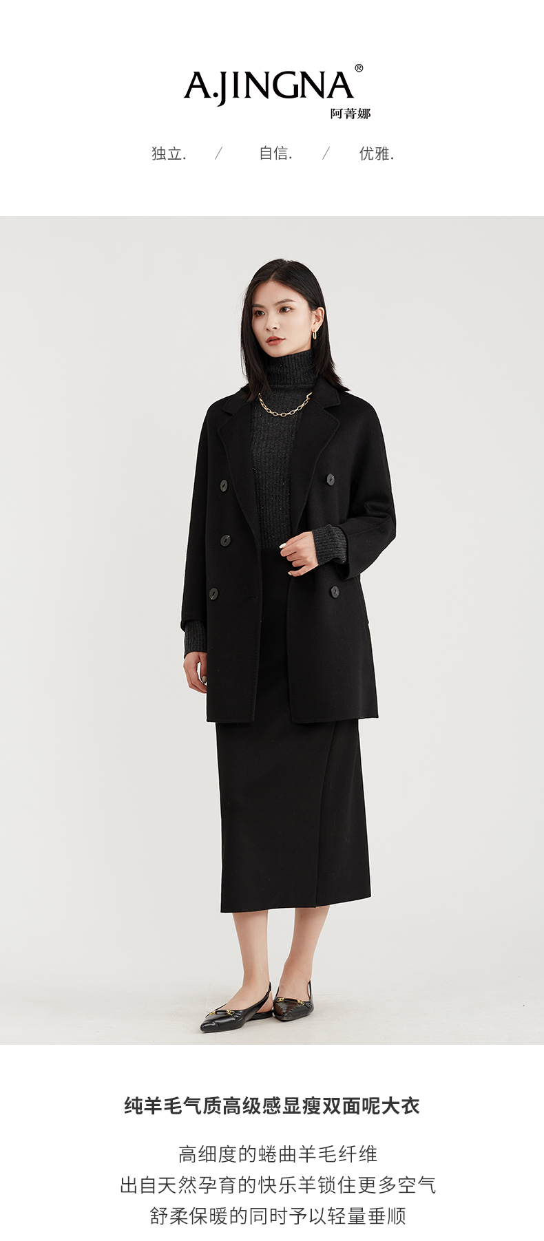 【淘衣节专享】阿菁娜纯羊毛气质高级感显瘦双面呢大衣F30D211015
