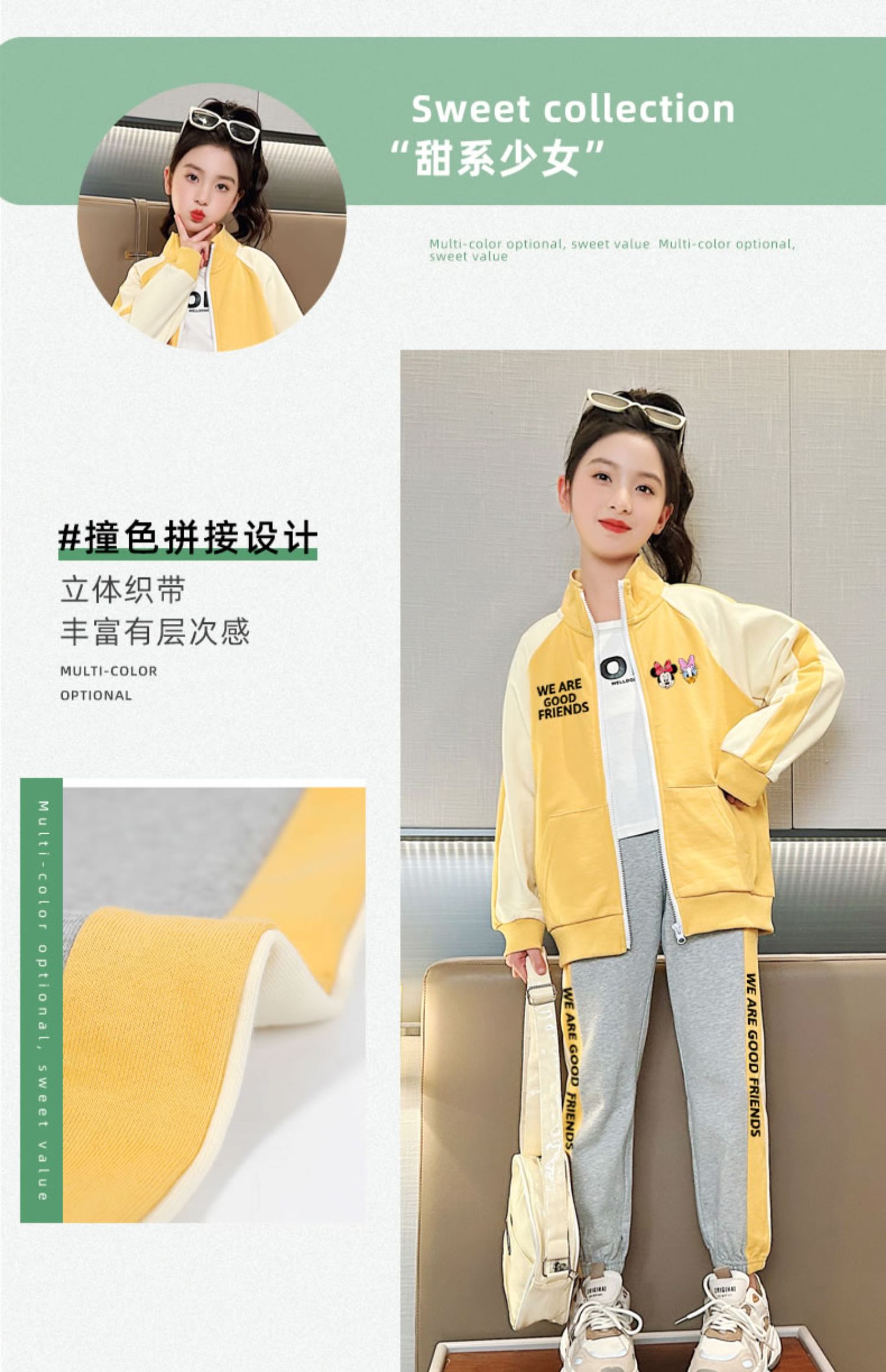 贝田春装女童套装2025新款女孩春秋儿童运动大童女装洋气时髦童装