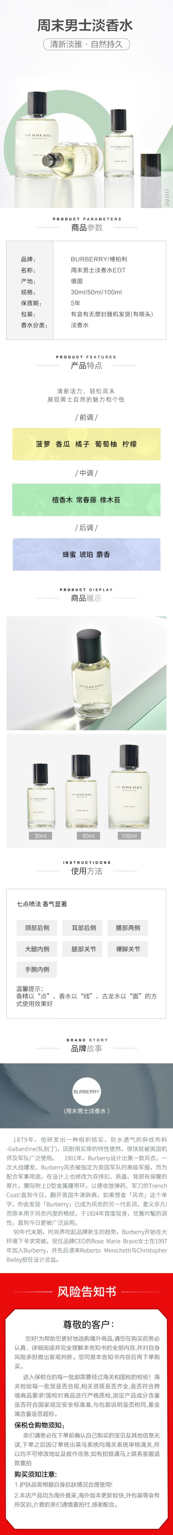 【中欧班列精选】德国 BURBERRY/博柏利进口周末男士淡香水 30/50/100ml1LPY
