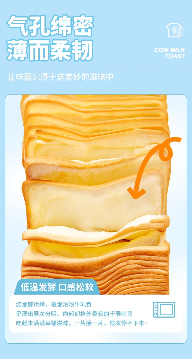 【奶香味十足!牛乳千层吐司】松软绵密,细腻而醇香,外酥内软,早餐、夜宵、小吃,自由选择。手撕面包整箱早餐蛋糕点小零食充饥夜宵小吃休闲食品放心吃进口中老年健康