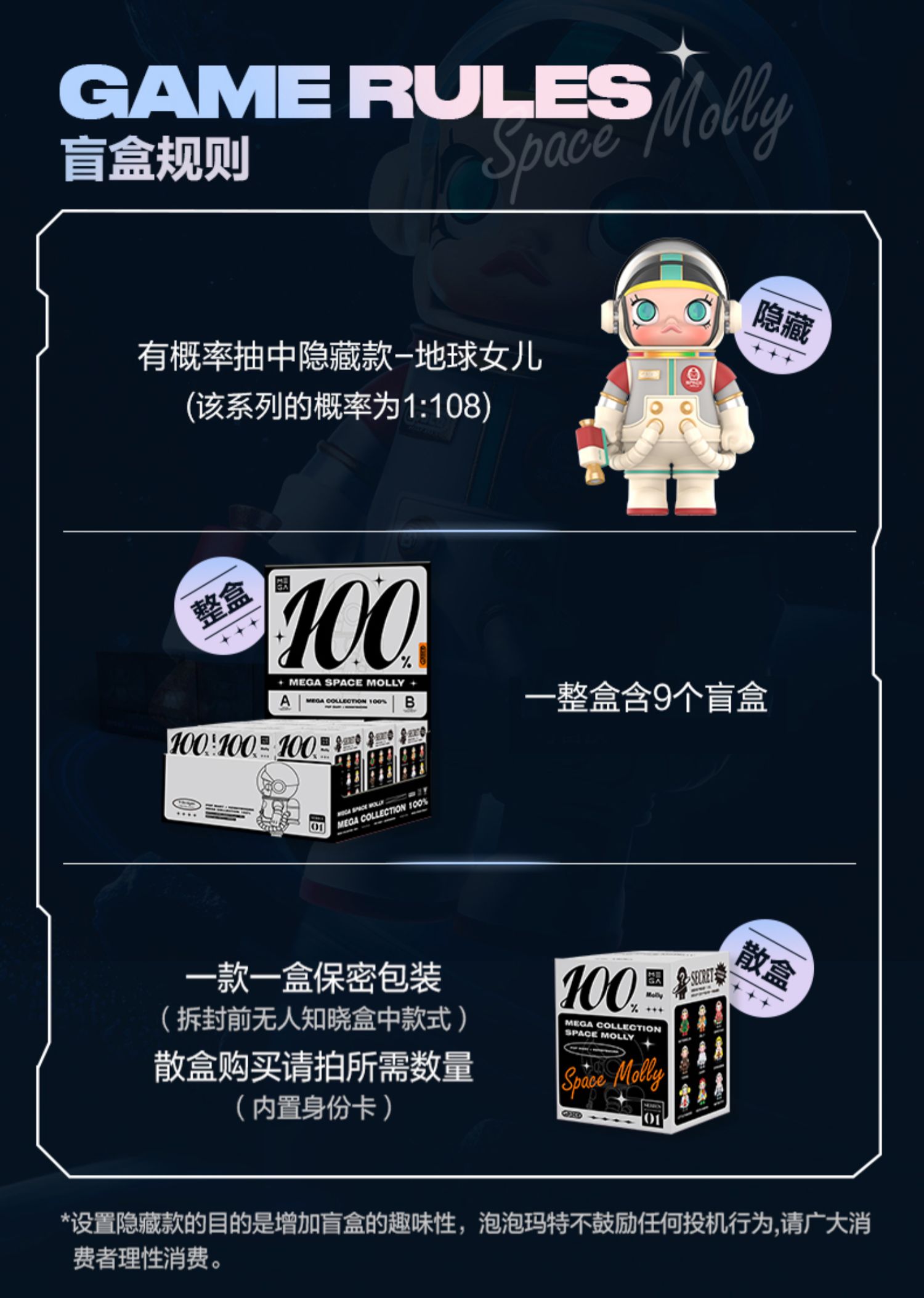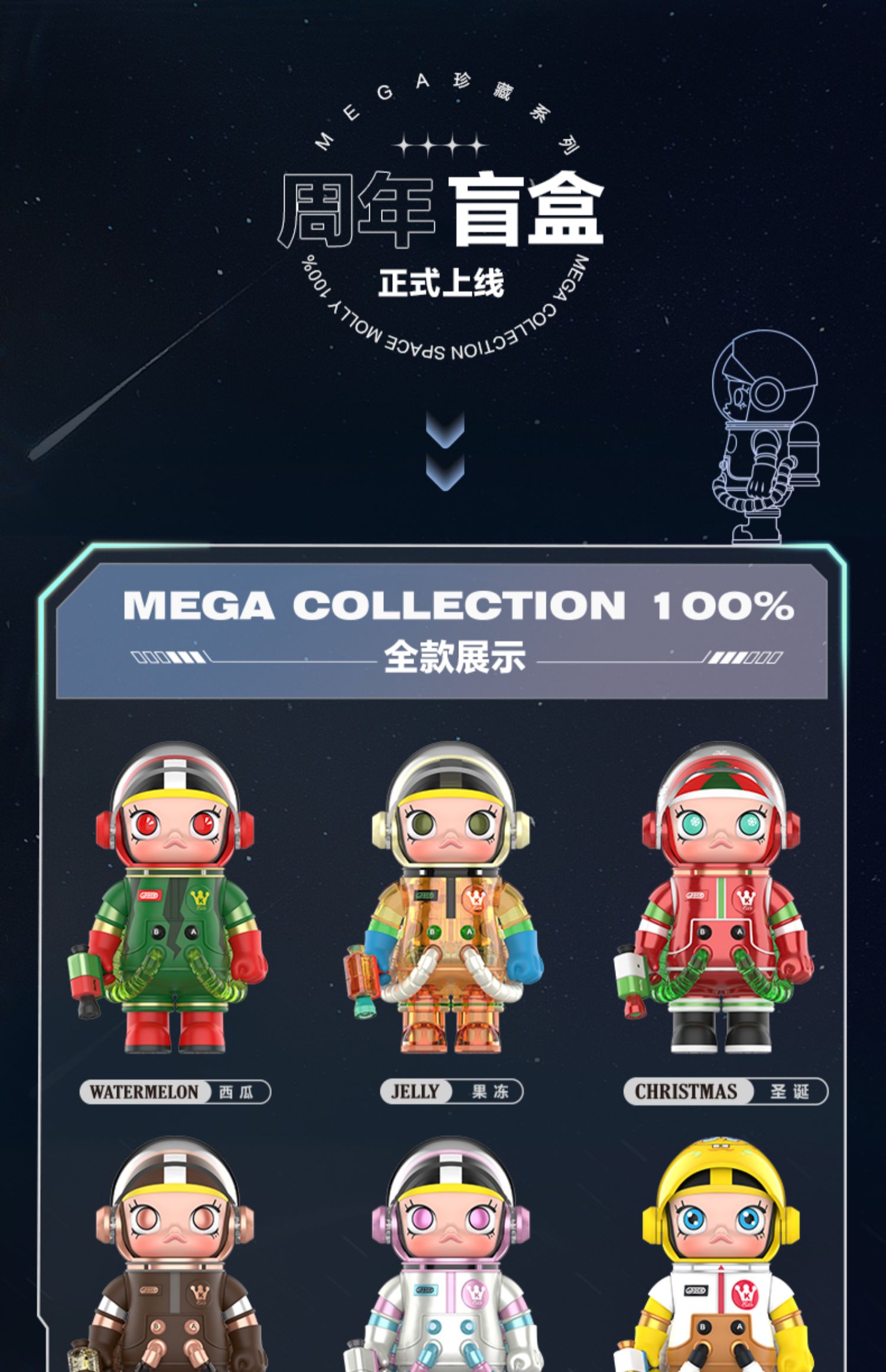 POPMART MEGA珍藏系列 100% SPACE MOLLY 盲盒 第一季