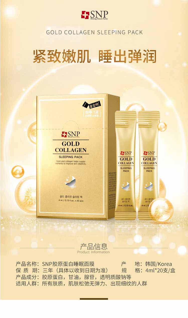 【中文标】韩国SNP黄金胶原蛋白睡眠面膜4ml*20支装