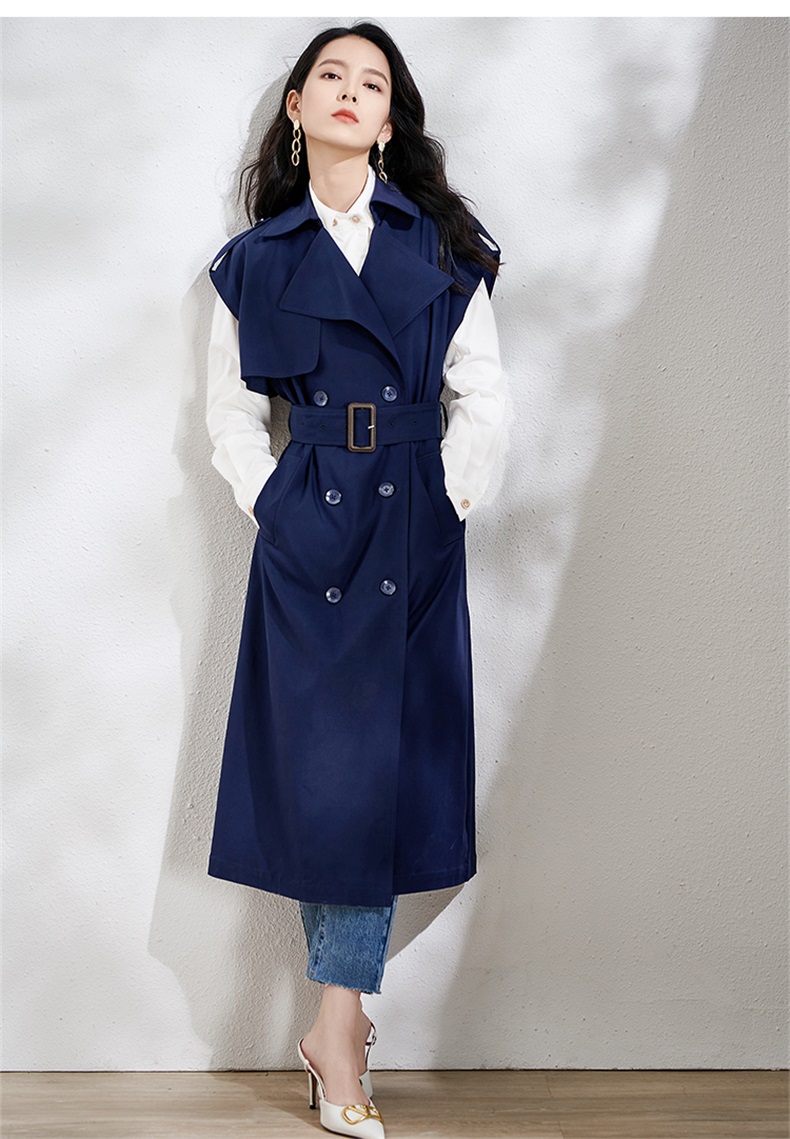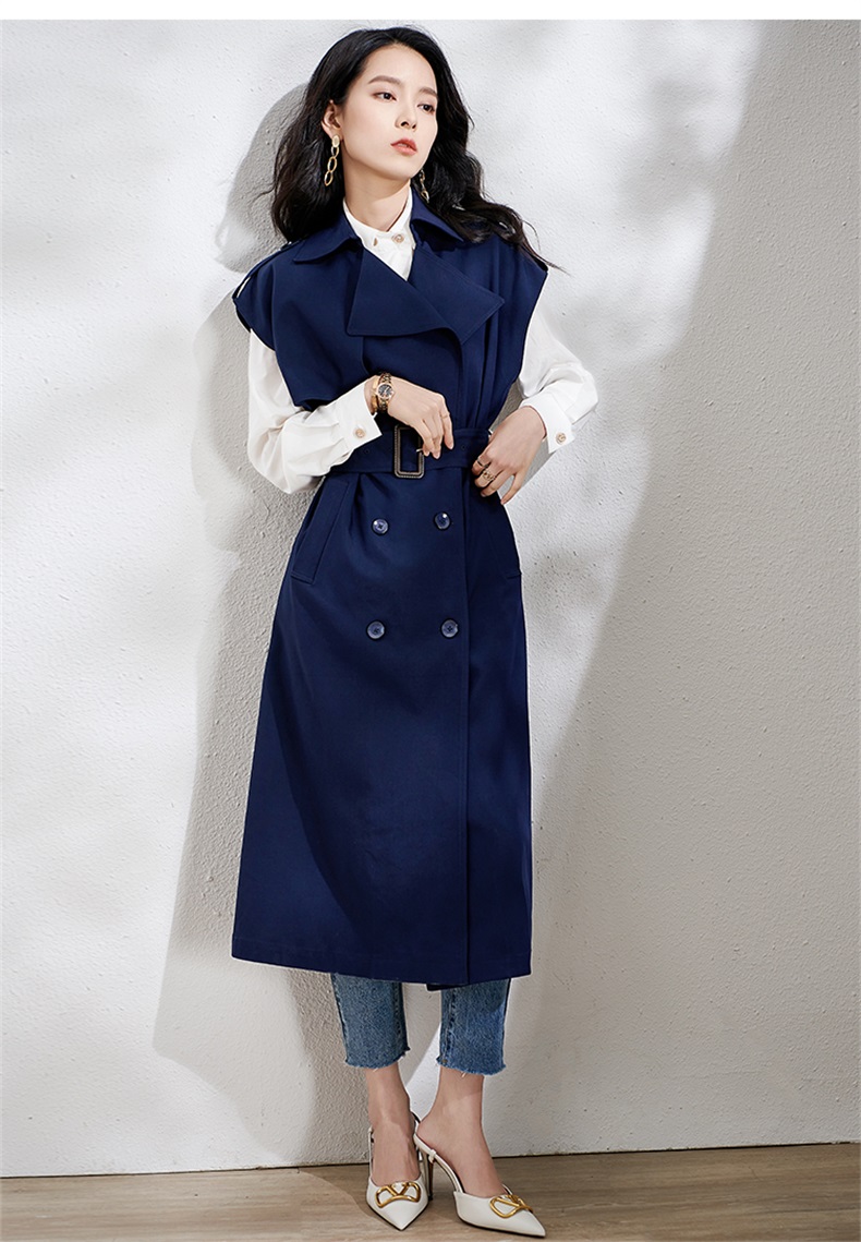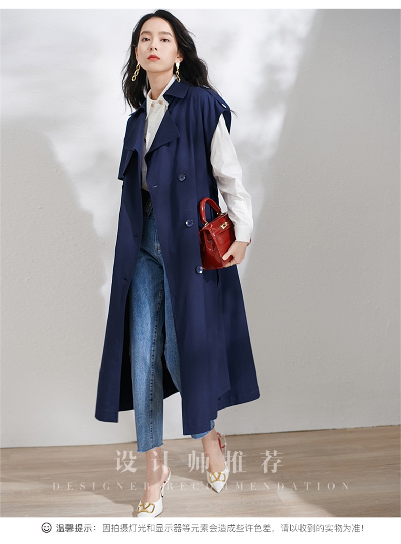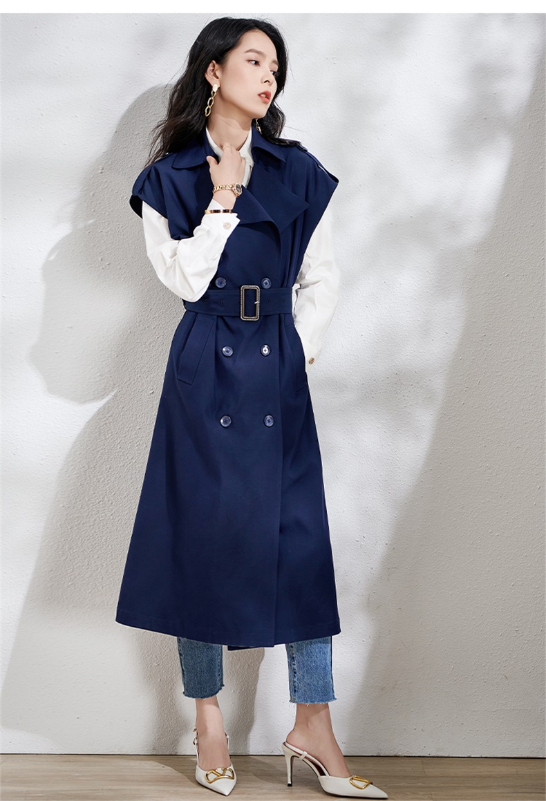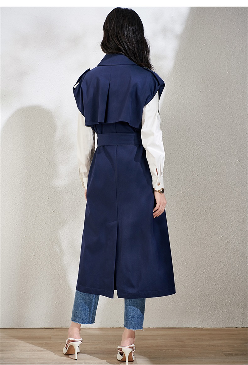 芳外春季新款时尚飒气无袖长款风衣女系带收腰街头风外套1466