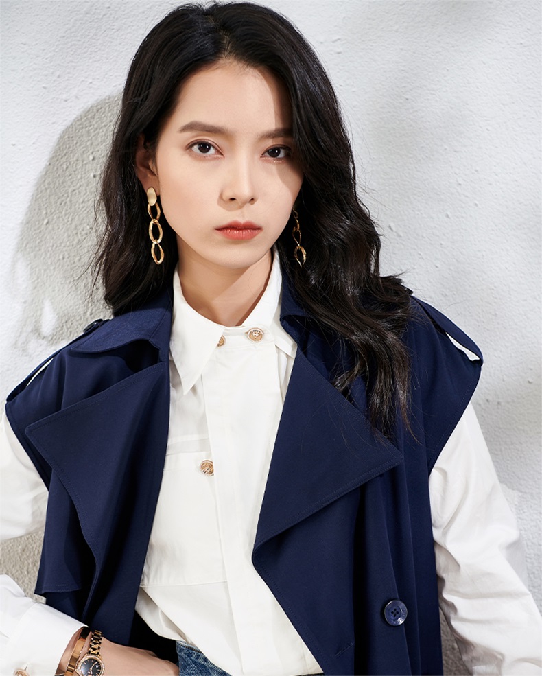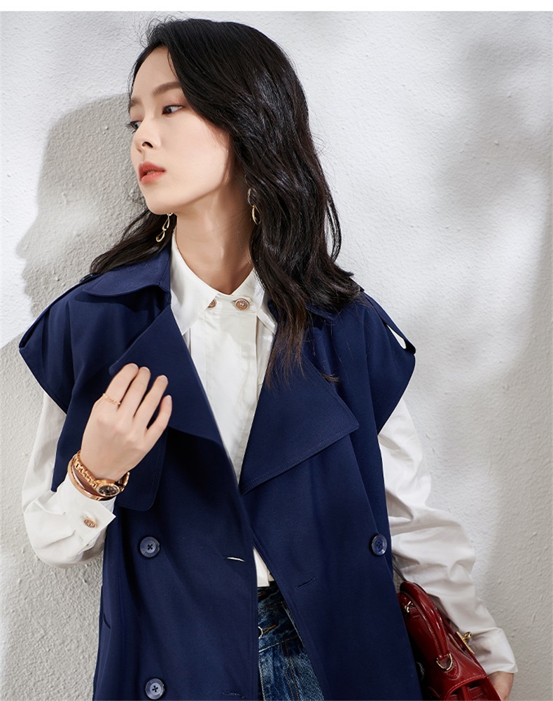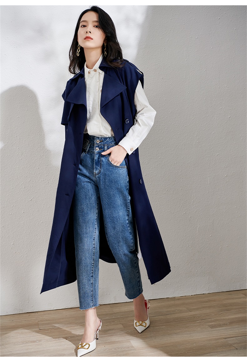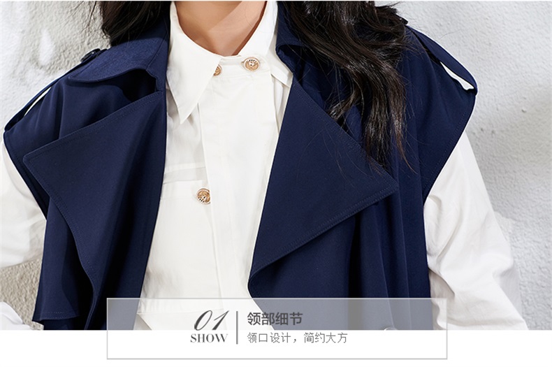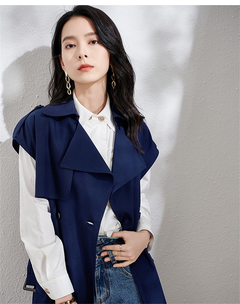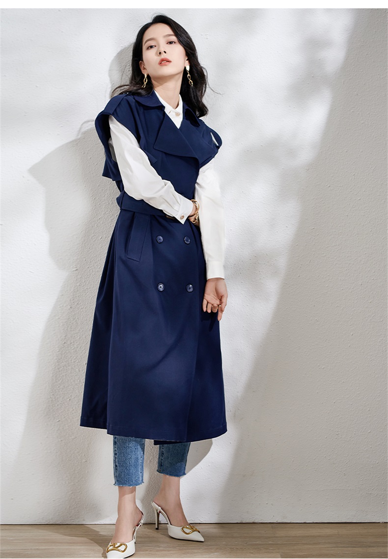 芳外春季新款时尚飒气无袖长款风衣女系带收腰街头风外套1466