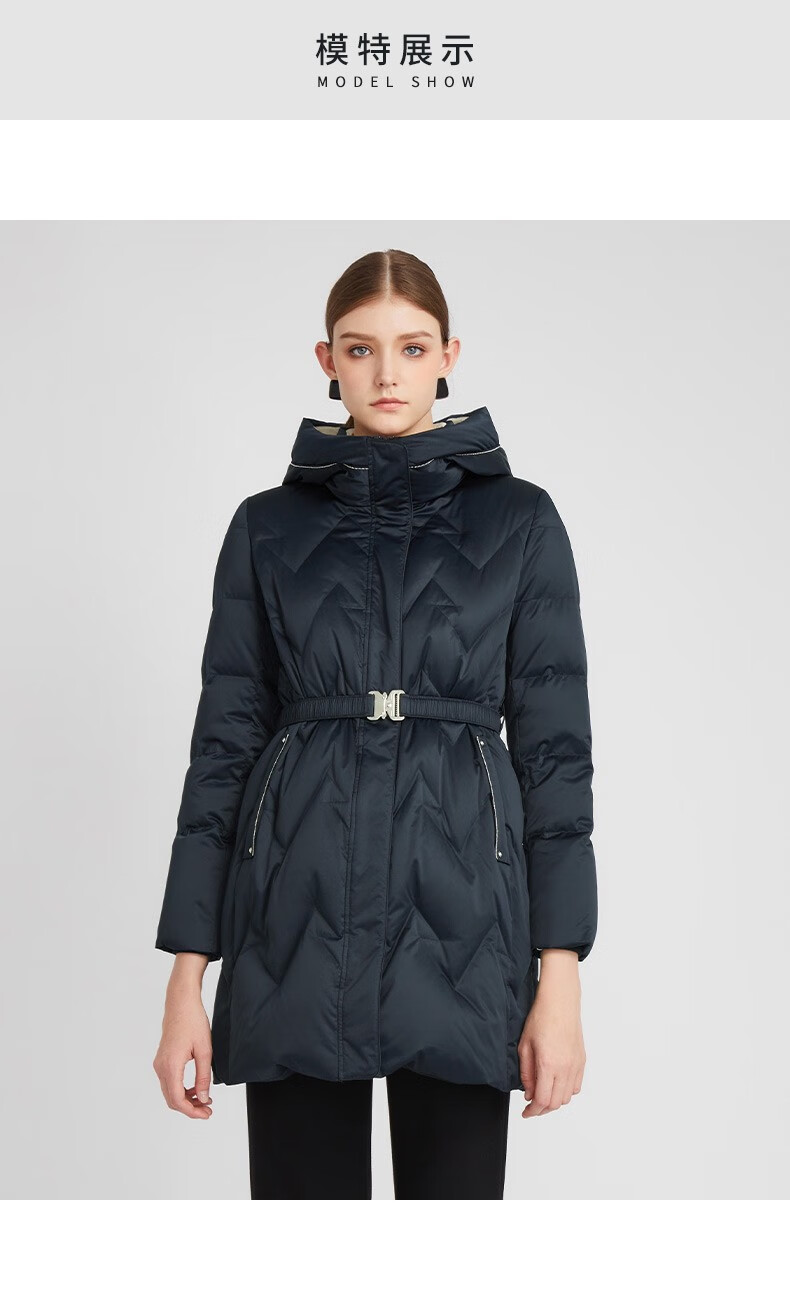 皮尔卡丹女装时尚保暖连帽简约收腰羽绒服P2493Y2403N0