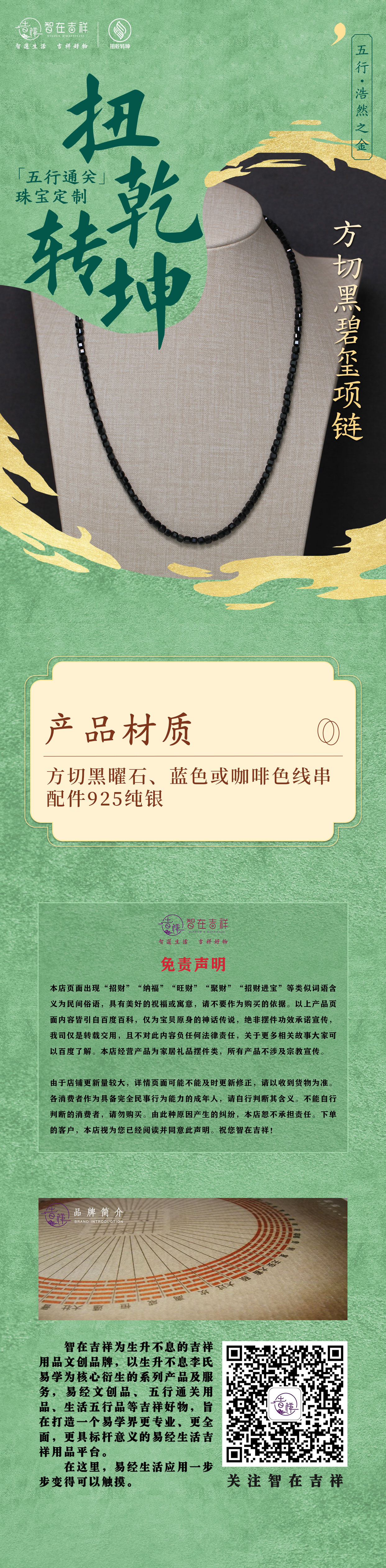 【浩然之金】方切黑碧玺项链