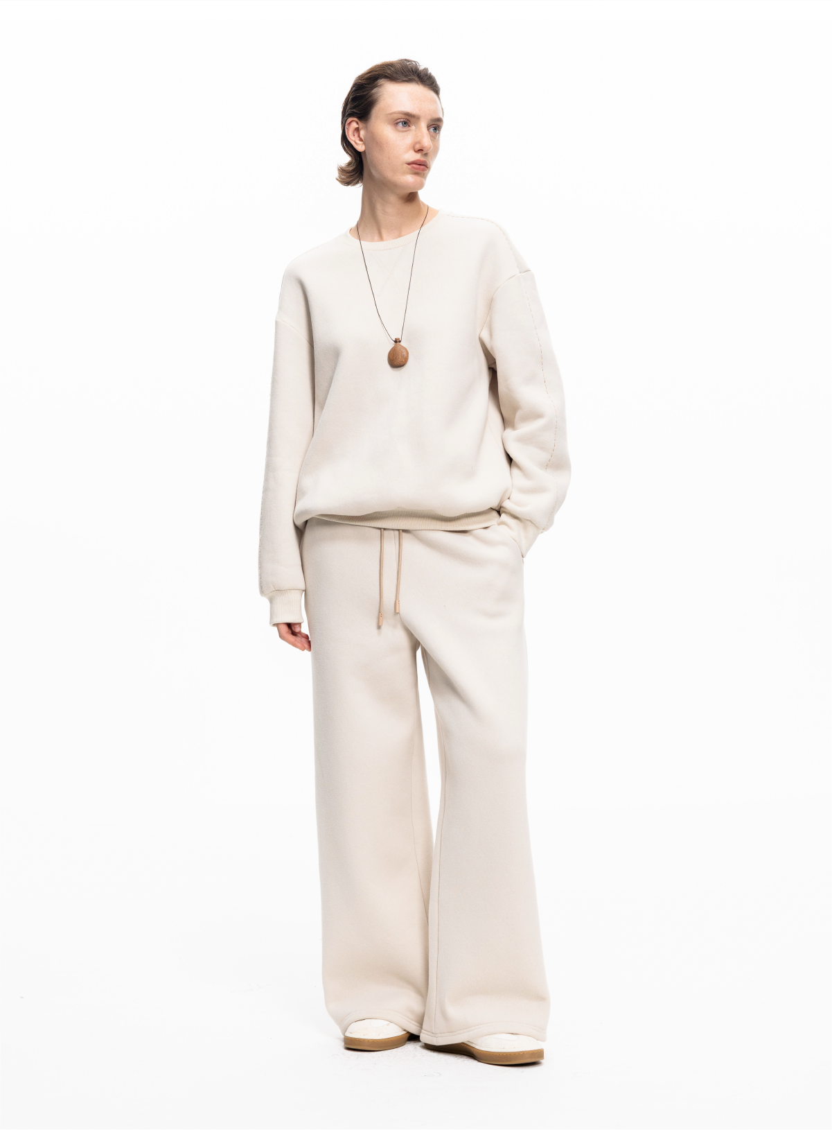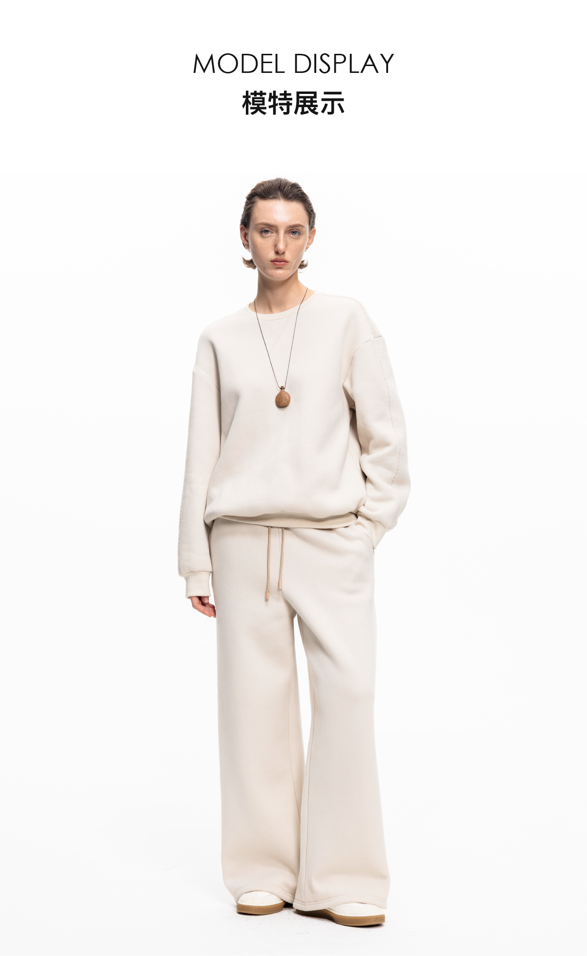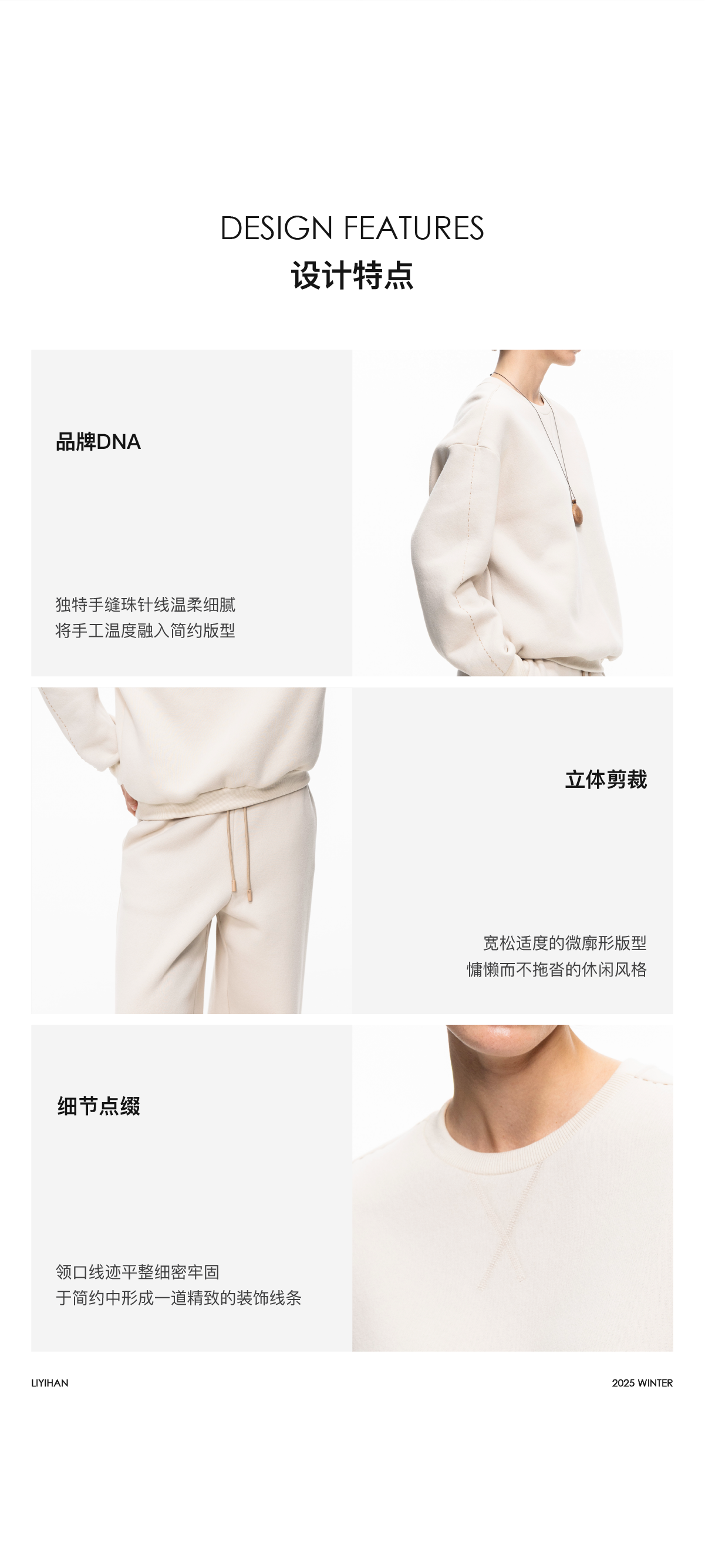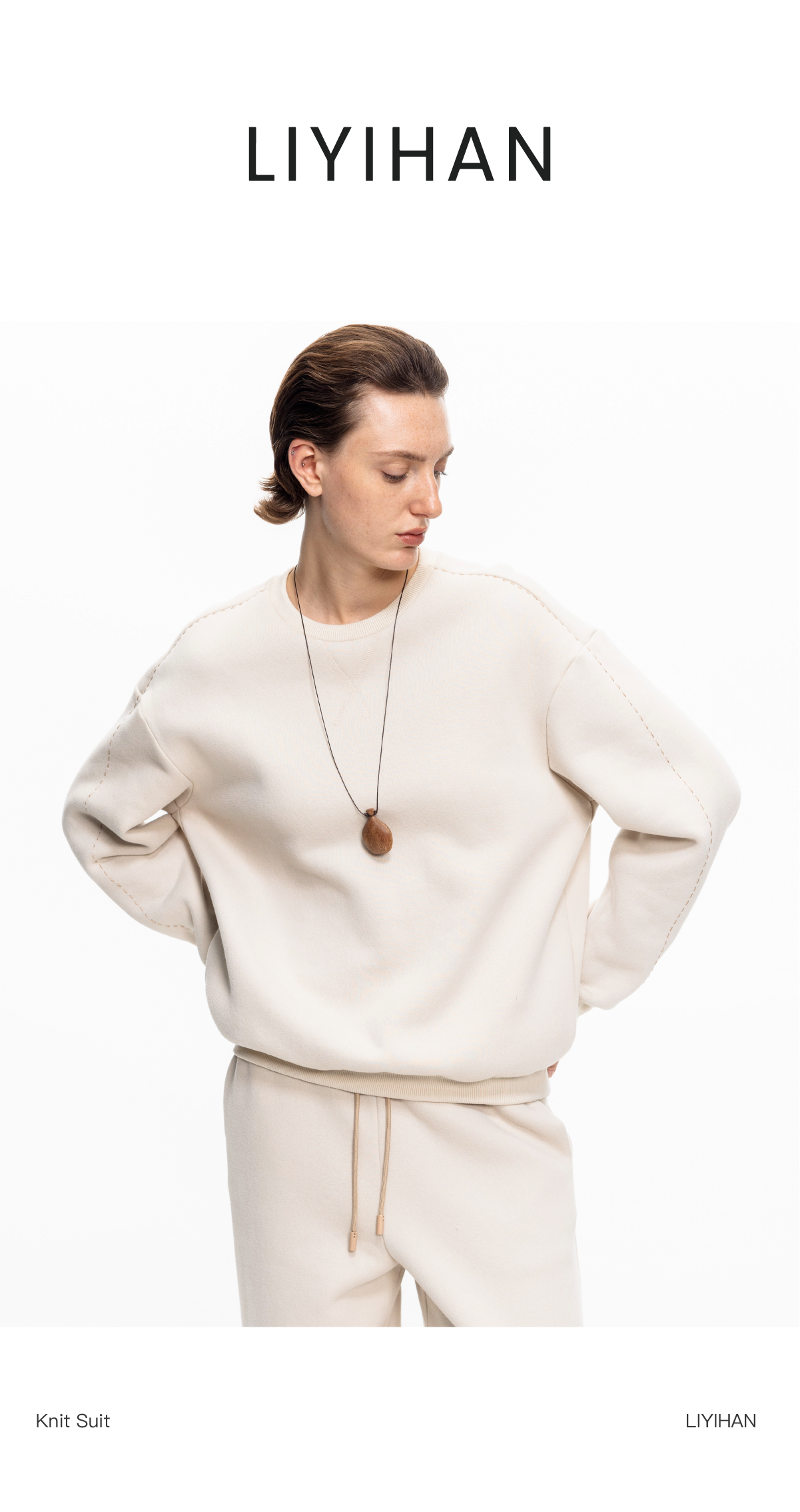 LIYIHAN 2025秋冬新款棉质加绒针织休闲裤米白色女直筒裤子设计感