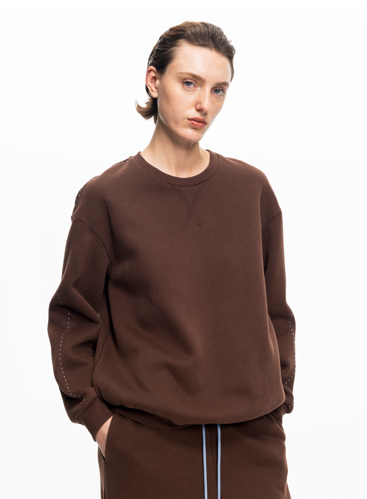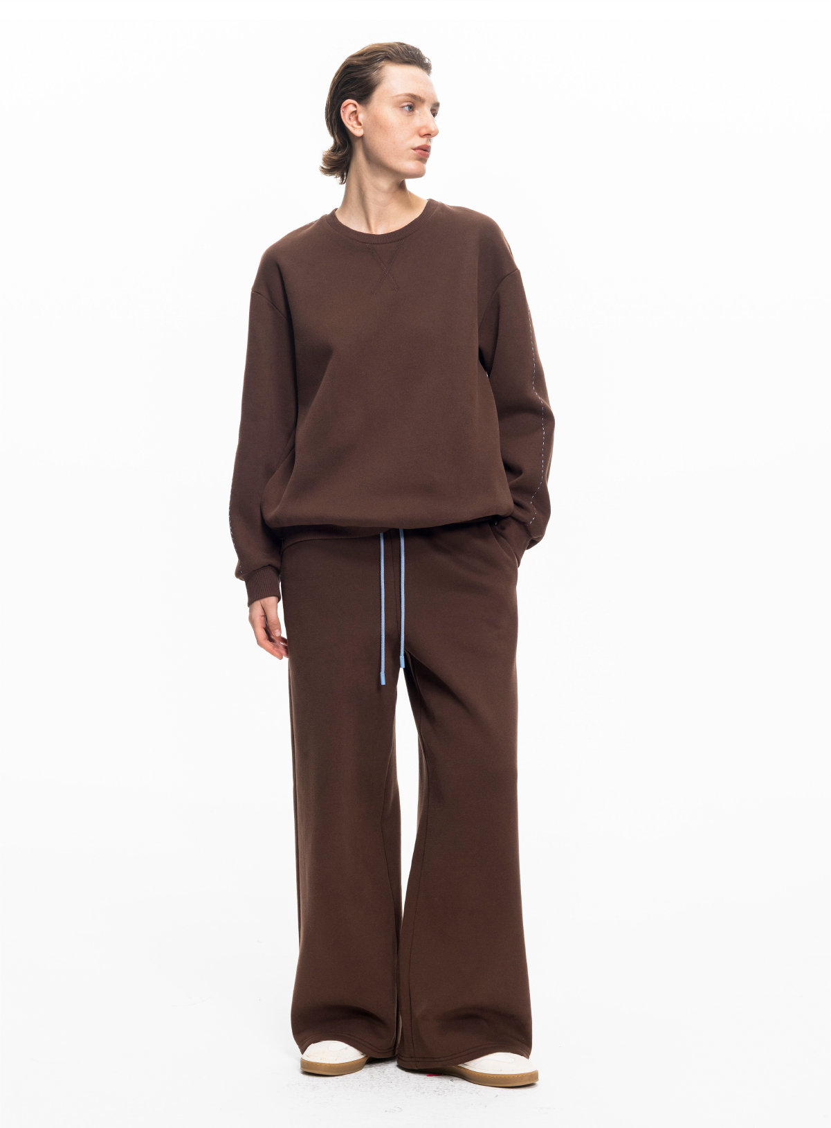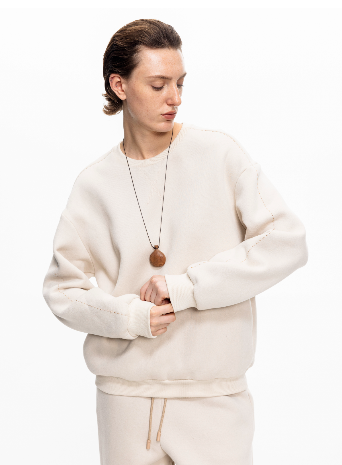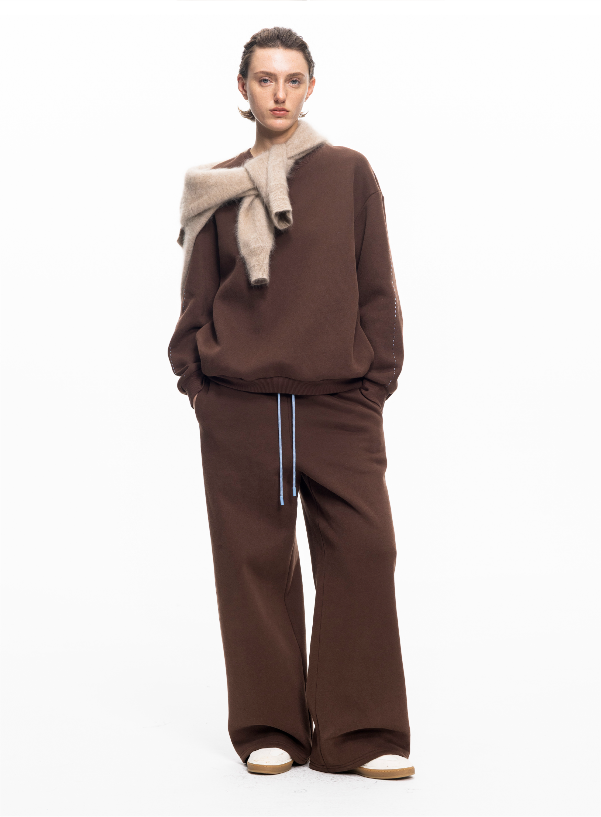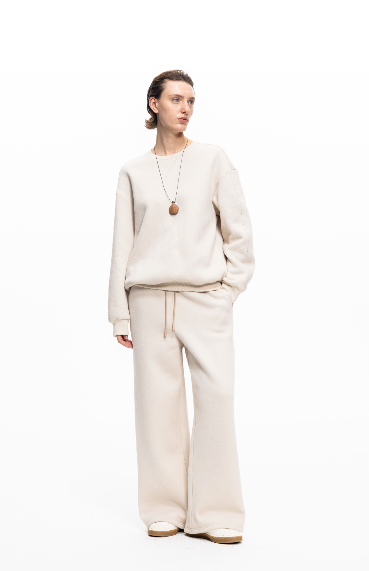 LIYIHAN 2025秋冬新款棉质加绒针织休闲裤米白色女直筒裤子设计感