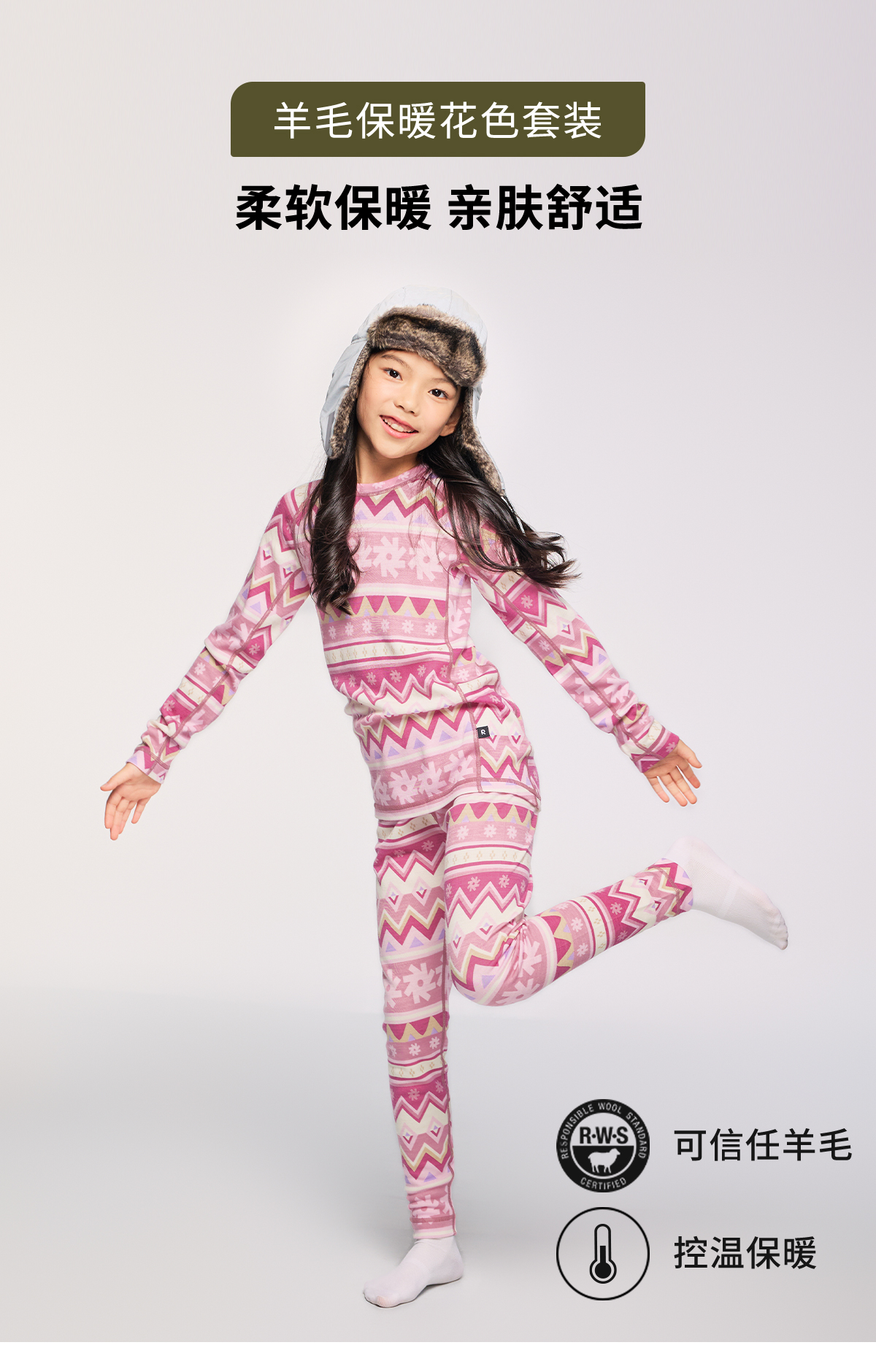 芬兰reima2025秋冬新款儿童中童保暖舒适亲肤针织长袖花色套装