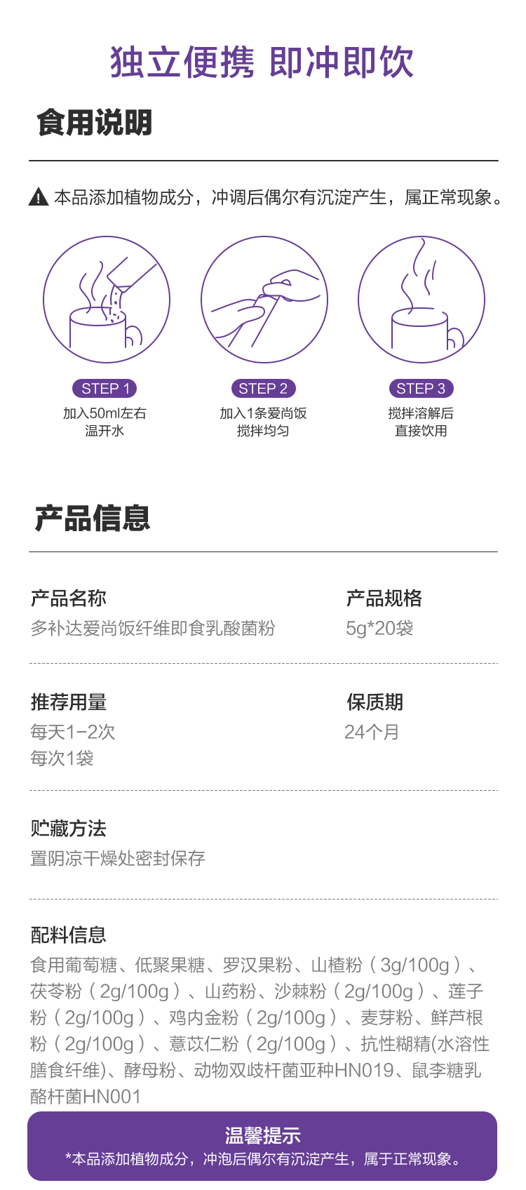 多补达 爱尚饭纤维即食乳酸菌粉5g*20条植物配方营养