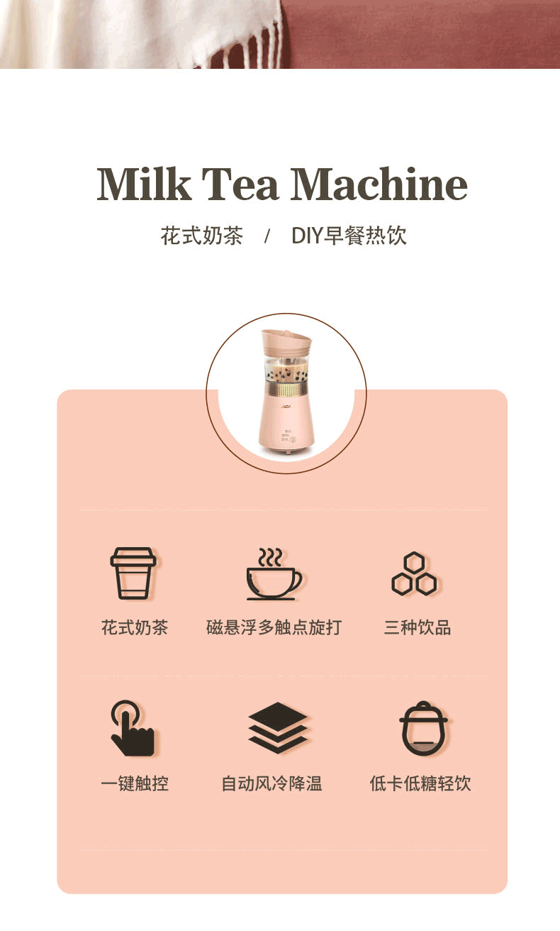 ACA北美电器 便携奶茶机ALY-38NC01D