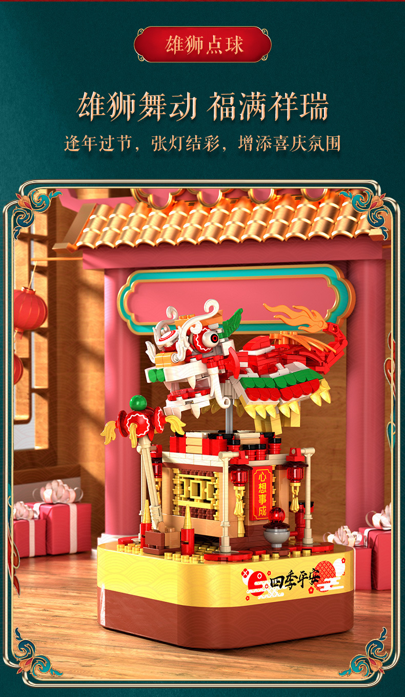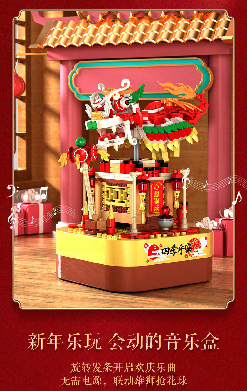 【秒杀款 原价99💰 现29.9元!】年味浓浓🧨经典【雄狮点球音乐盒🦁】【正品JAKI佳奇品牌积木】JK1301拼手速啦😎特价清仓‼