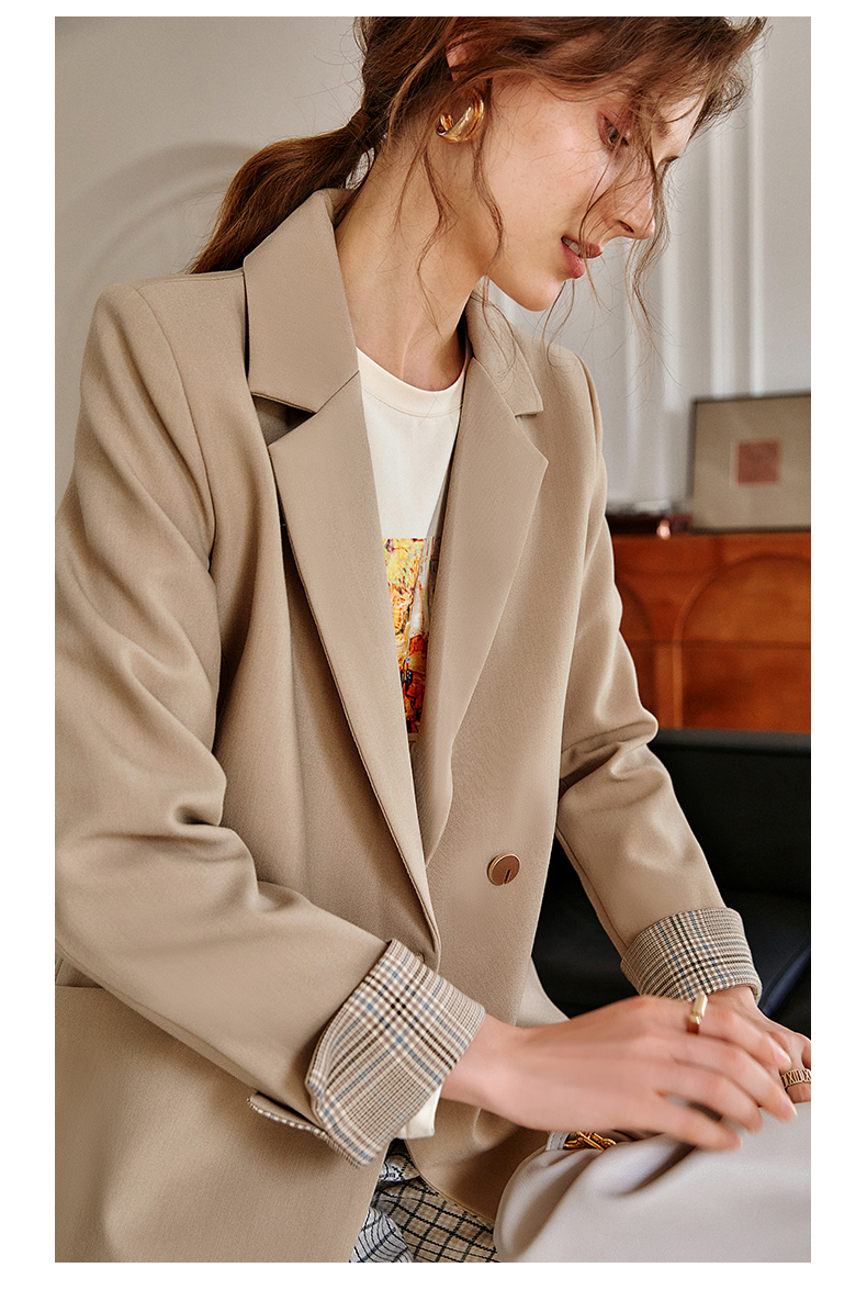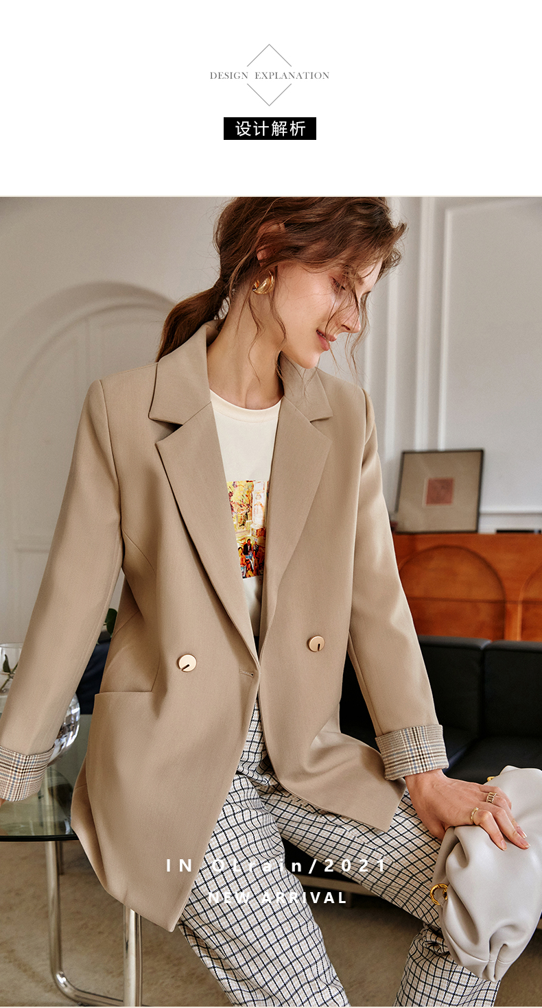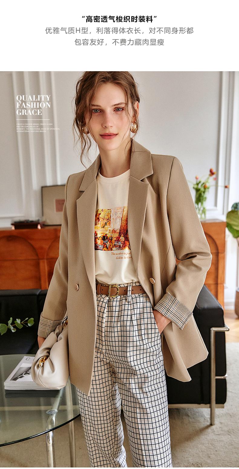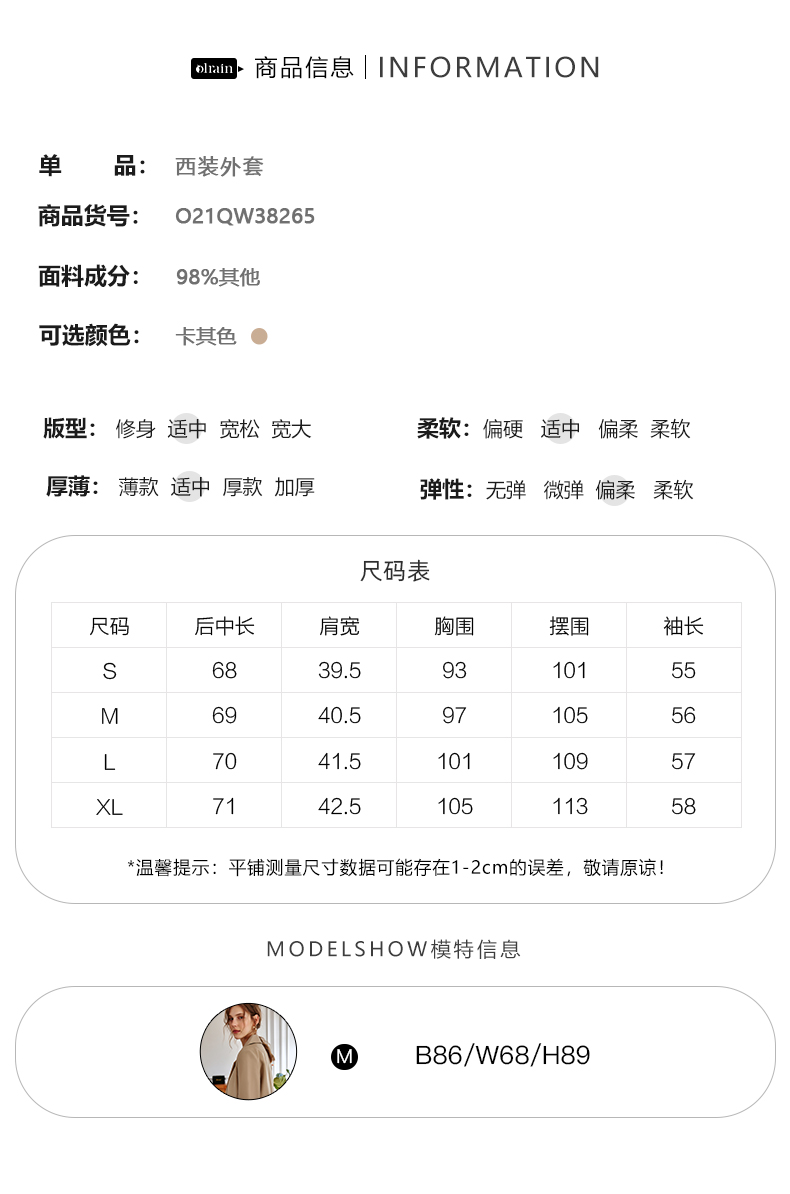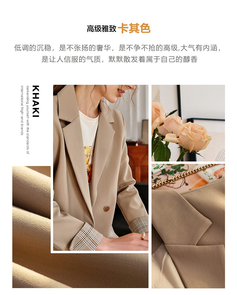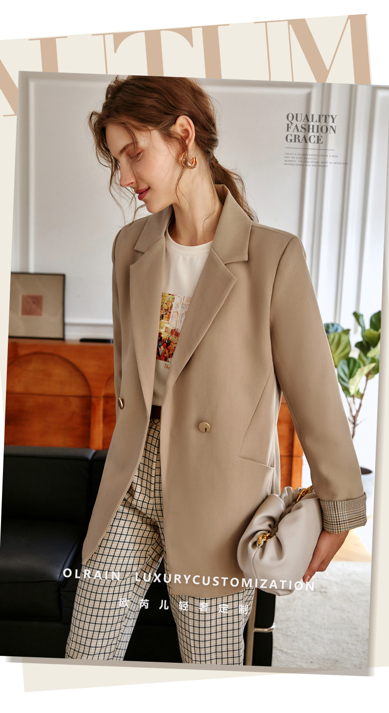 欧芮儿卡其色西装外套女新款2021宽松显瘦气质通勤设计感上衣