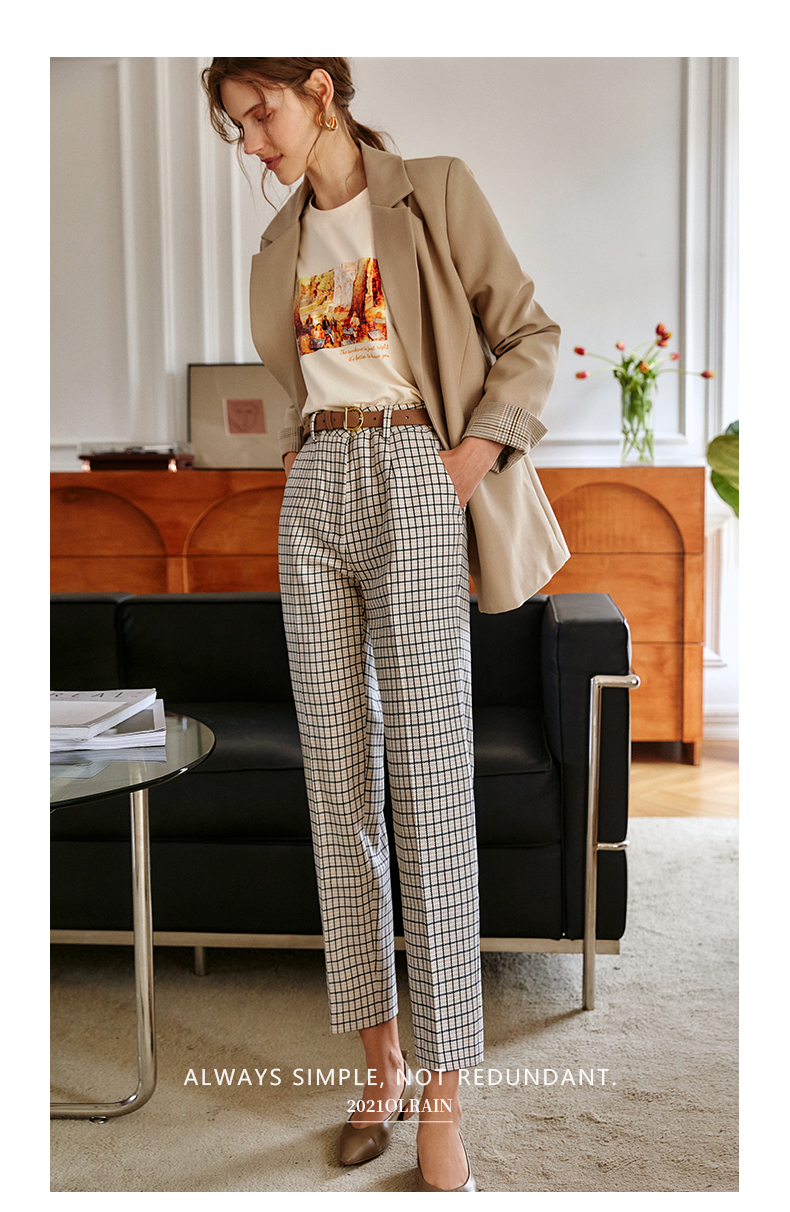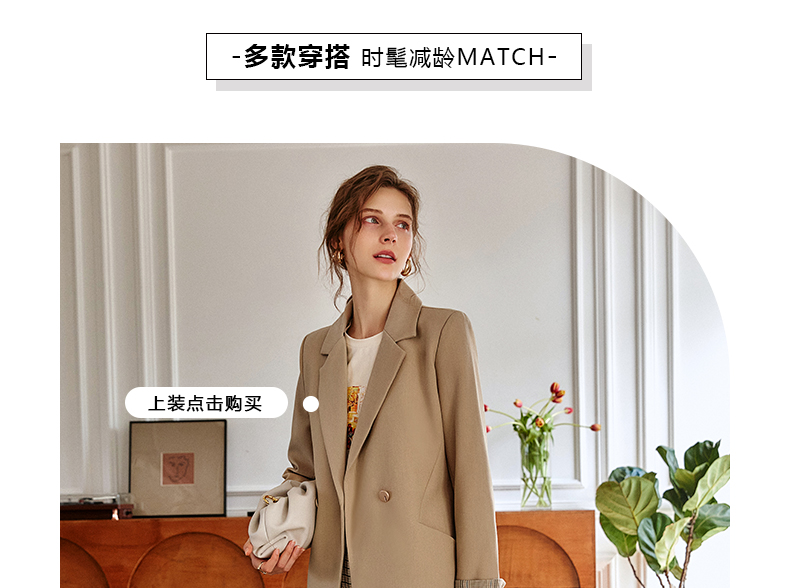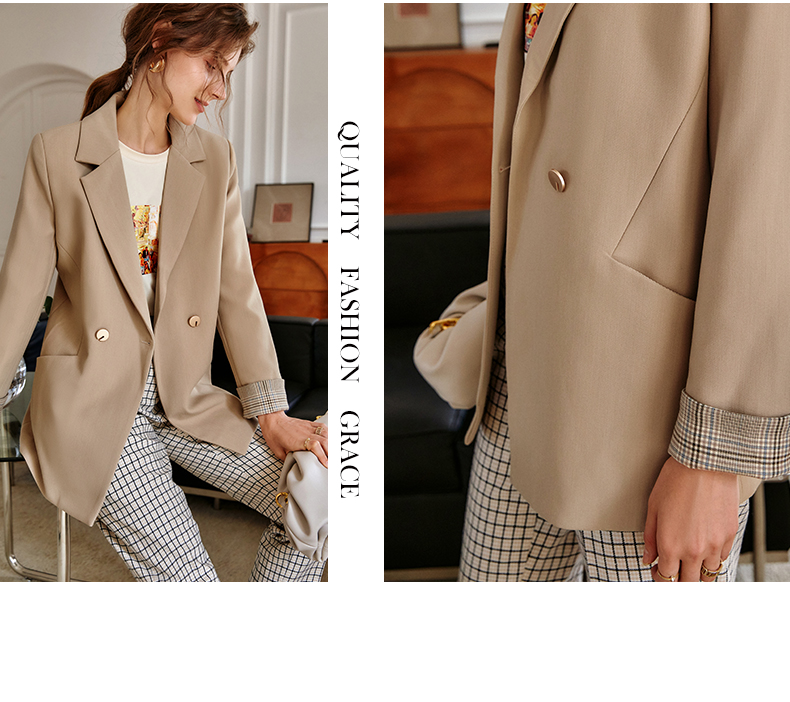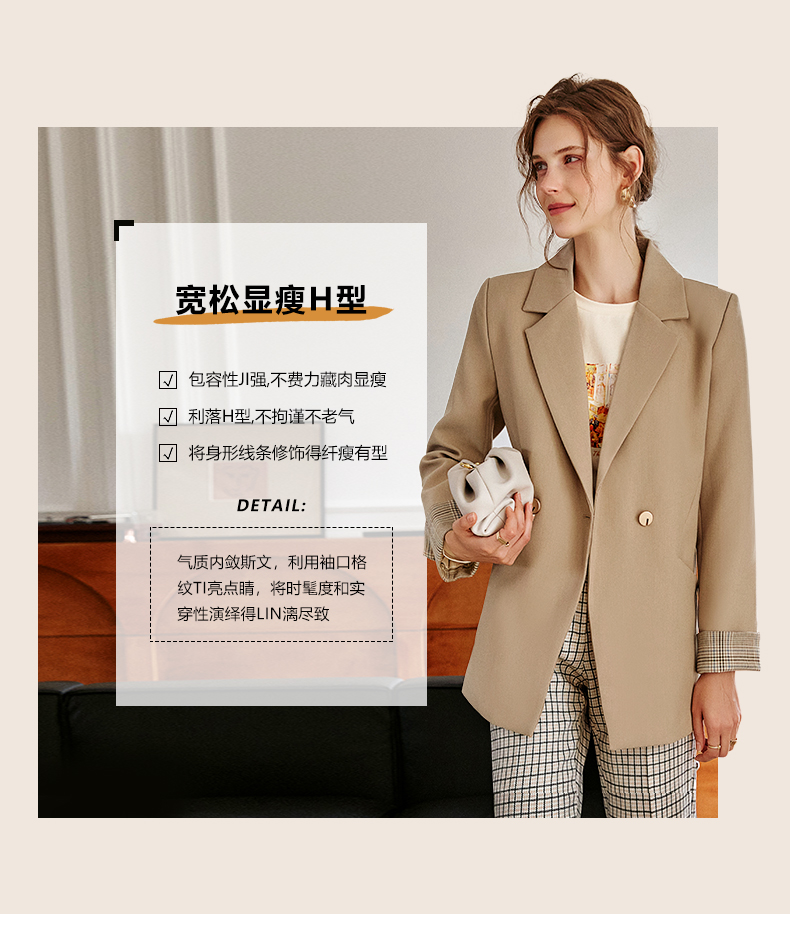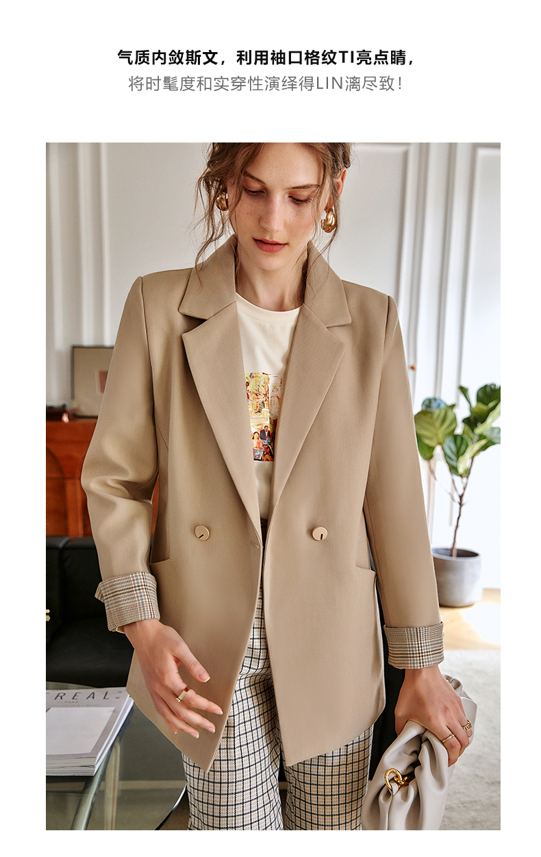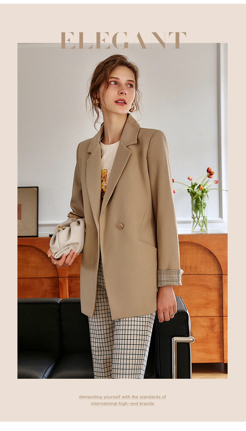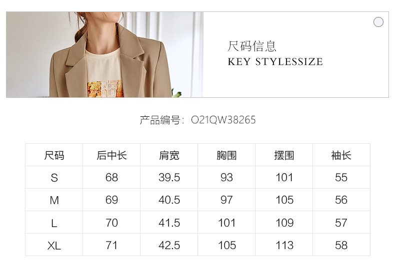 欧芮儿卡其色西装外套女新款2021宽松显瘦气质通勤设计感上衣