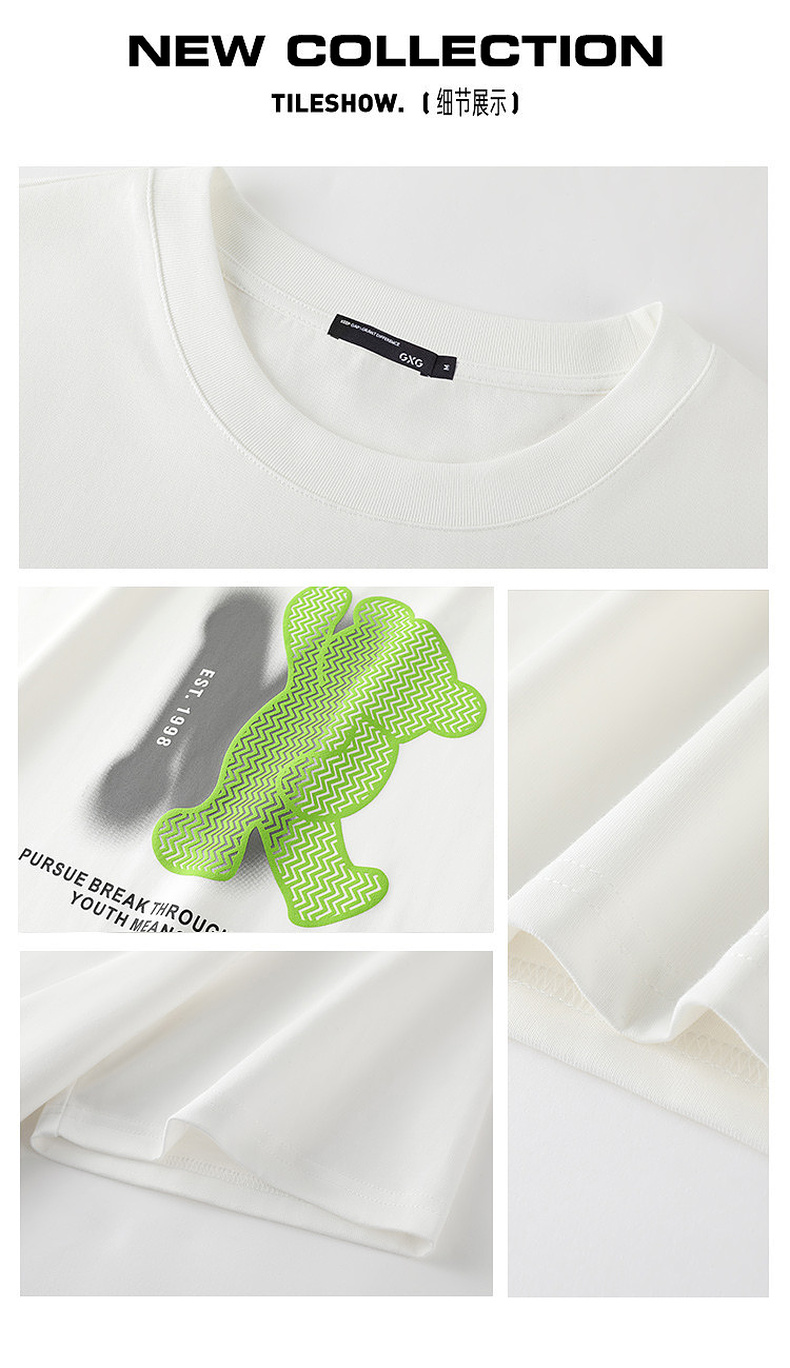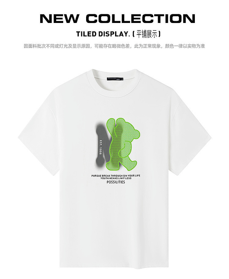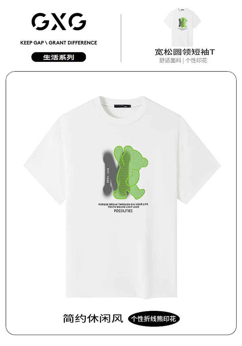 GXG男装【卡通熊印花】夏季时尚字母t恤男休闲百搭宽松圆领短袖k&C