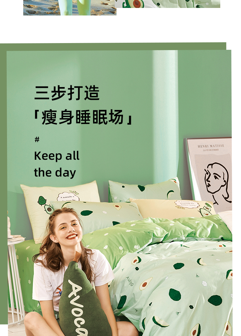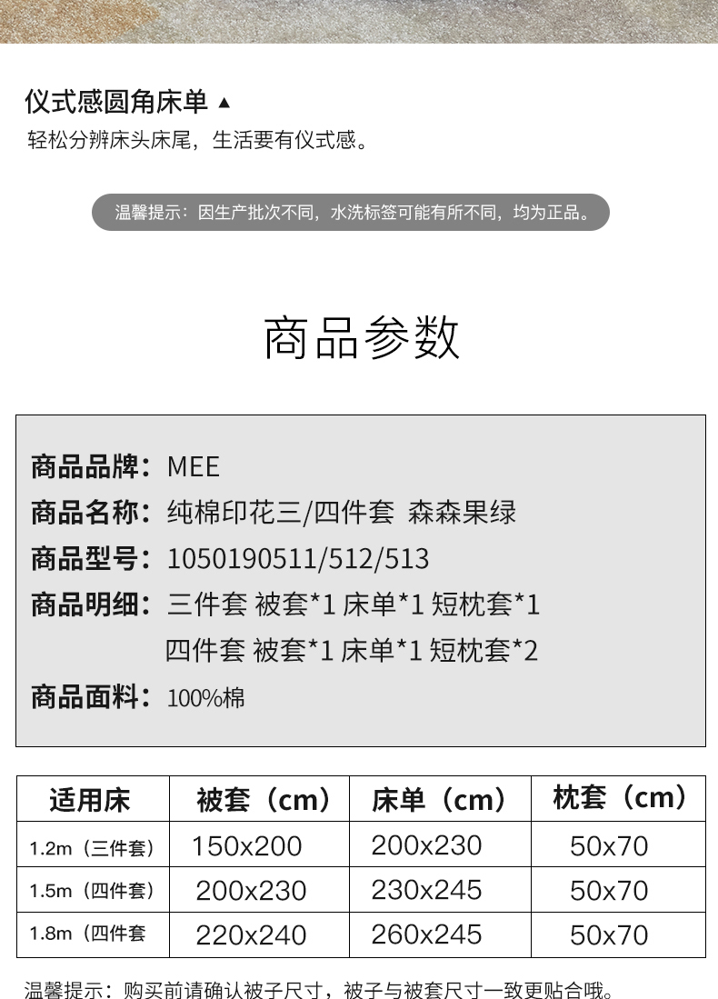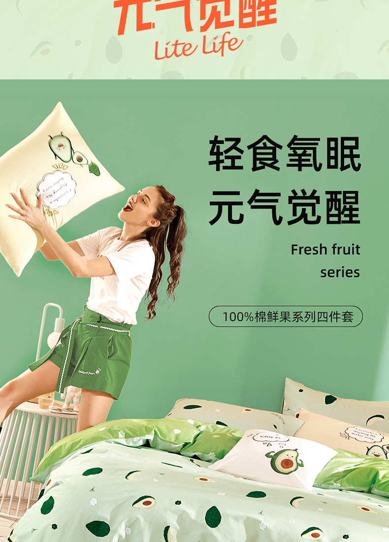 梦洁MEE 纯棉印花四件套.森森果绿1050190512