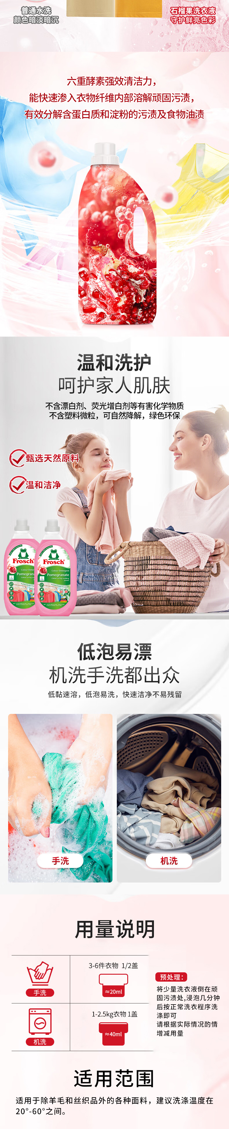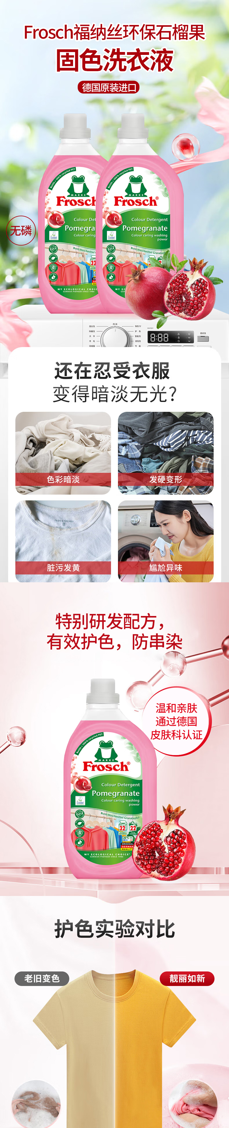 德国进口Frosch福纳丝环保石榴果固色洗衣液1.5L