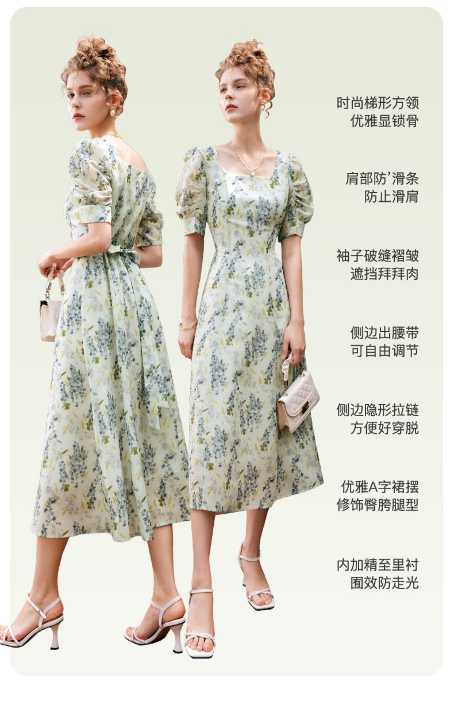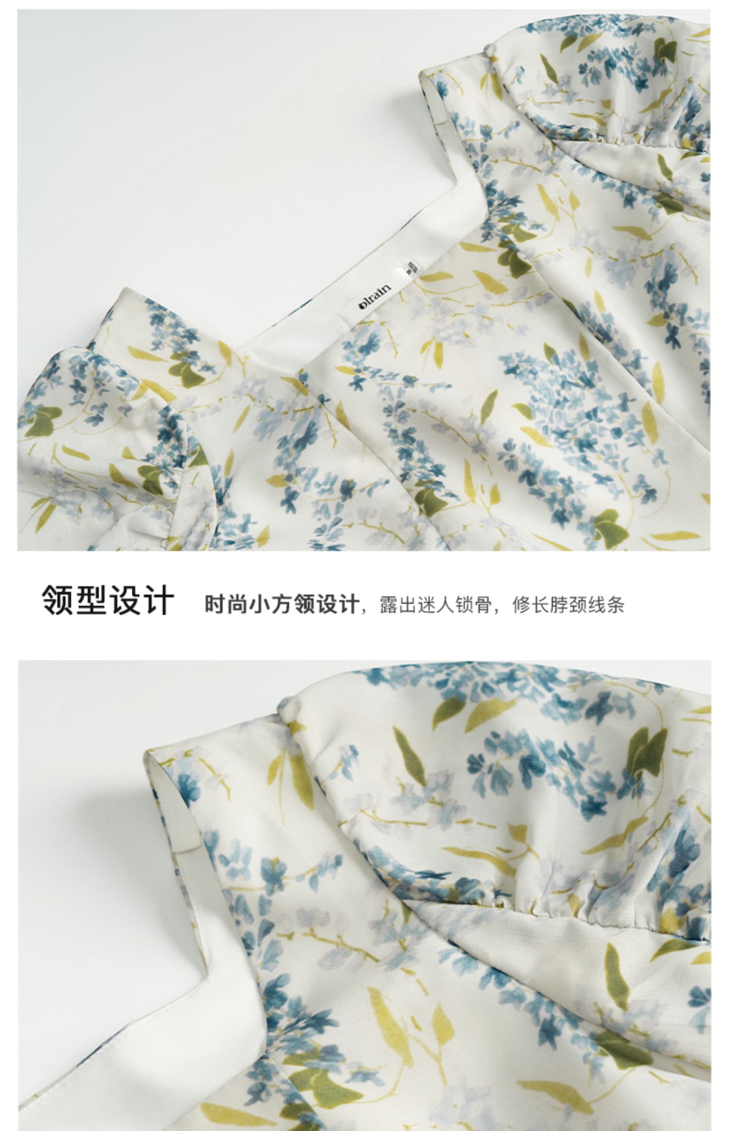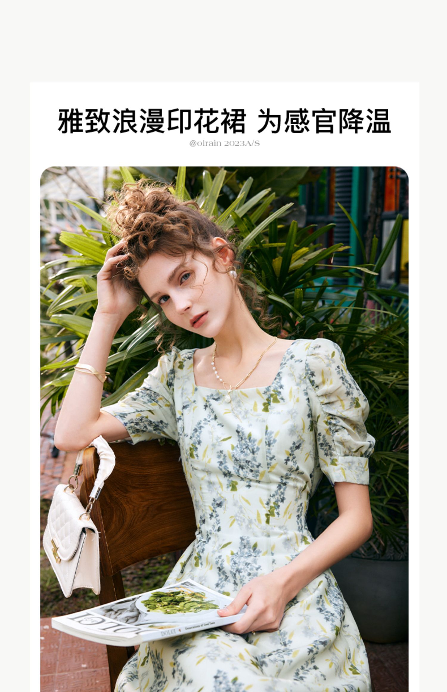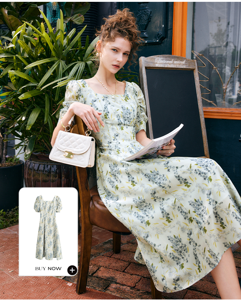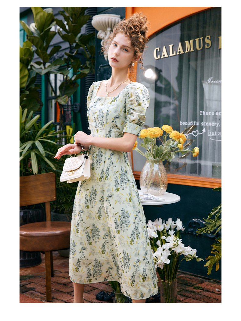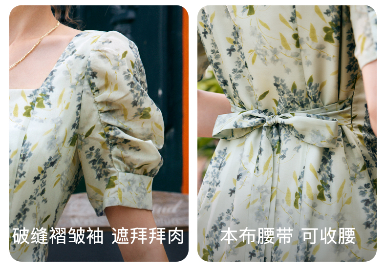 OLrain欧芮儿法式复古方领短袖连衣裙女夏季2025新款气质茶歇长裙