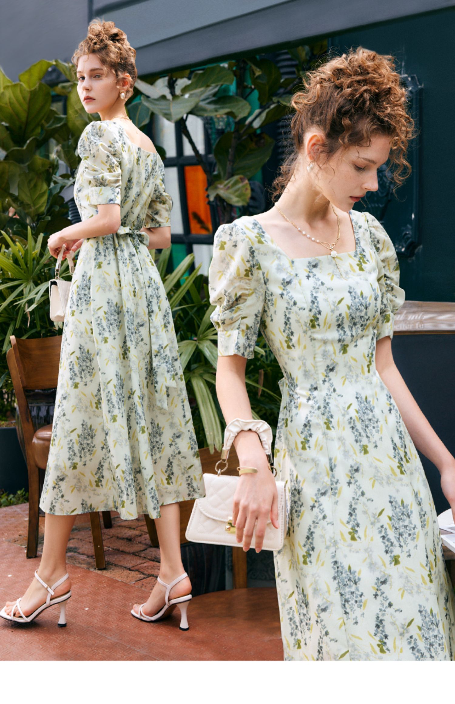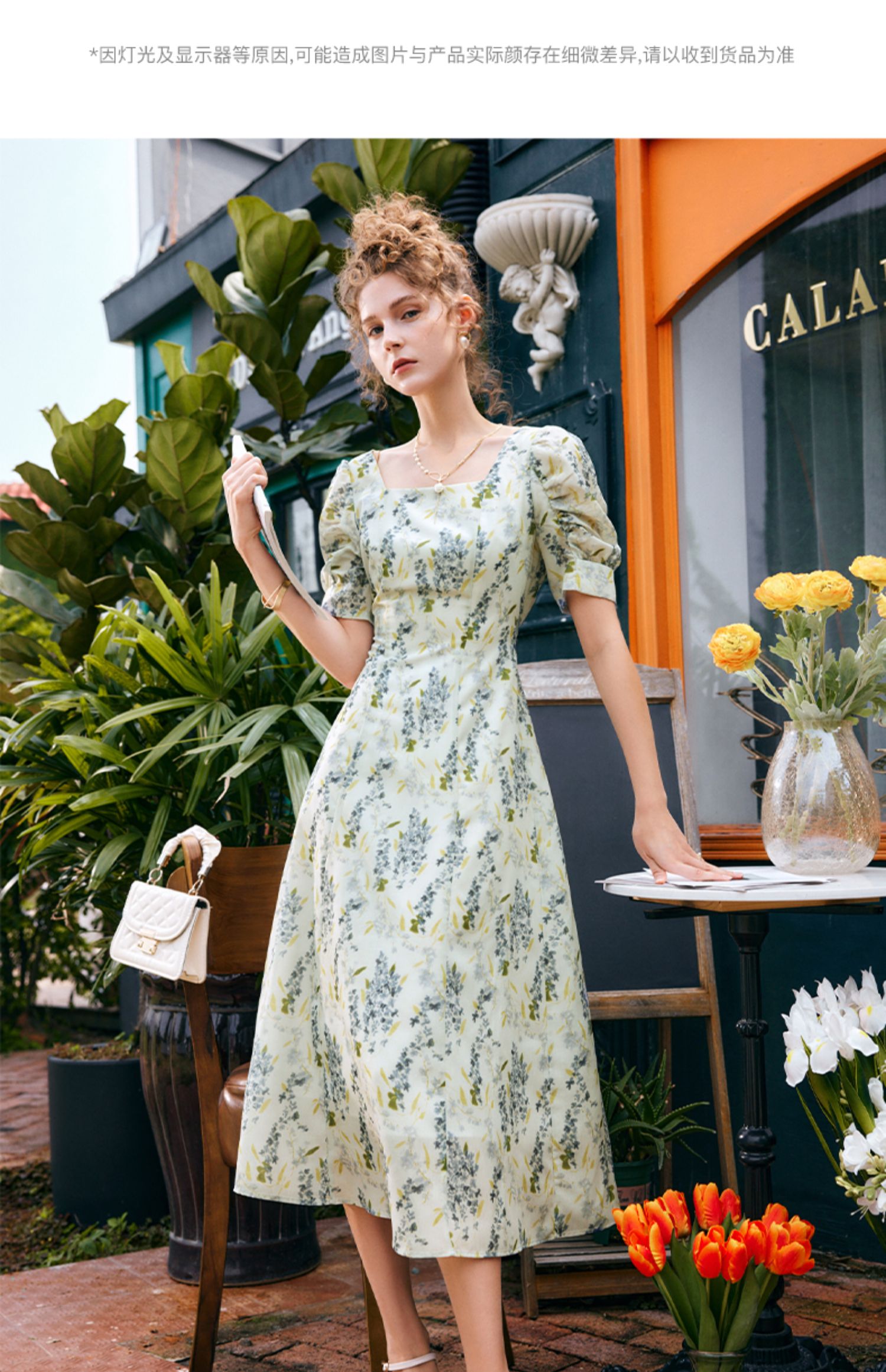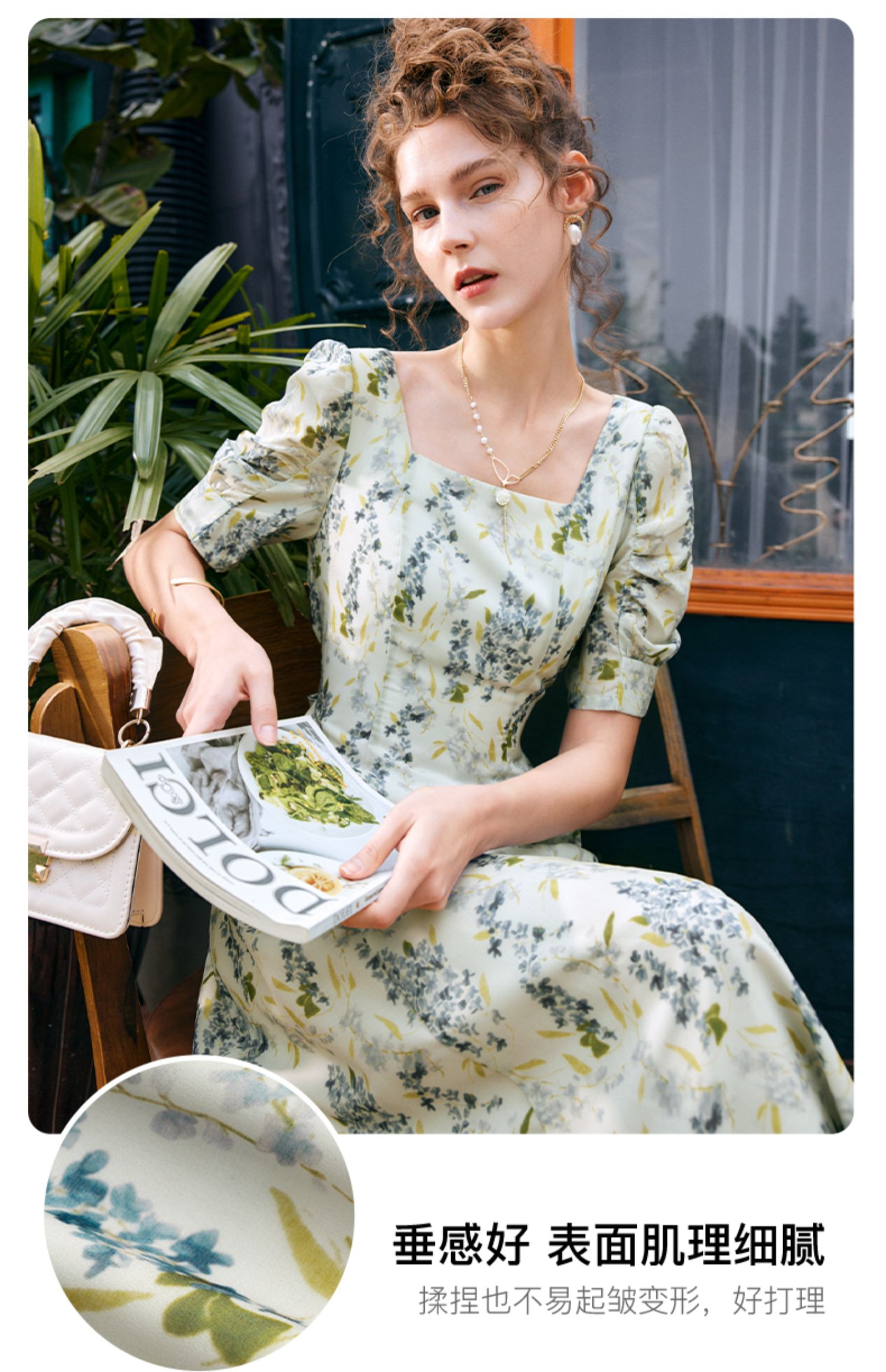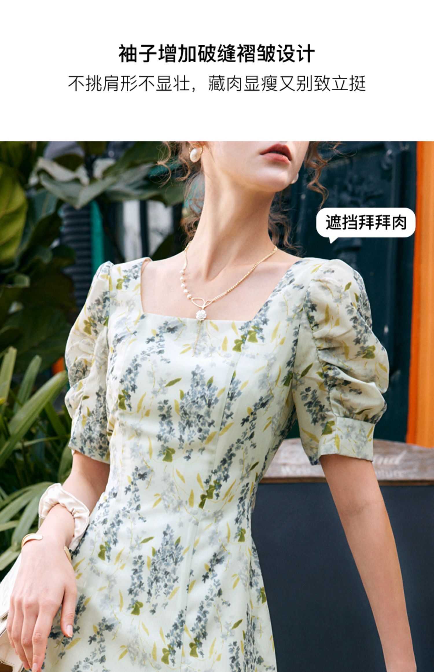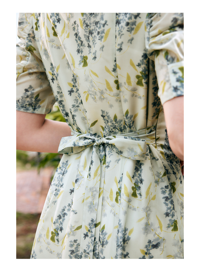 OLrain欧芮儿法式复古方领短袖连衣裙女夏季2025新款气质茶歇长裙