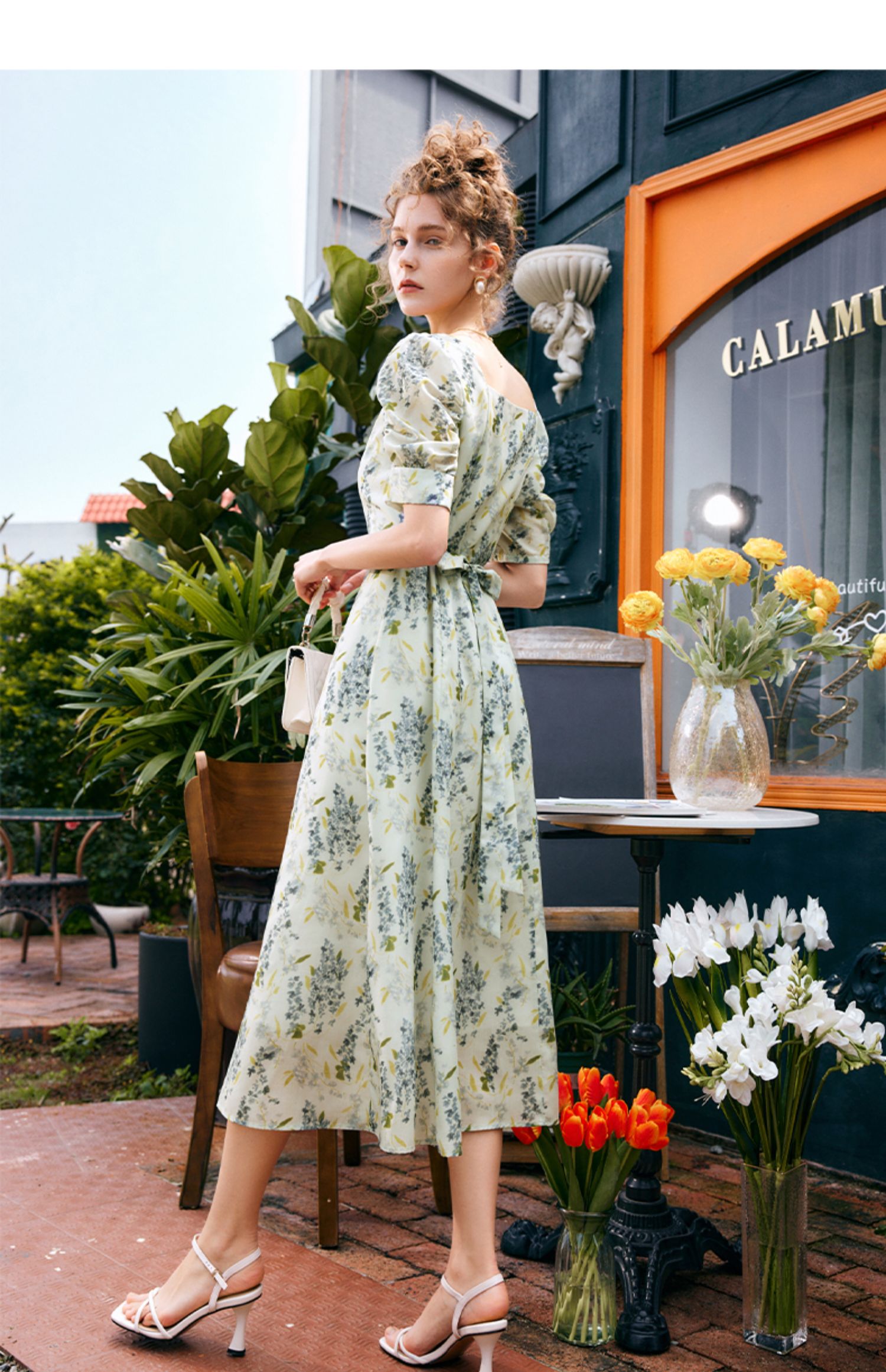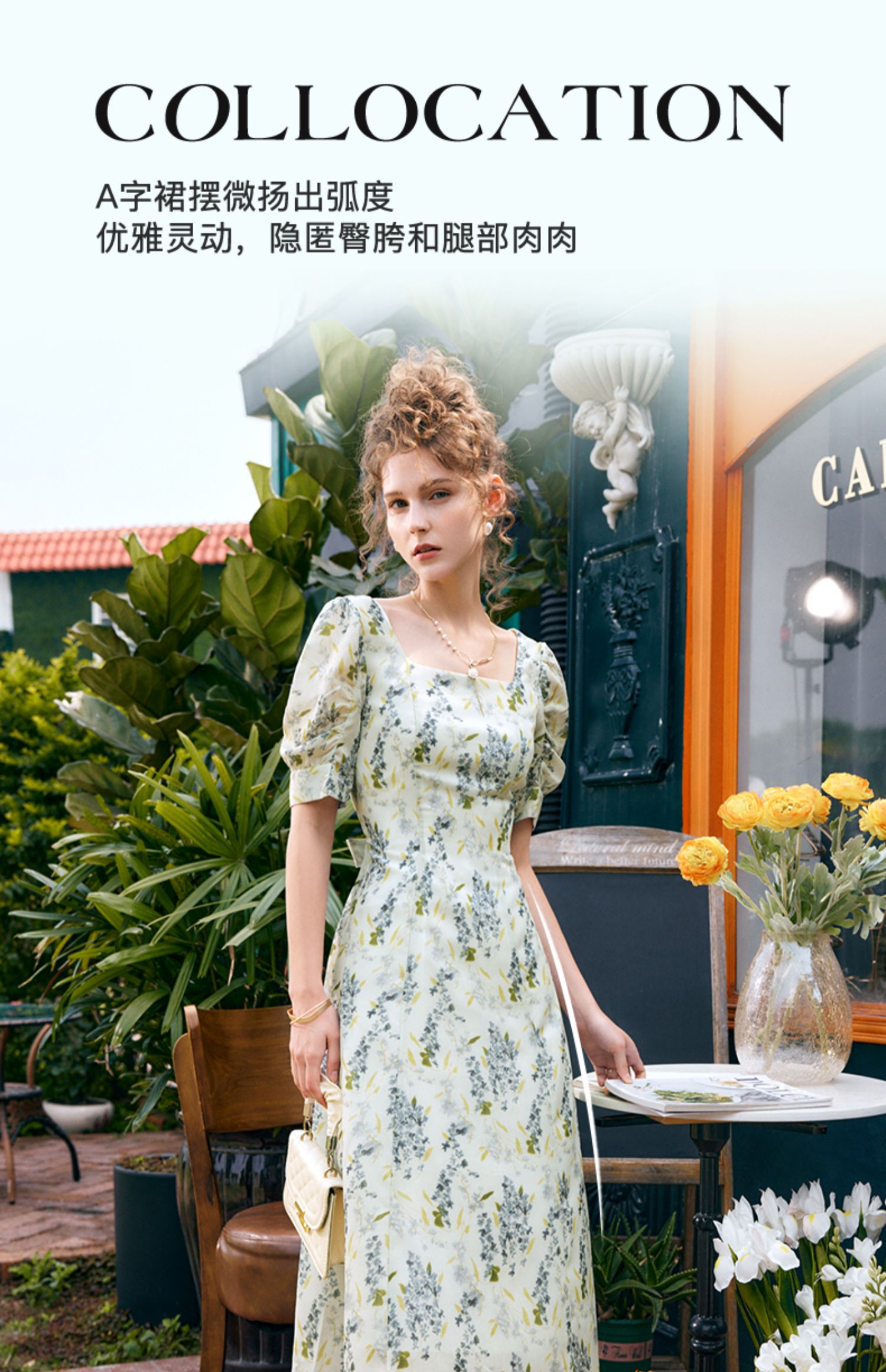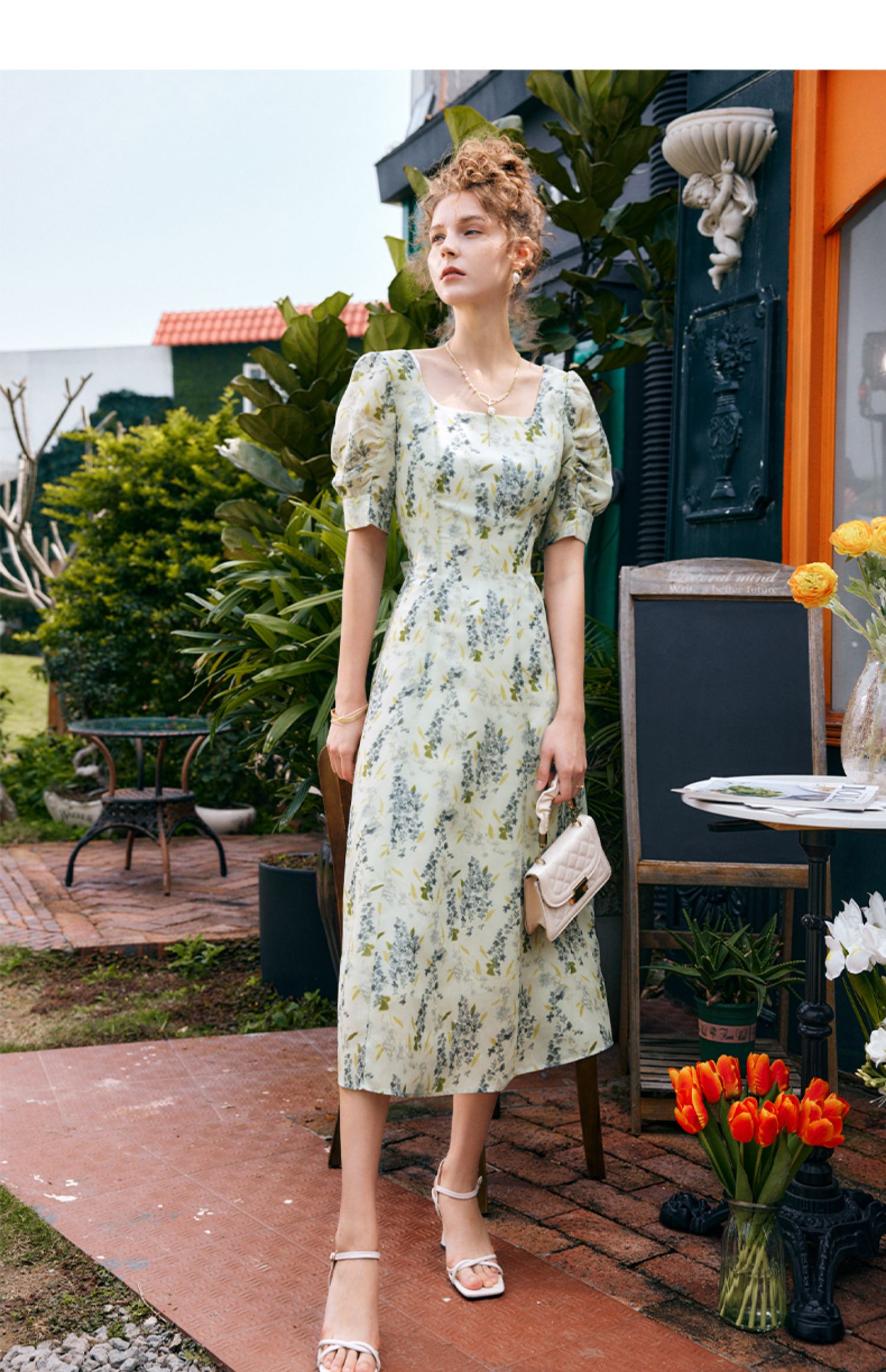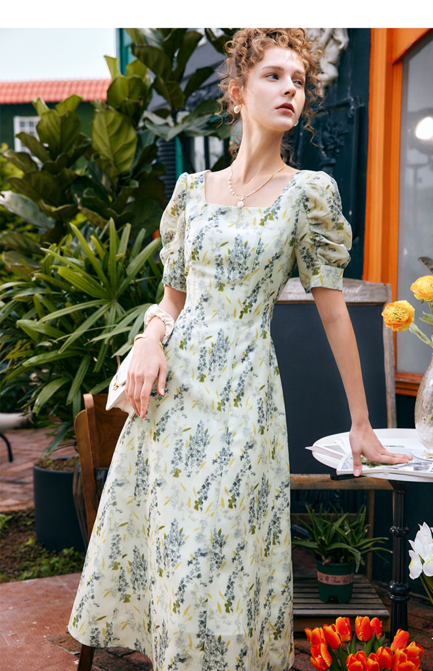 OLrain欧芮儿法式复古方领短袖连衣裙女夏季2025新款气质茶歇长裙