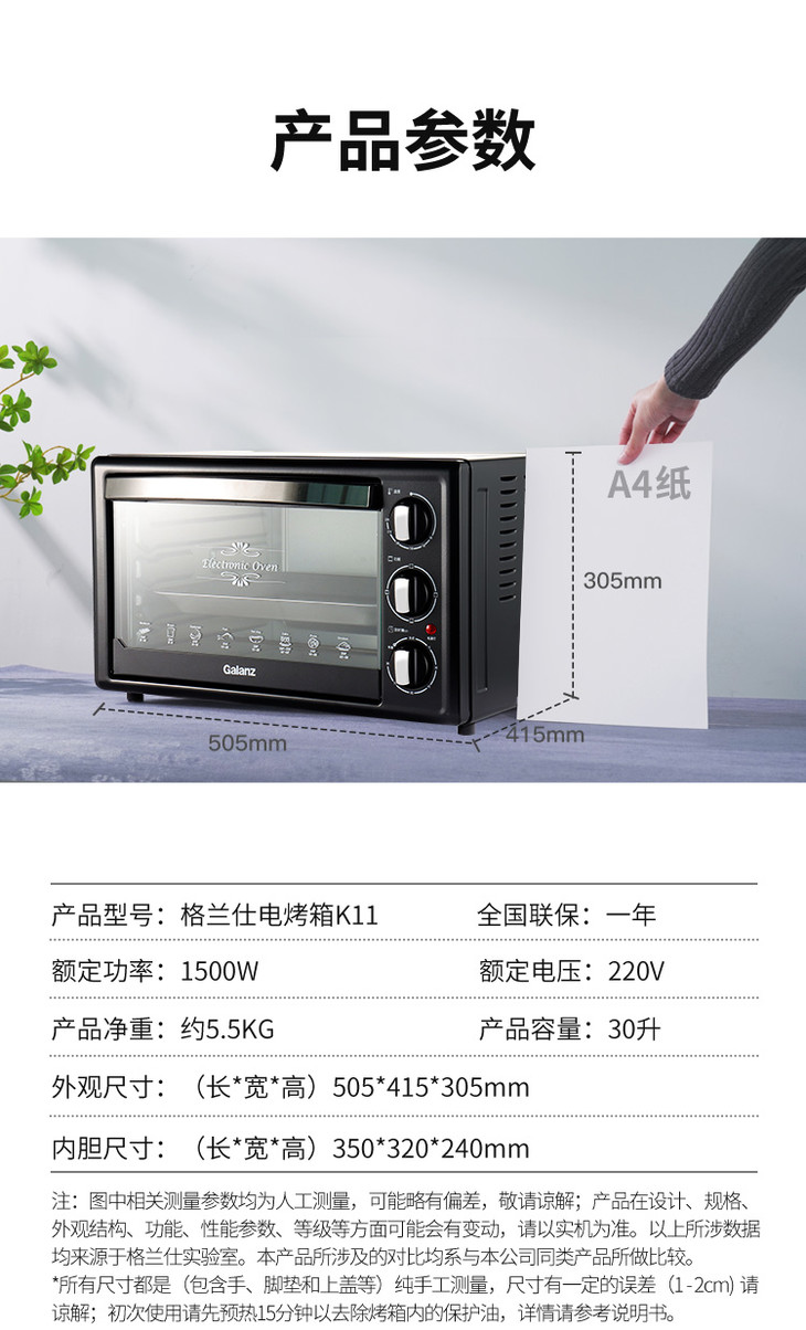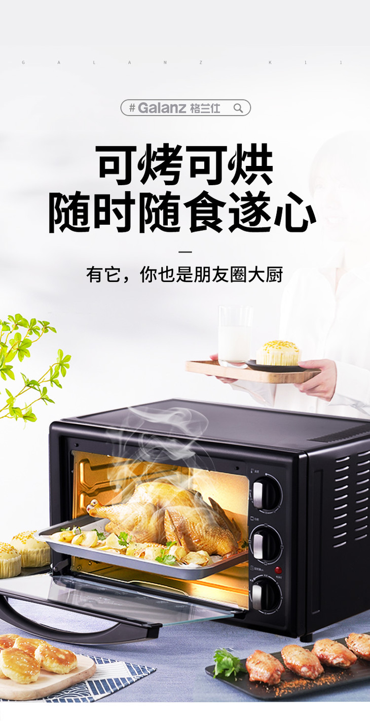 格兰仕烤箱家用烘焙多功能全自动小型电烤箱30升大容量烤箱GM30
