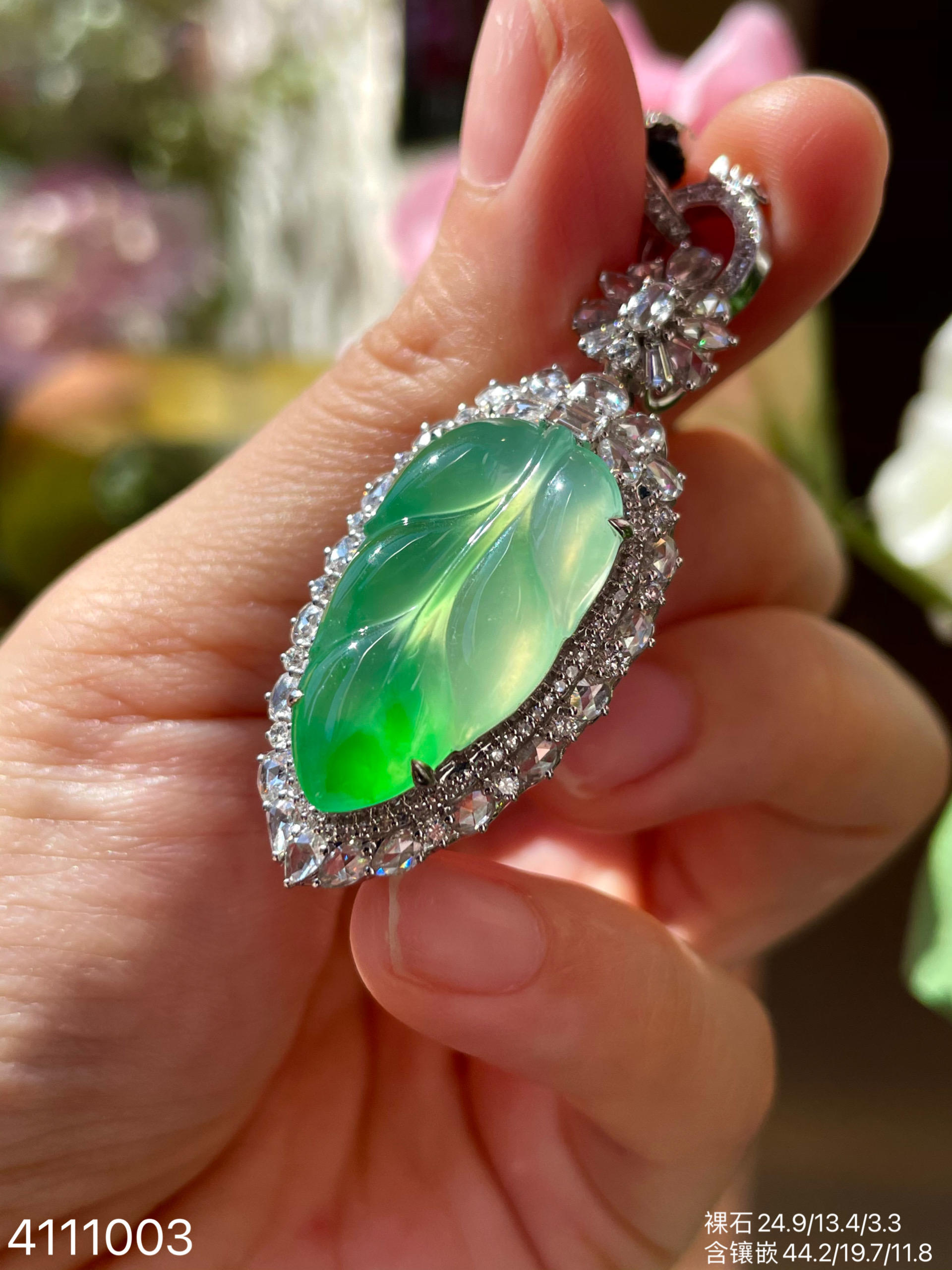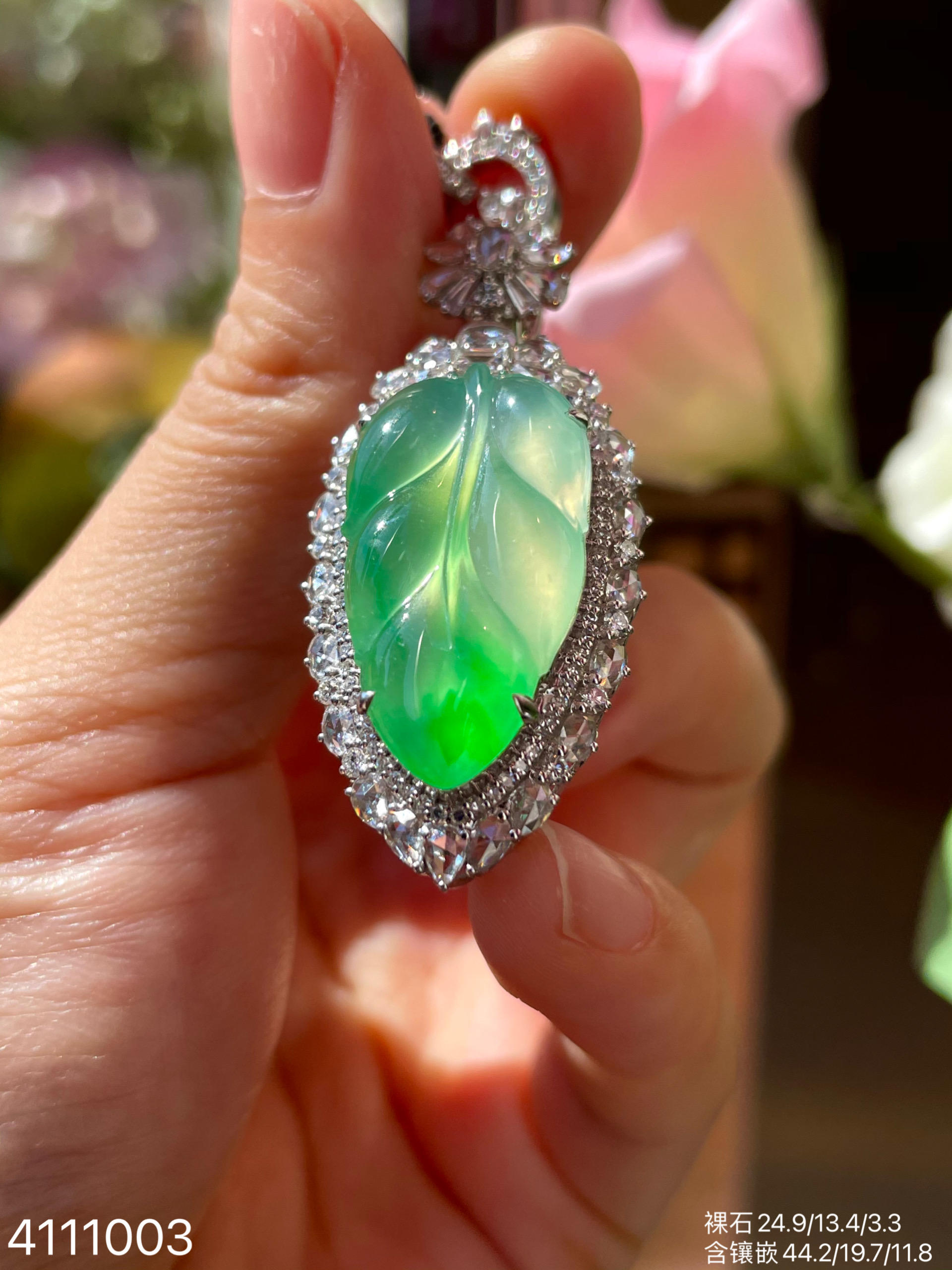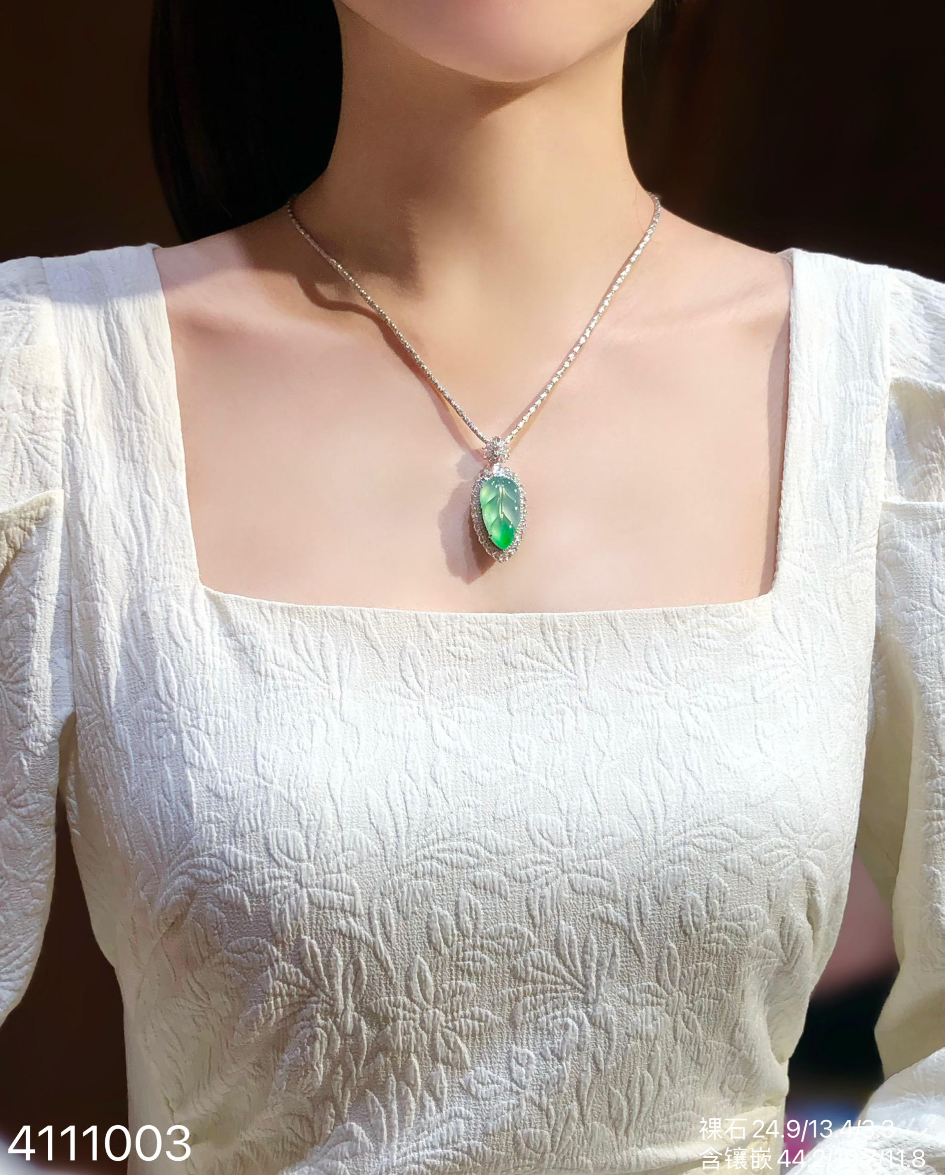 4111003,玻璃飘翠叶子吊坠。具体价格微信咨询
