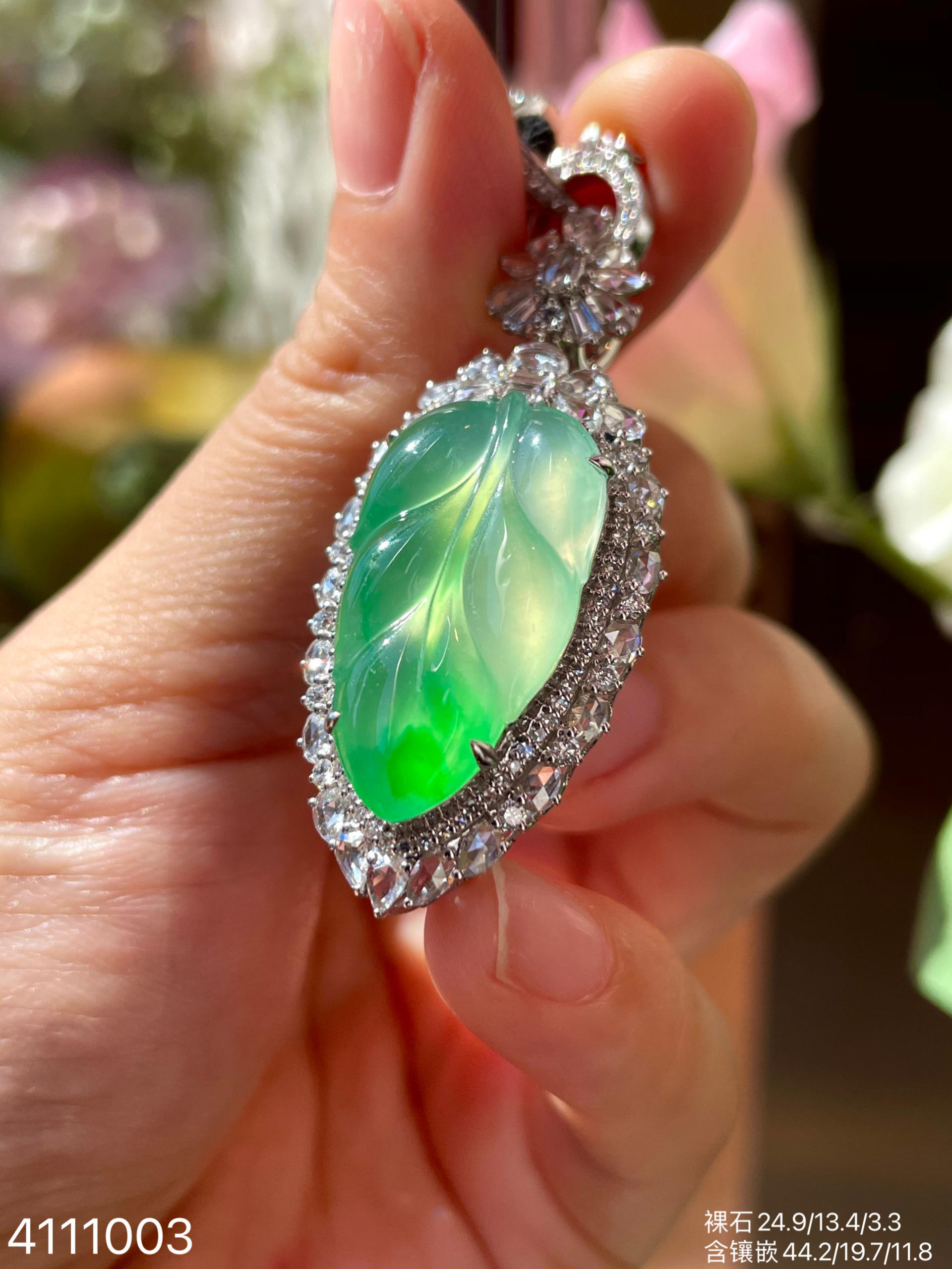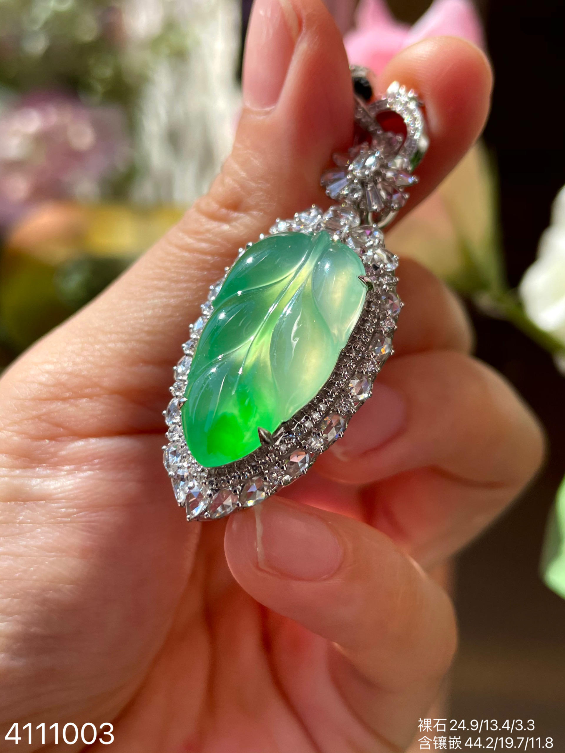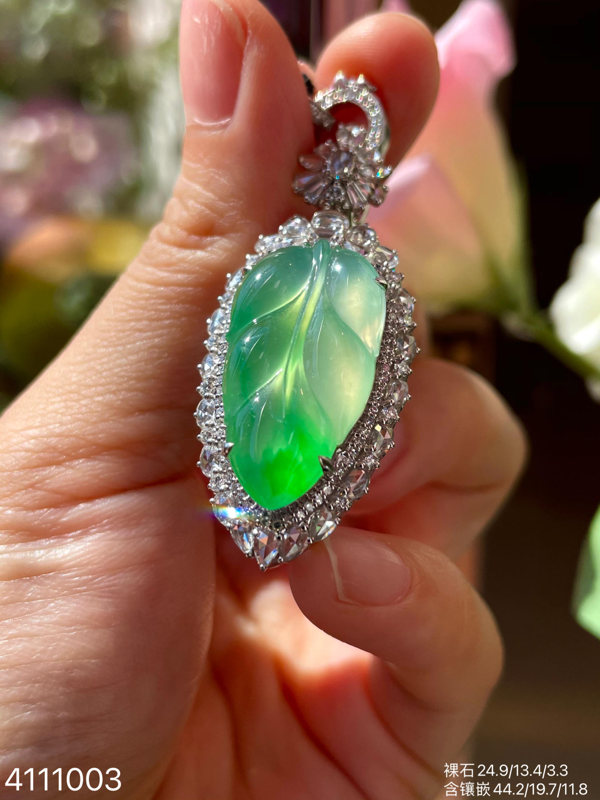 4111003,玻璃飘翠叶子吊坠。具体价格微信咨询