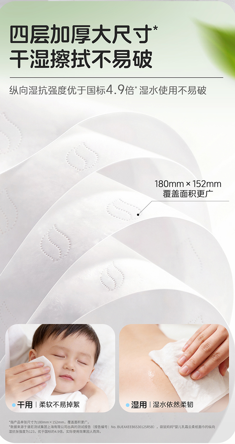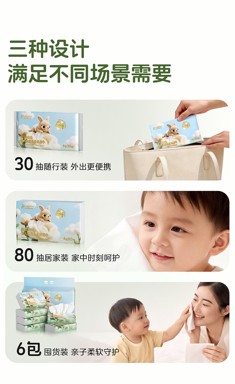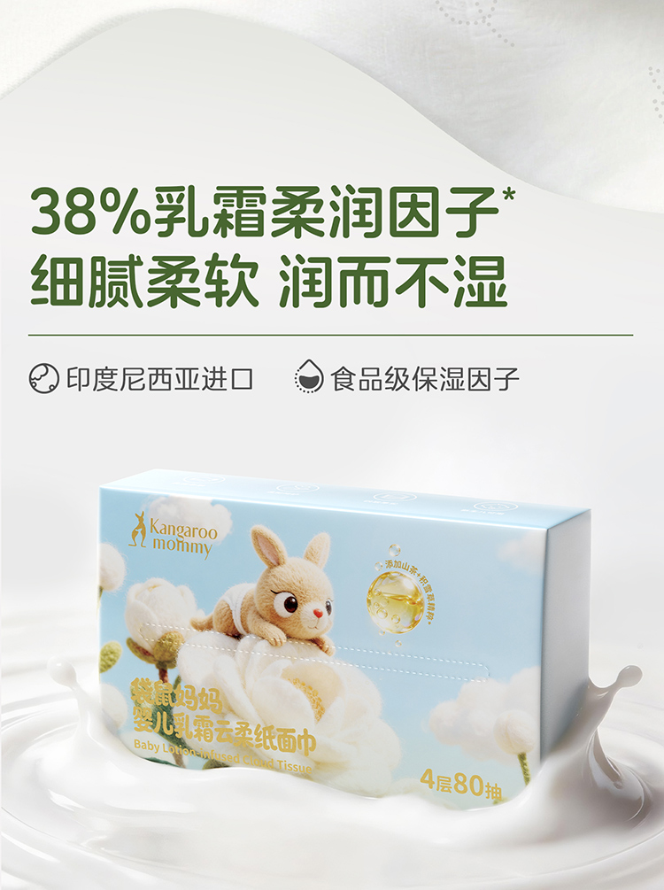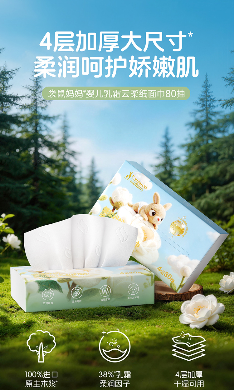 【婴儿乳霜云柔纸面巾】儿童云柔擦脸巾 宝宝手口 超柔乳霜 袋鼠妈妈婴儿乳霜云柔纸面巾80抽/包