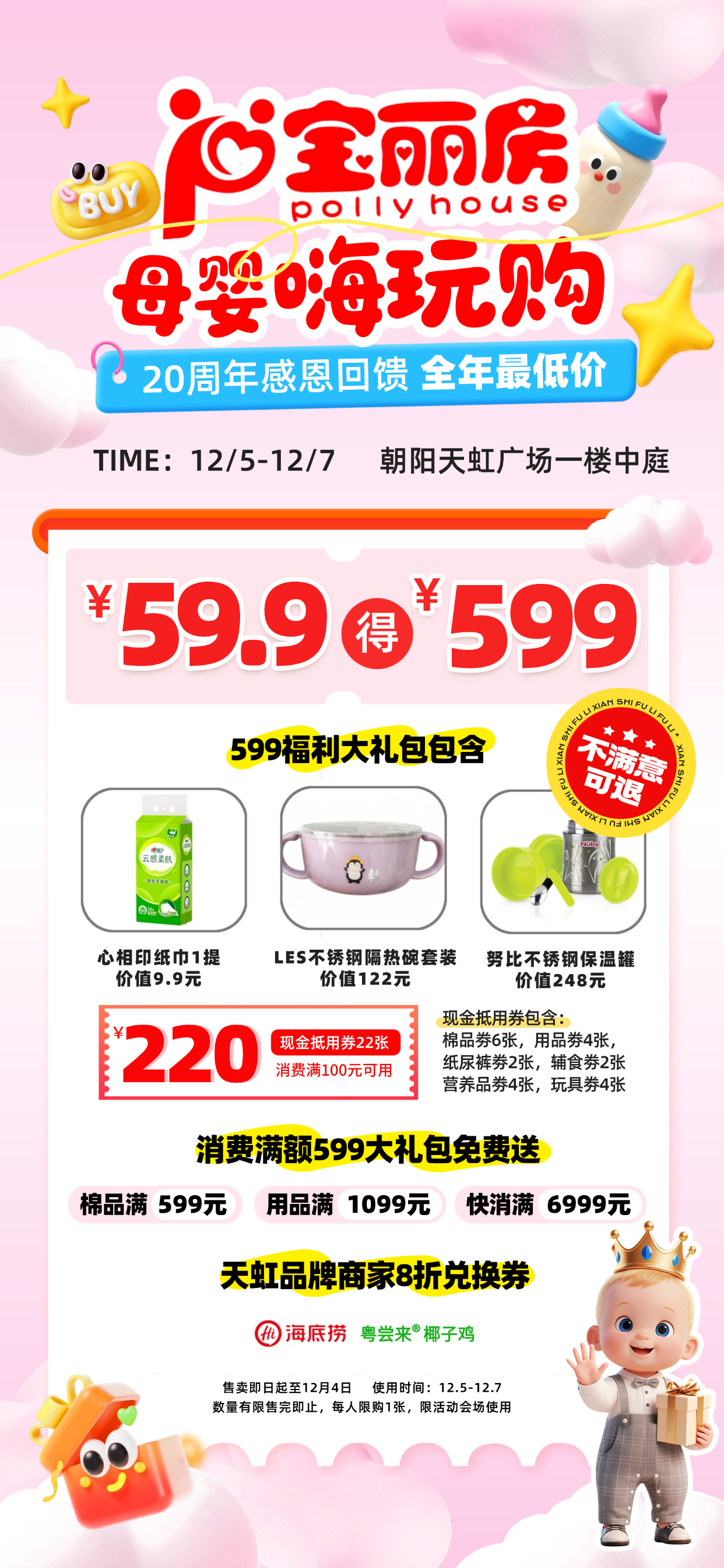 59.9元团599元(9.9元心相印手提纸+122元LES不锈钢隔热碗+248元努比不锈钢保温罐+220元无门槛抵用券)