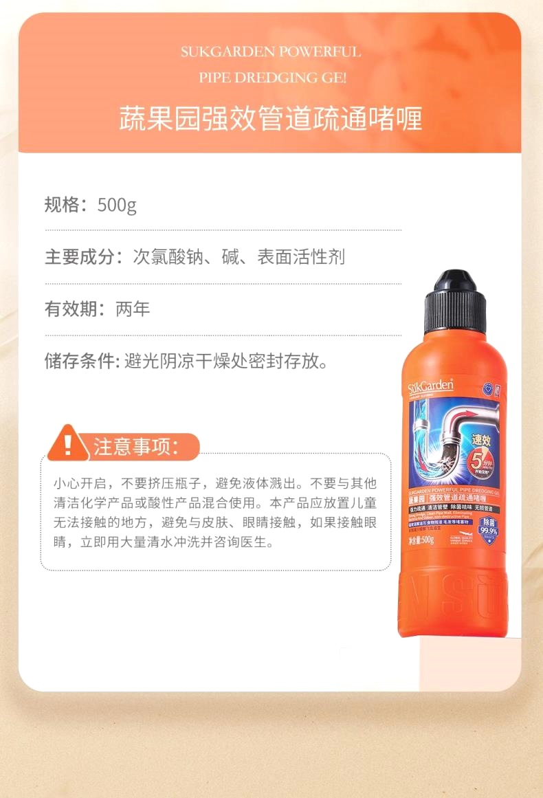 SukGarden蔬果园强效管道疏通啫喱*2瓶(500g/瓶)生产日期: 26年3月