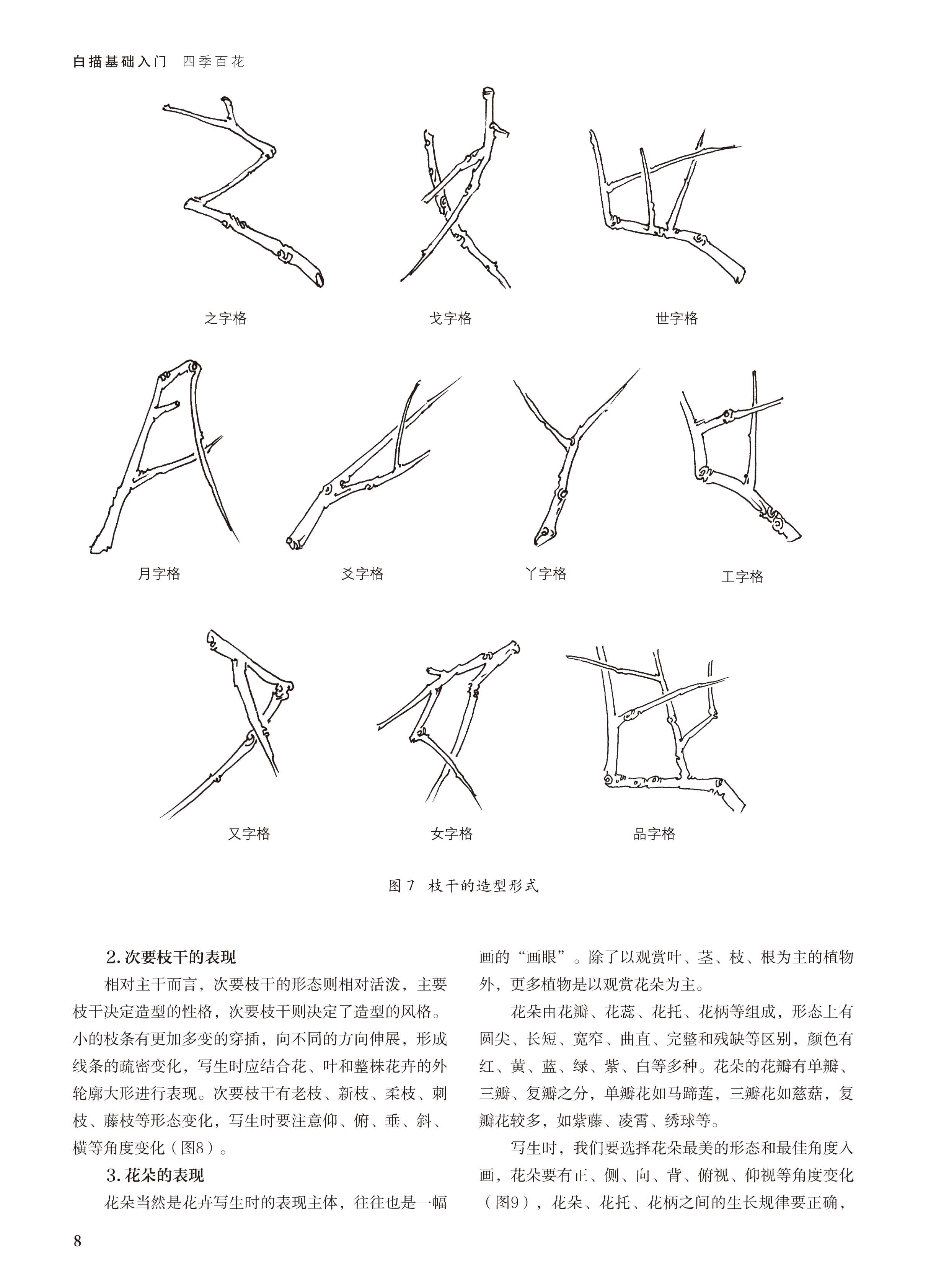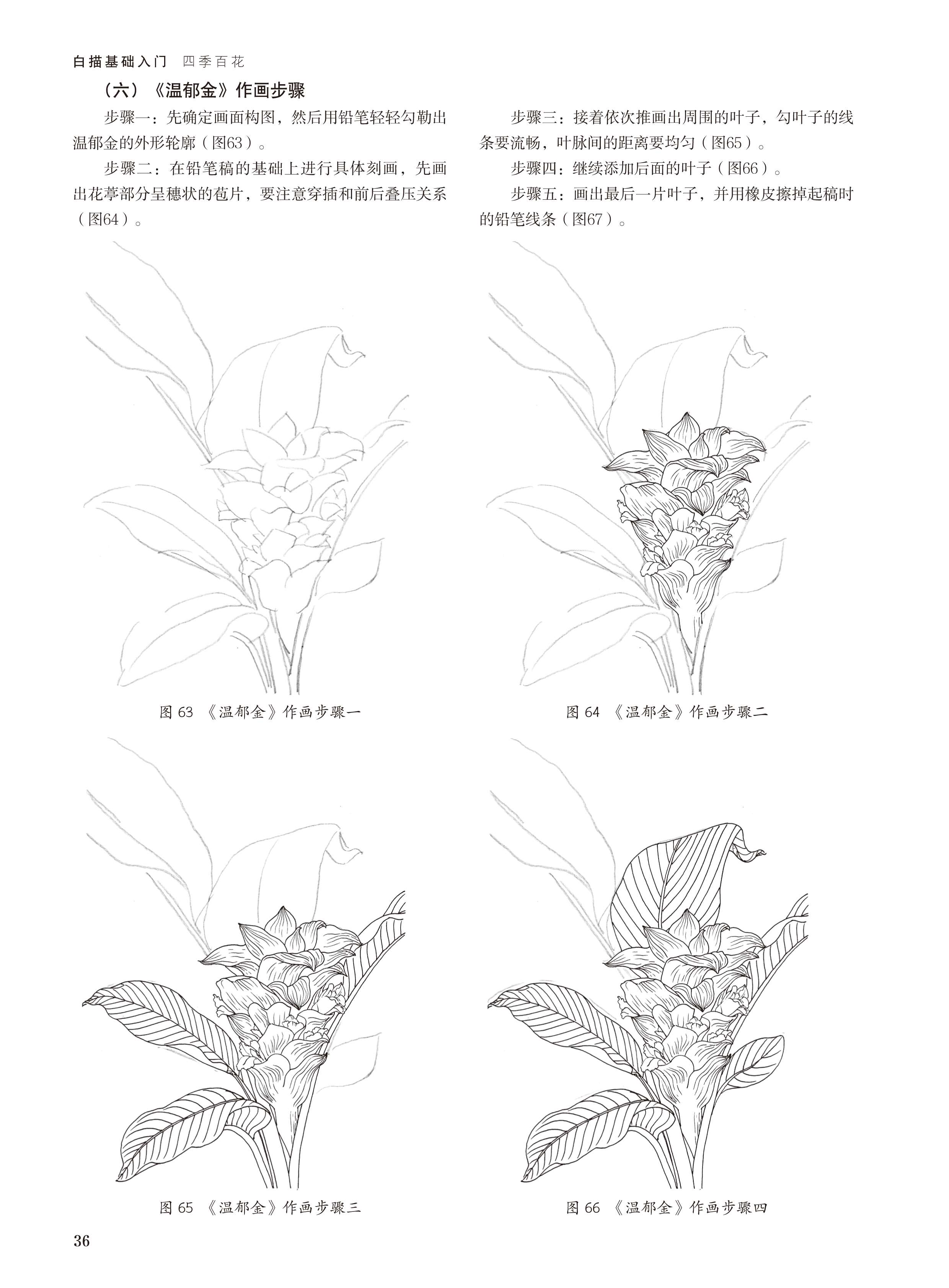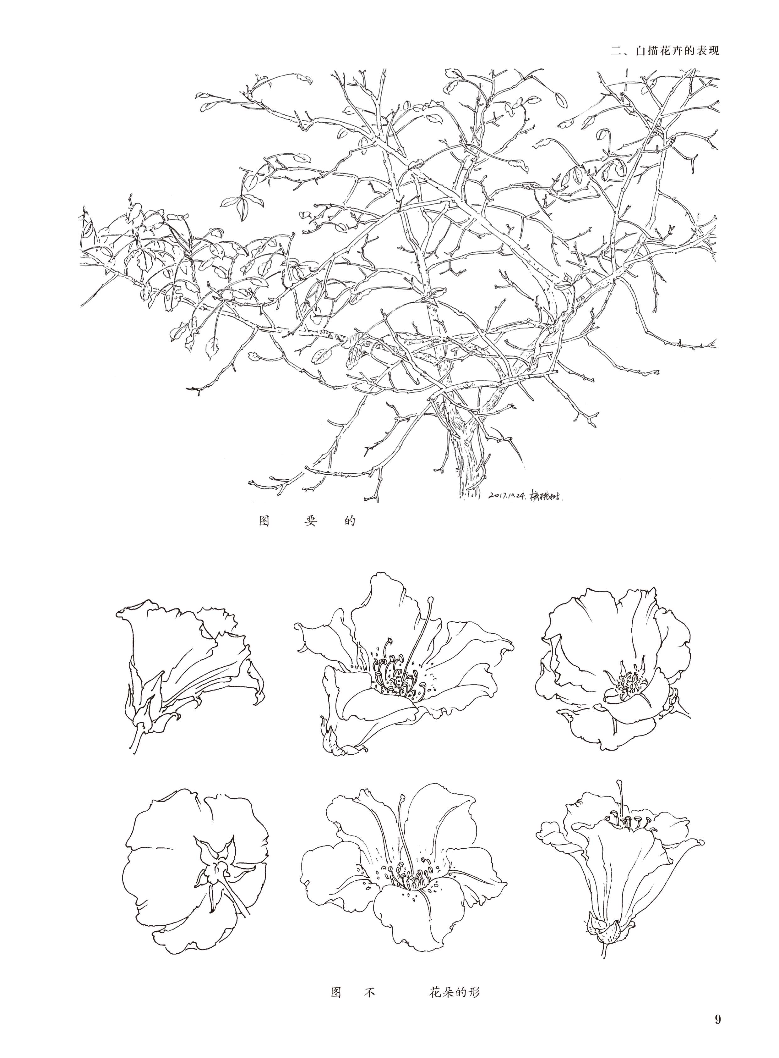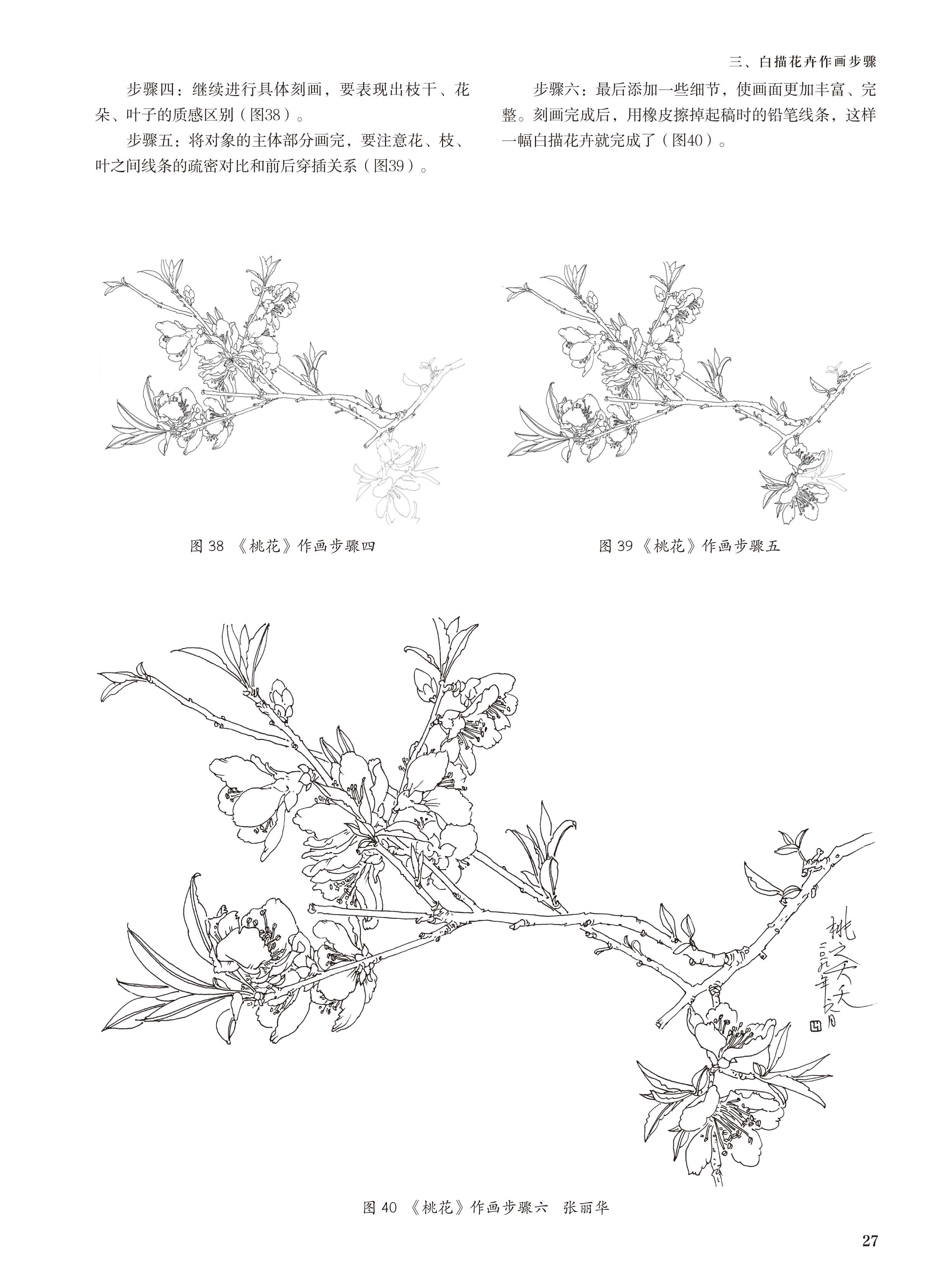 2019新书白描基础入门:四季百花张丽华花卉植物白描表现技法枝叶局部细节绘画技巧新手入门教程毛笔水性笔马克笔线稿勾勒临摹