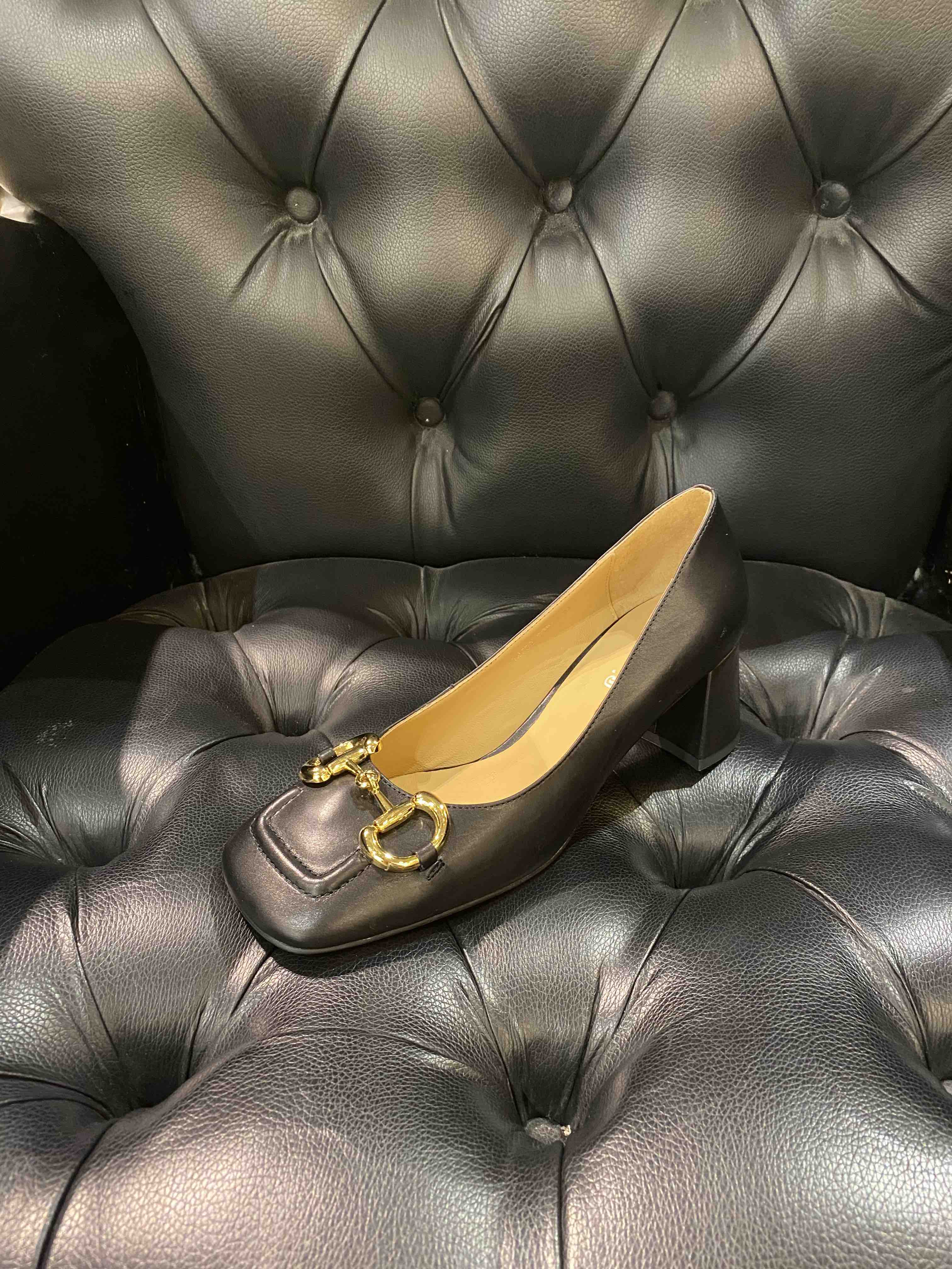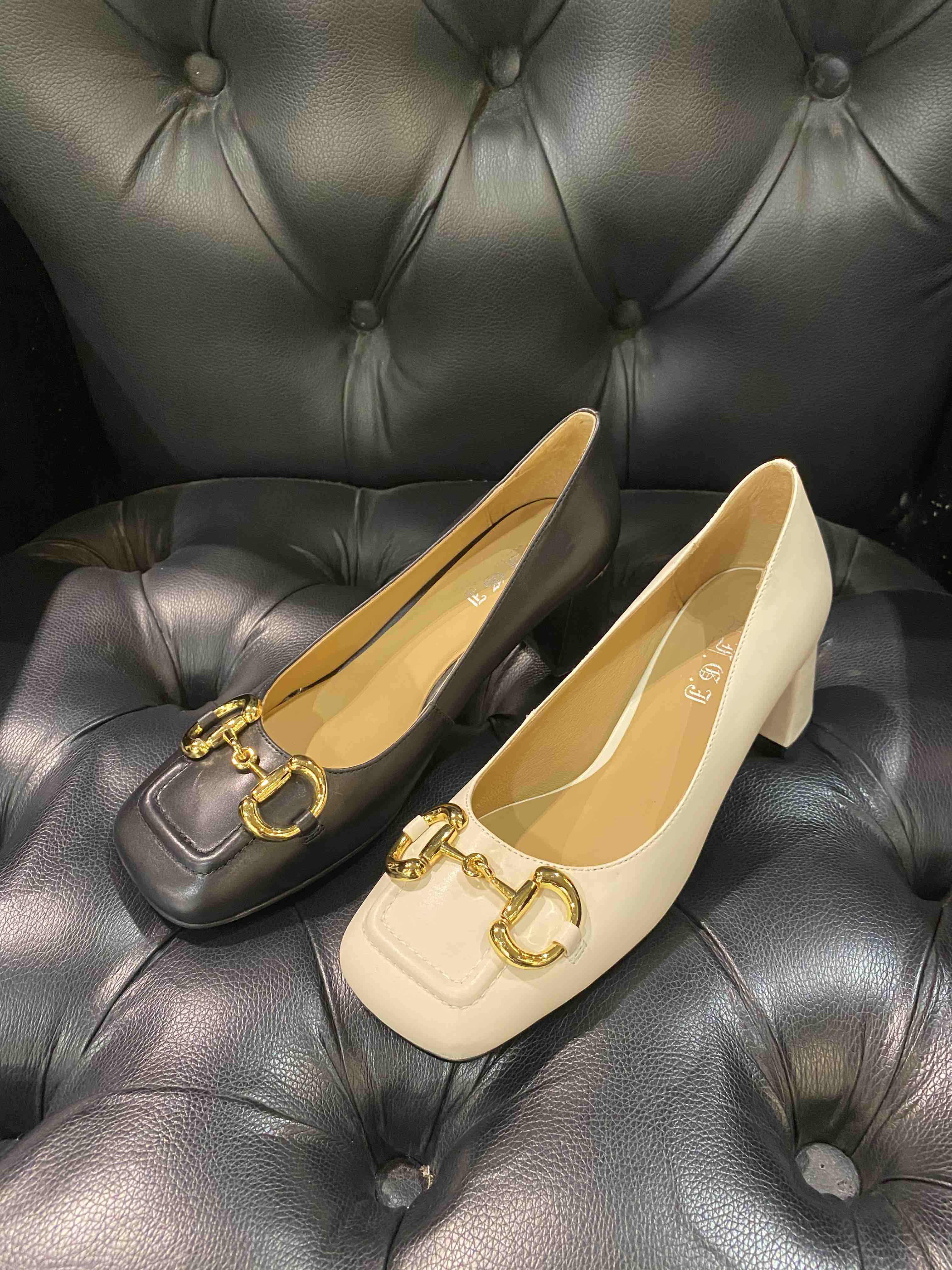 LFGJ 12702 马衔扣方头粗跟气质高跟通勤舒适