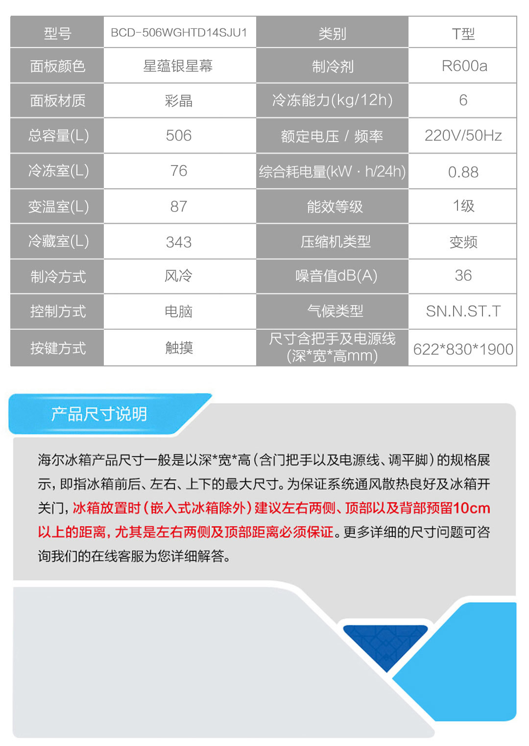 海尔十字门冰箱 BCD-506WGHTD14SJU1