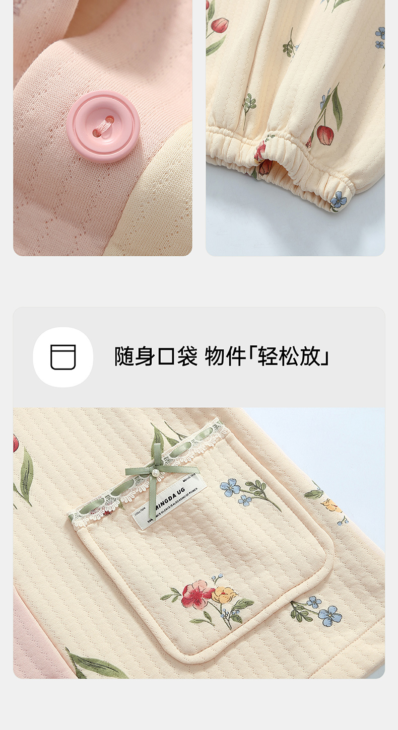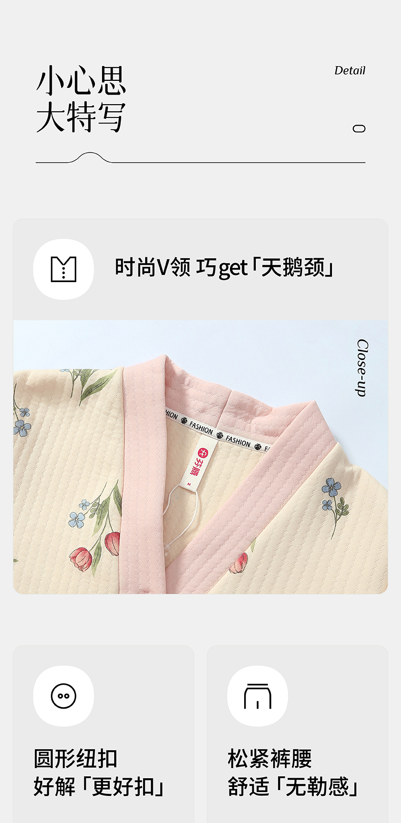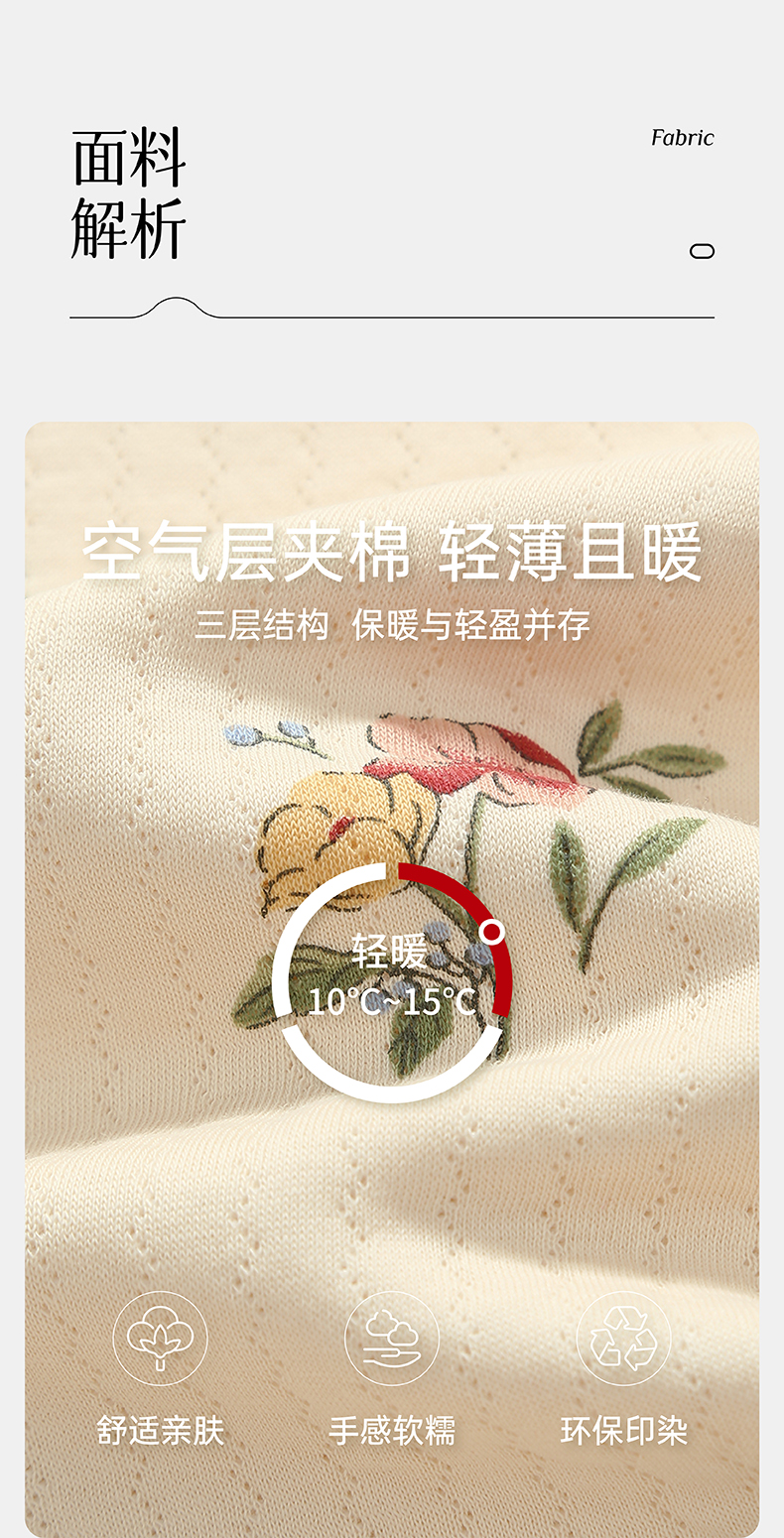 空气夹层针织夹棉睡衣冬季保暖加厚家居服套装芬腾