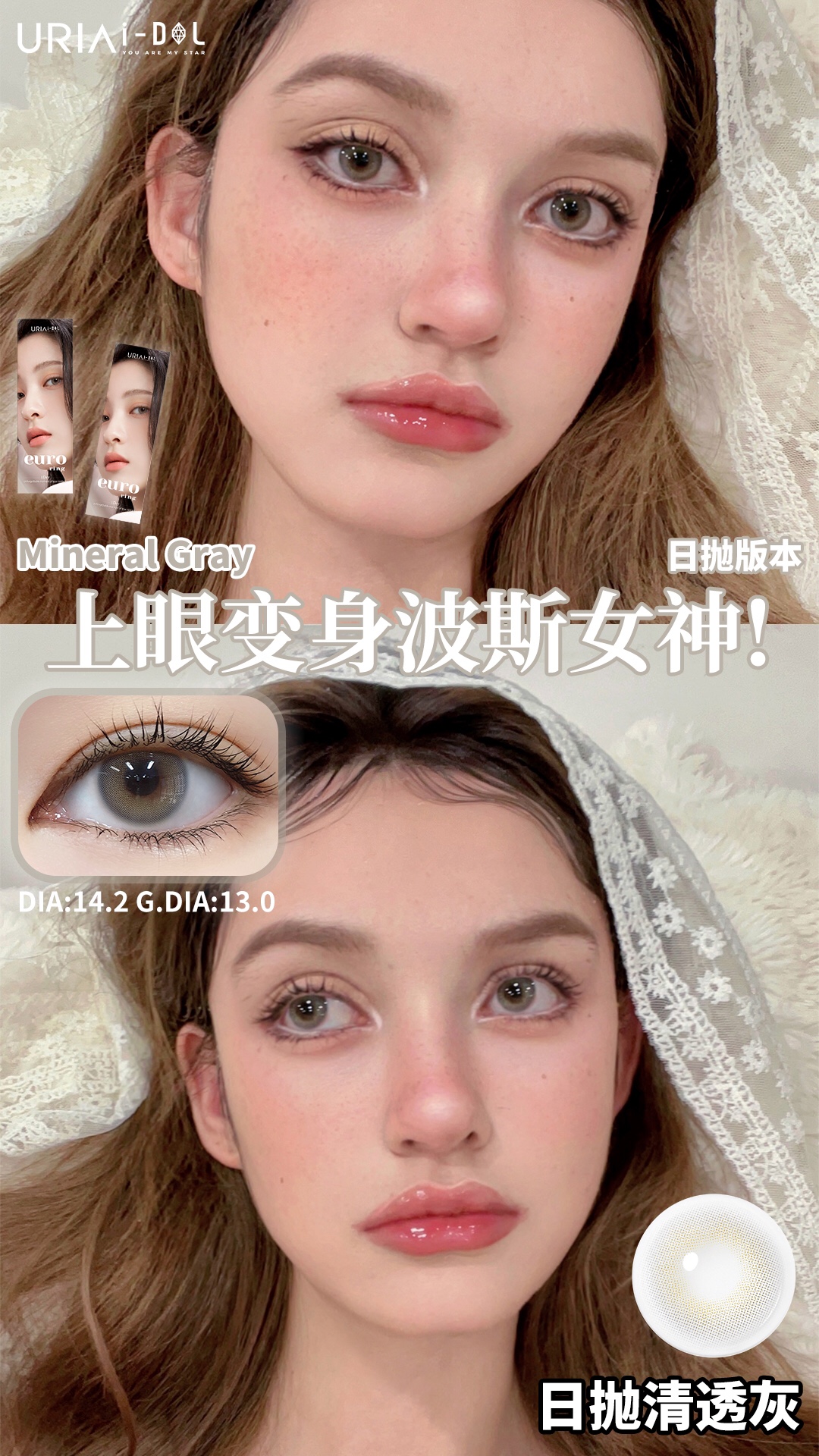 idol日抛 柔米棕/清透灰 14.2mm 日抛无售后
