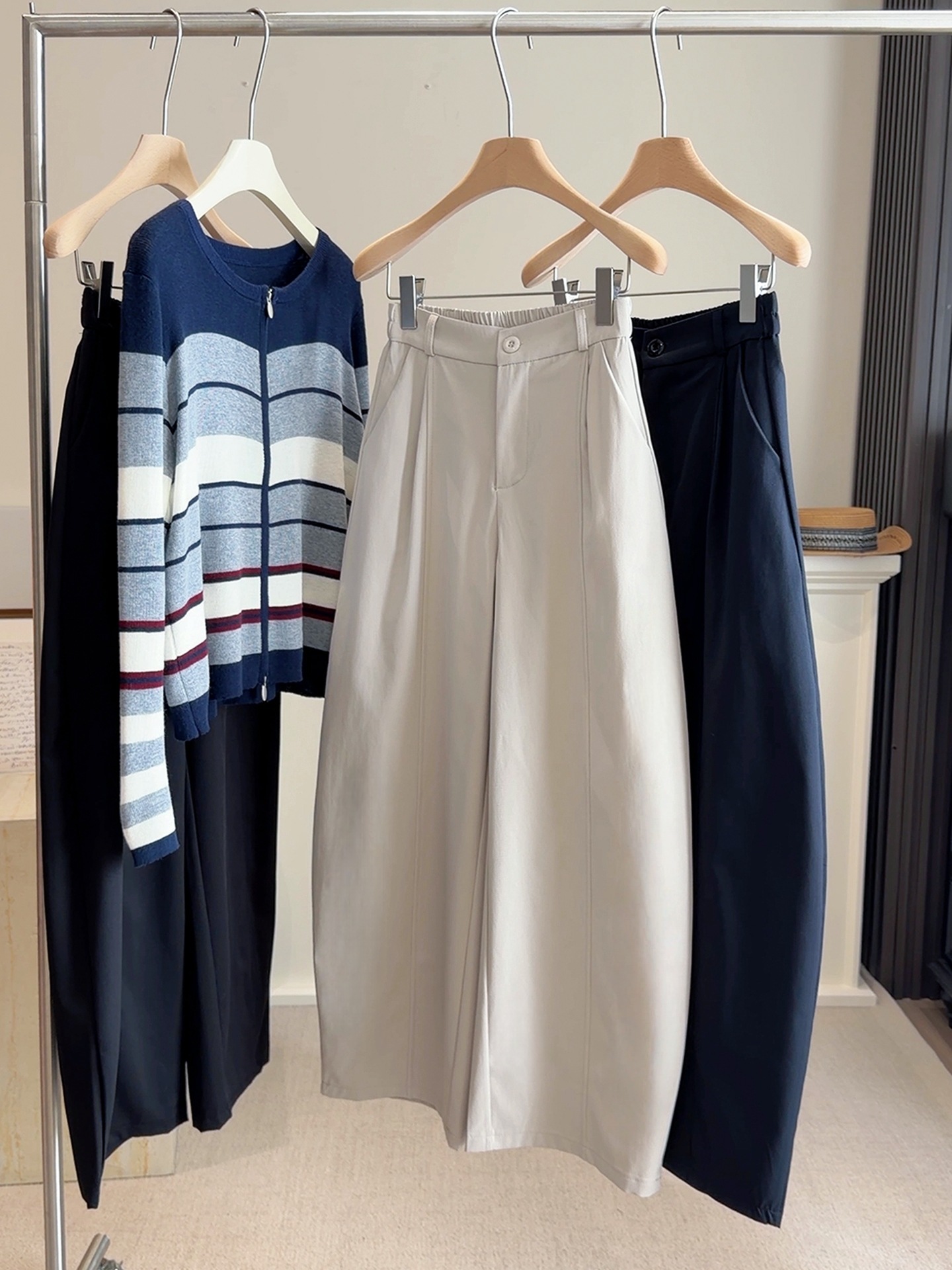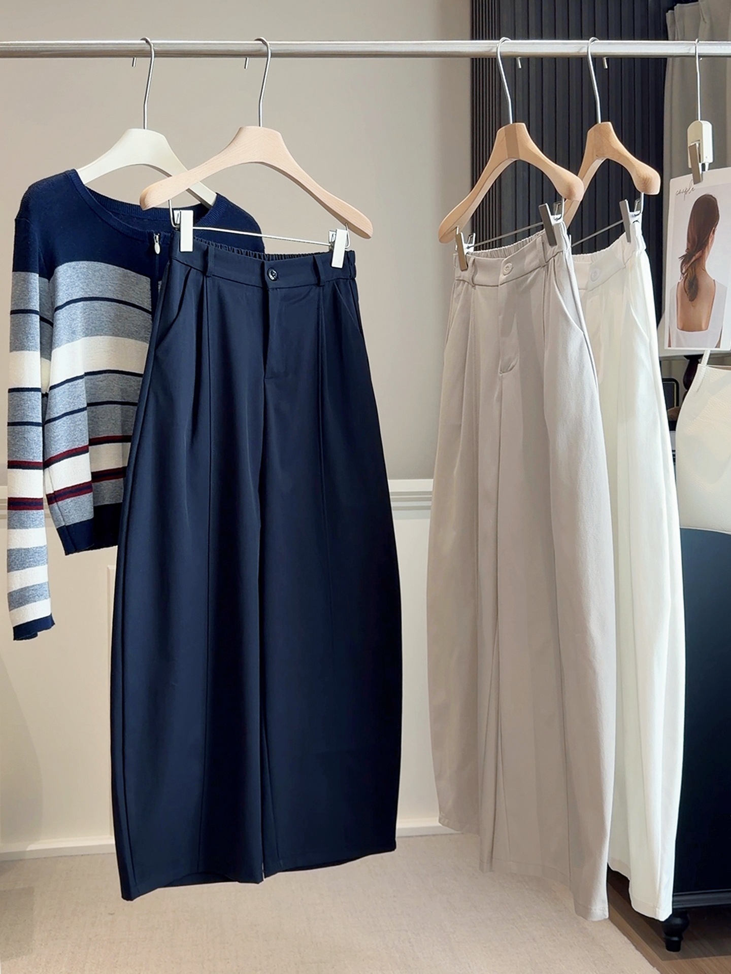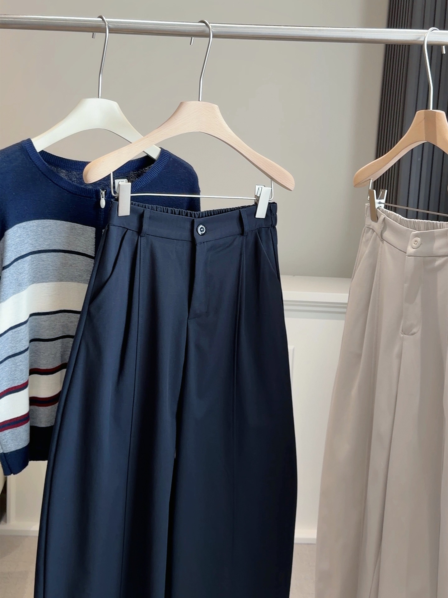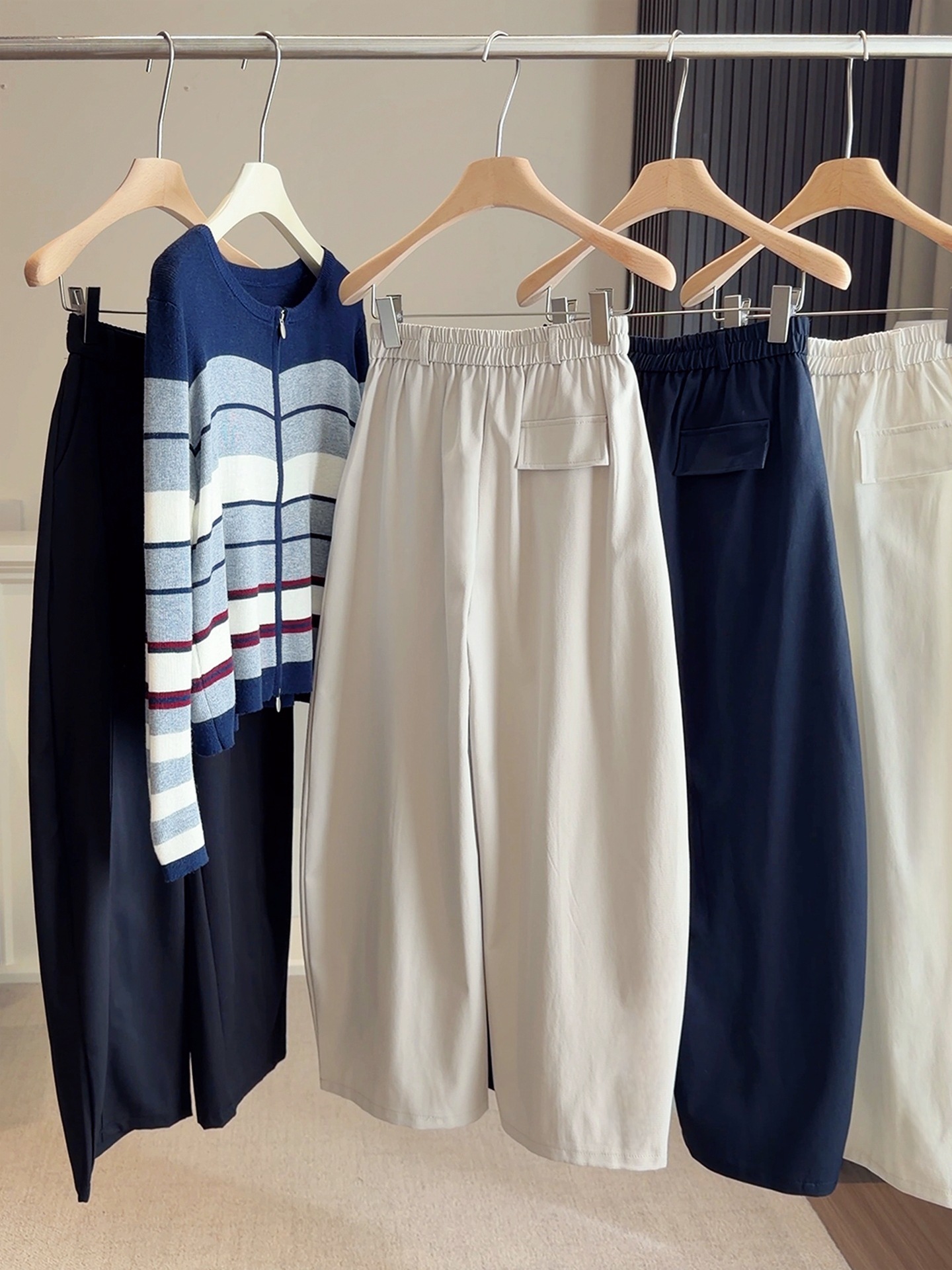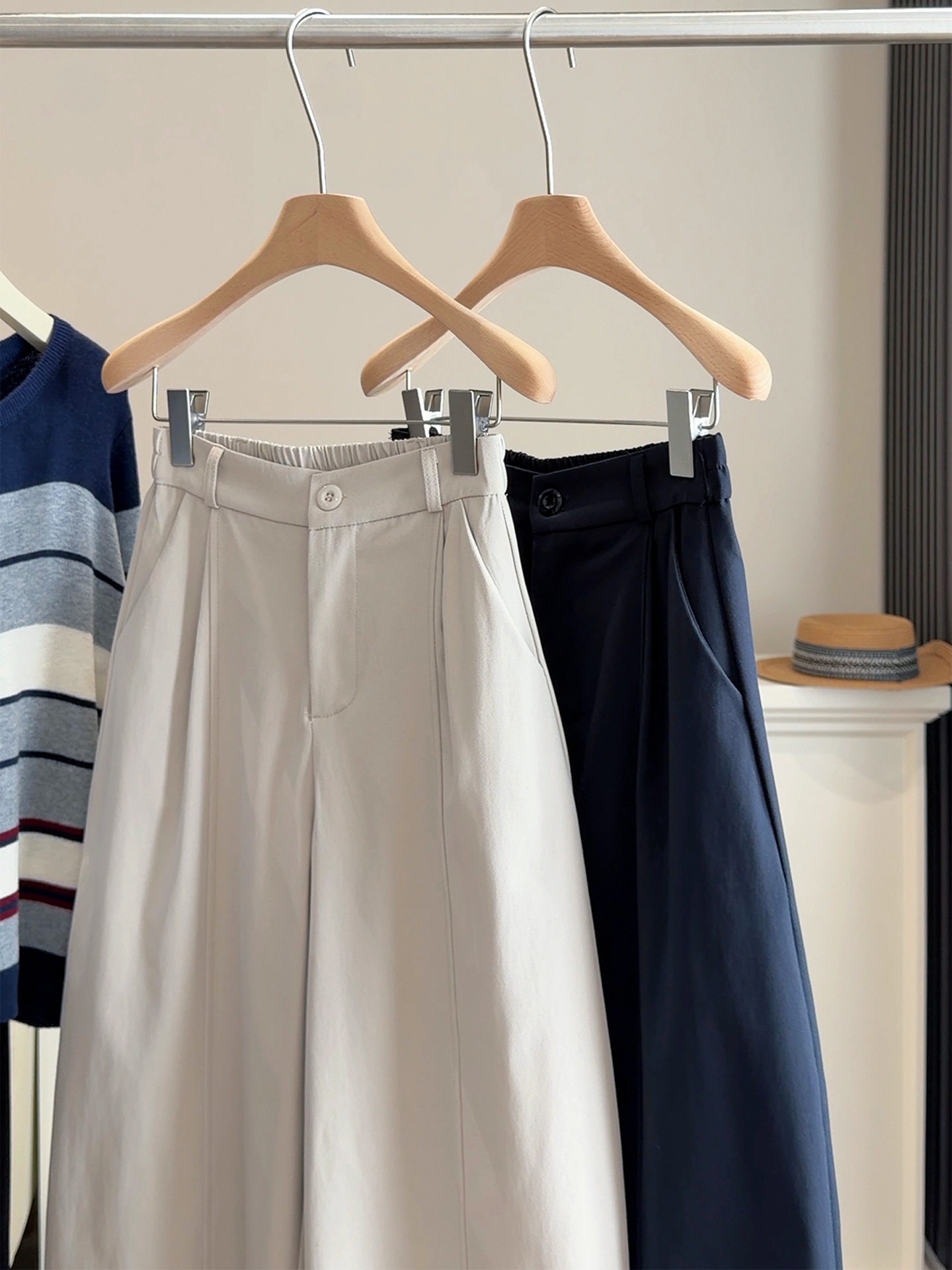 【设计感松紧腰弯刀裤】春新款 简约纯色小个子 宽松休闲显瘦阔腿裤潮