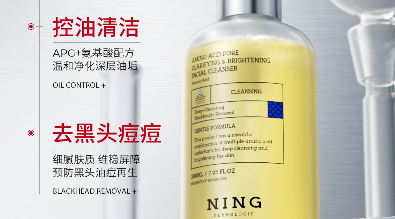 NING氨基酸洗面奶 深层清洁收缩毛孔控油去黑头洁颜蜜男女专用正品