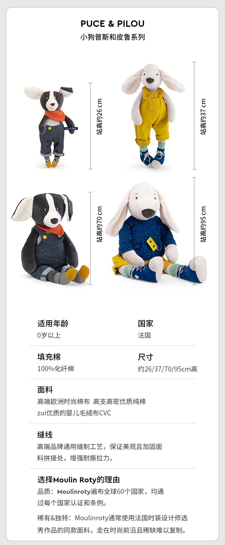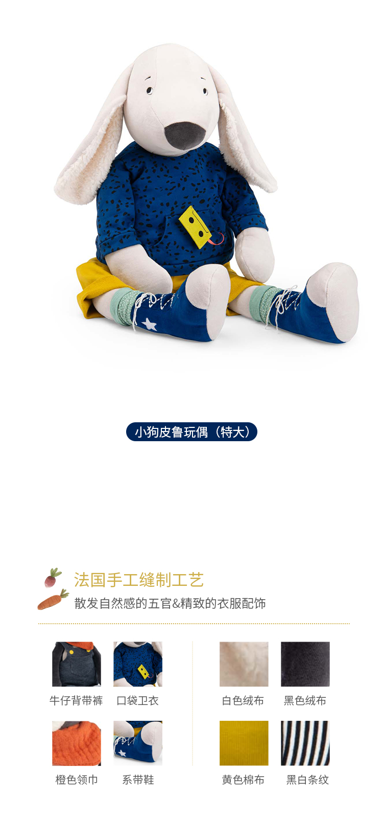 Moulin Roty 大号小狗皮鲁 法式玩偶 适合年龄0岁+ 小狗普斯与皮鲁系列 法国玩具 684008