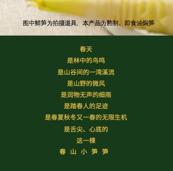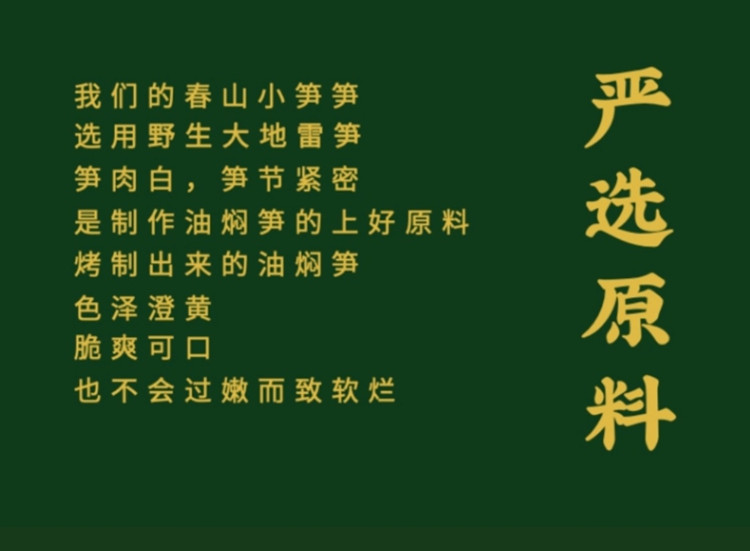 2. 产品表面若有白色结晶物,为笋自然属性成分,非质量问题,请放心食用。如遇包装胀气、破损或变质现象发生,请勿食用,请与客服联系调换。