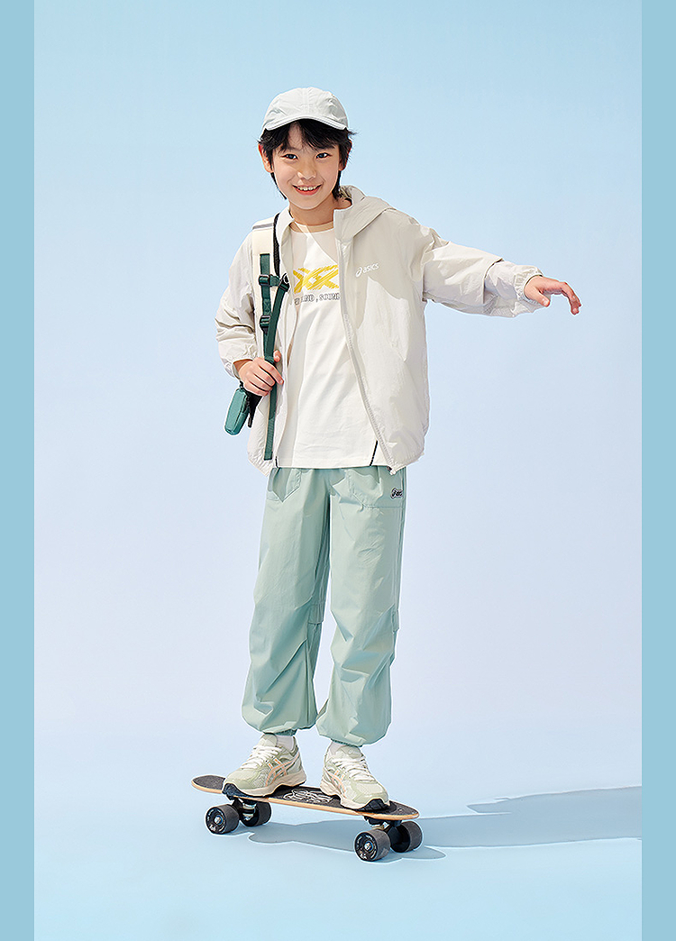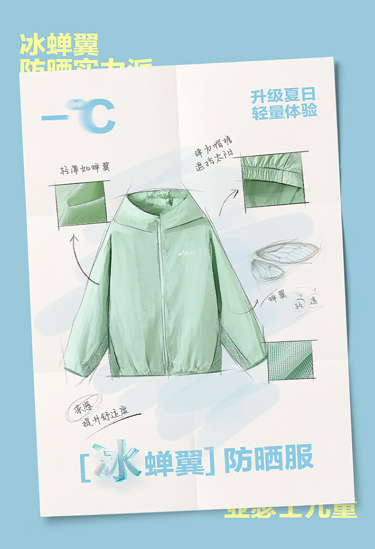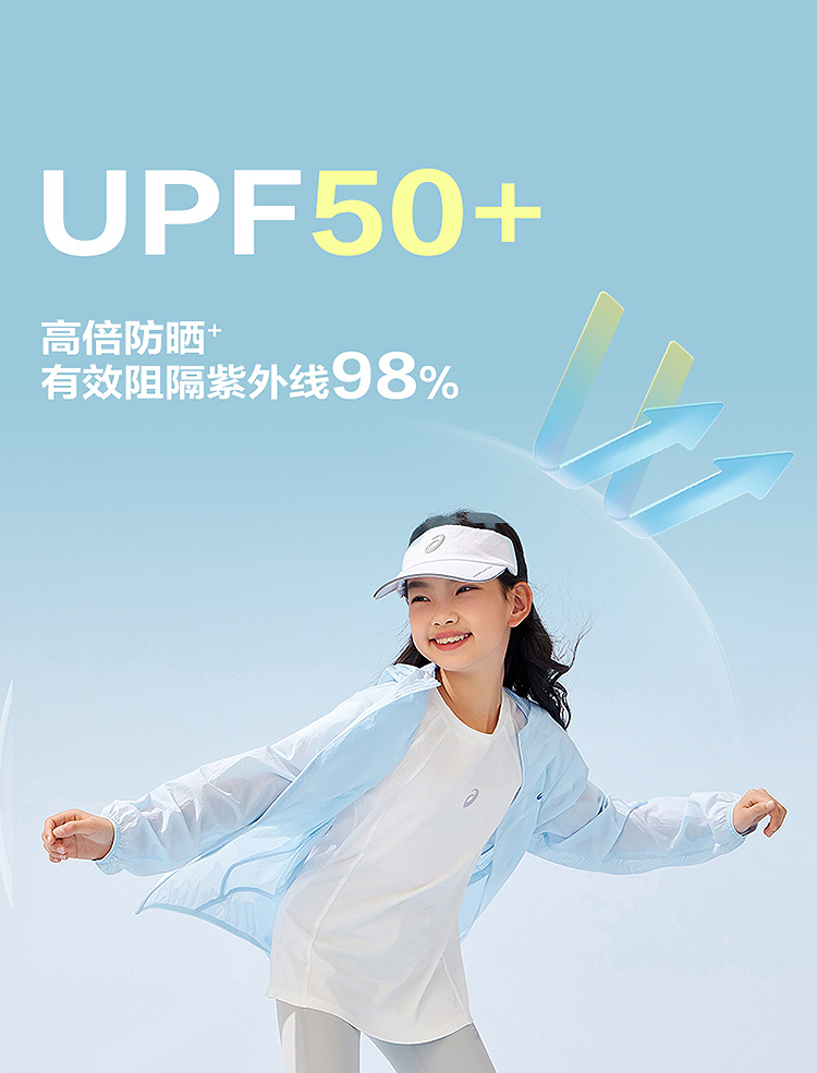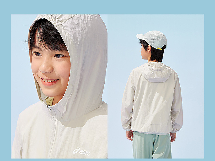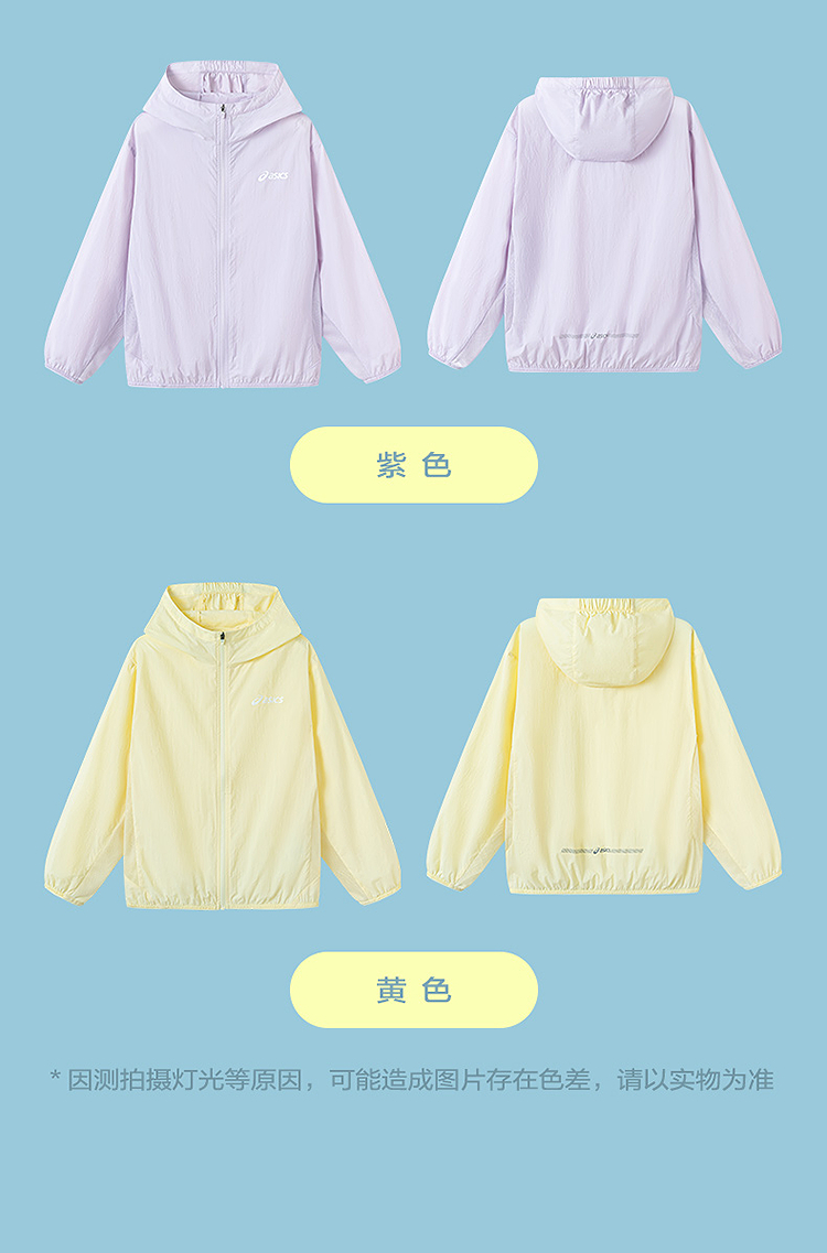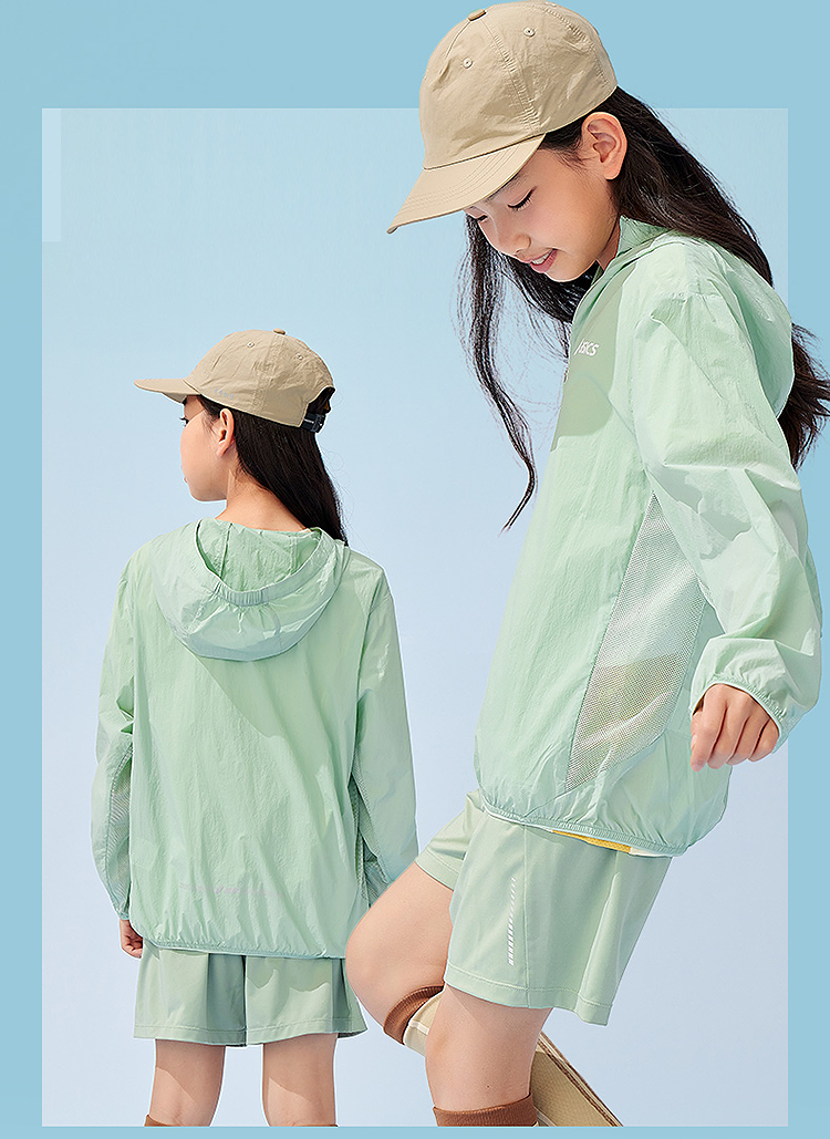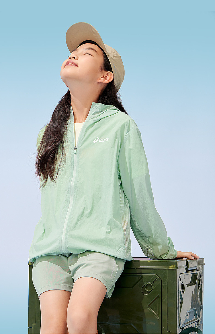 ASICS/亚瑟士童装25年夏新款男女UPF50+冰蝉翼防晒服梭织透气外套