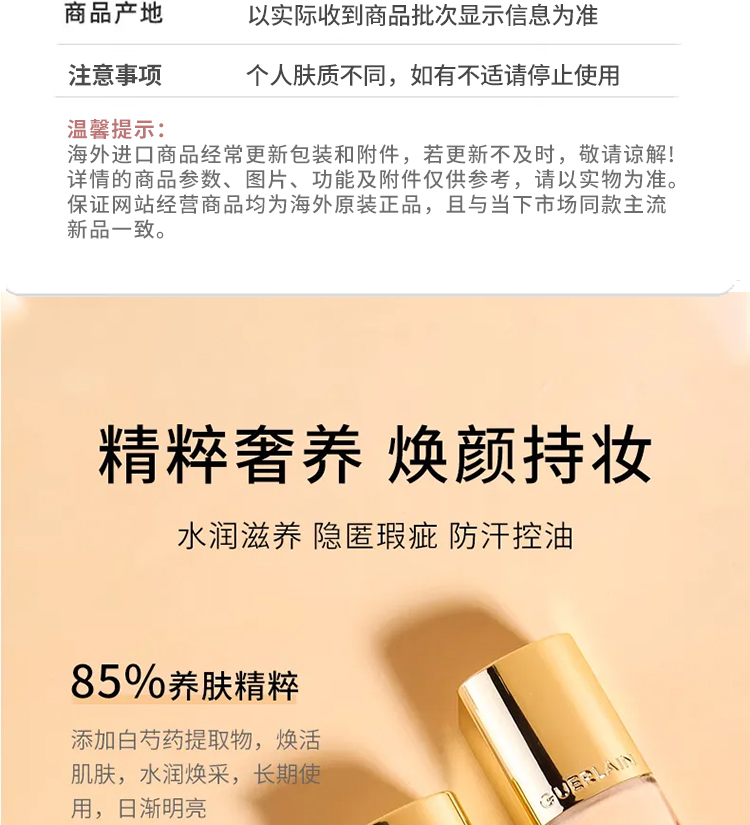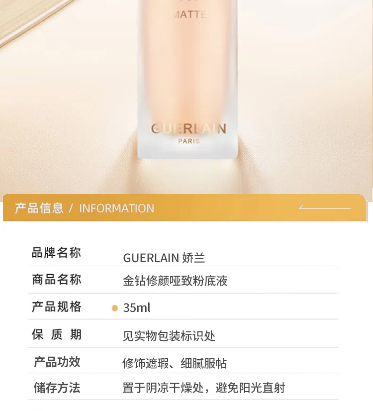 【跨境】Guerlain 娇兰 金钻修颜粉底液 SPF30 PA+++ 丝柔细滑 柔雾哑光1N 35ml #1N 哑光(效期到26年11月)